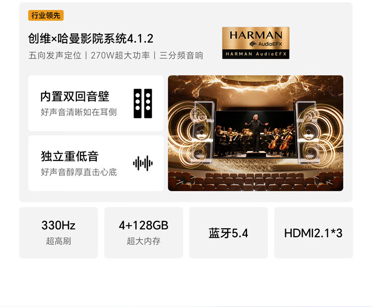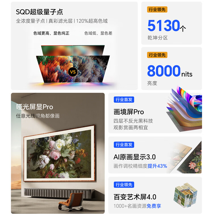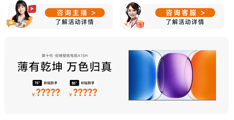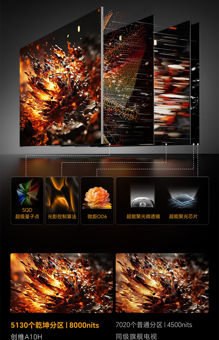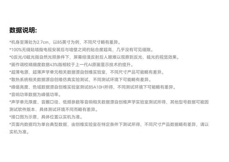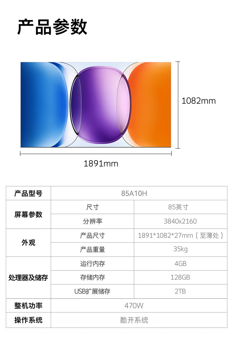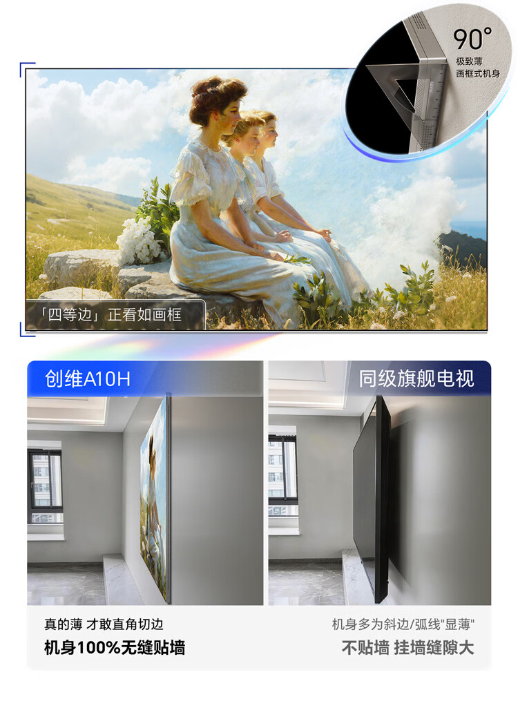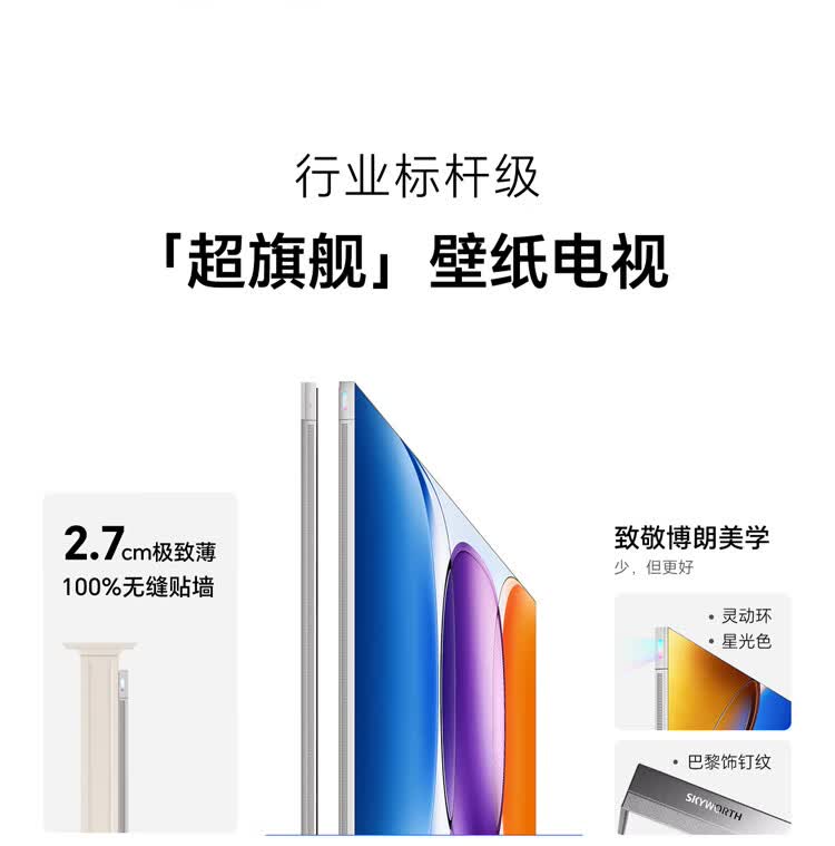创维壁纸电视A10H 85英寸 2.7cm超薄 5130分区SQD Mini LED 4.1.2哈曼全景声平板电视机85A10H