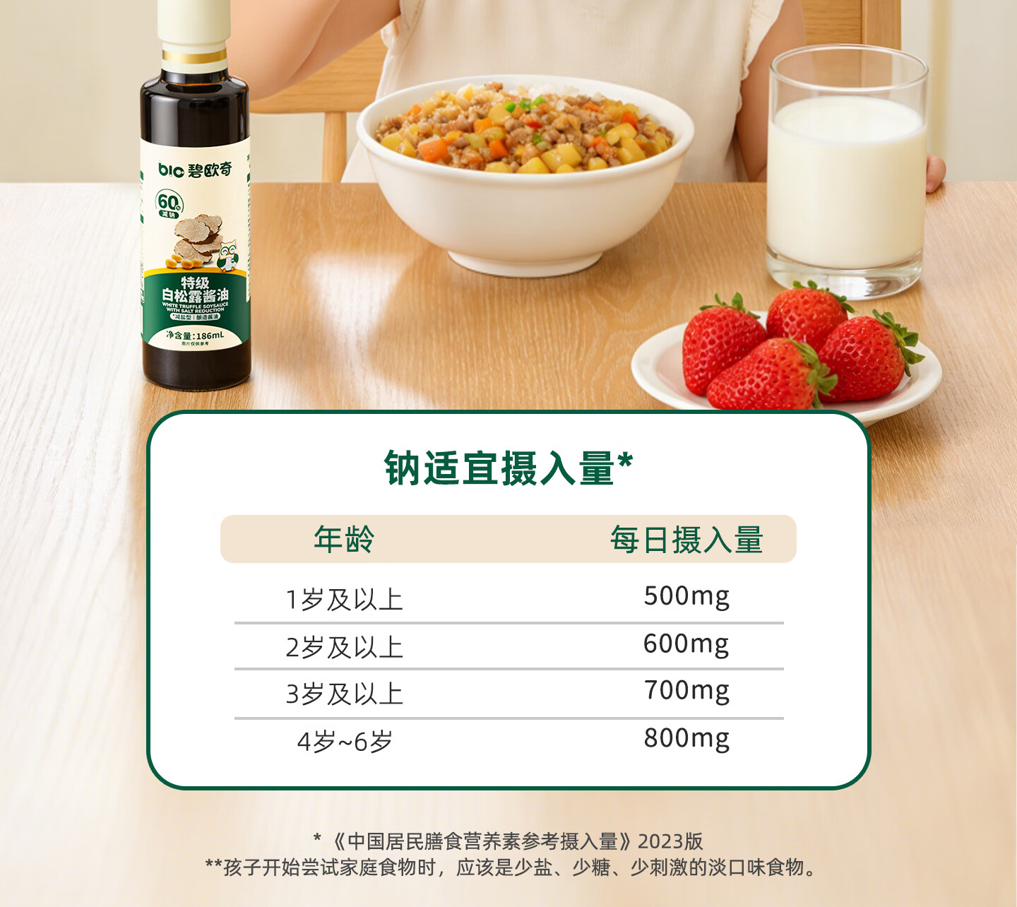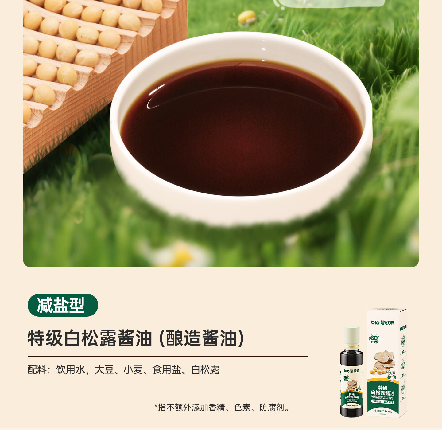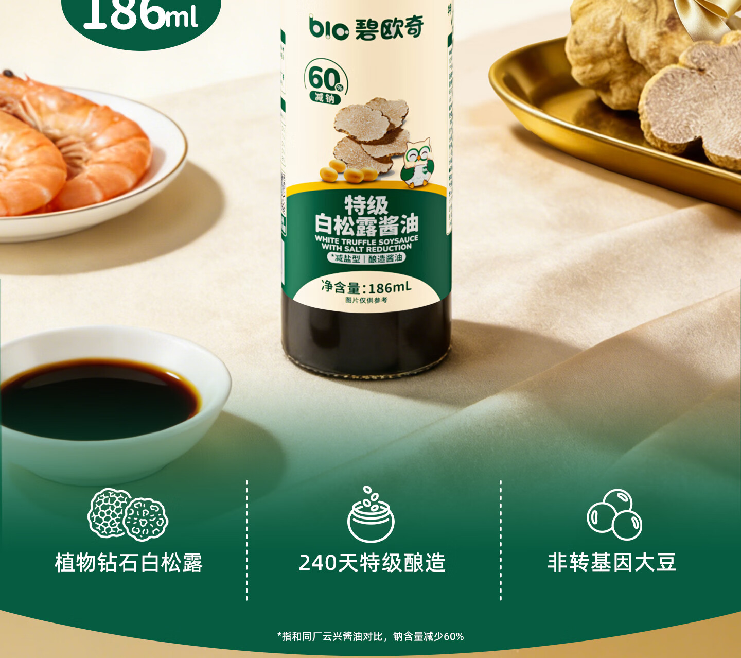 碧欧奇特级白松露酱油186ml 儿童减盐60%酱油提鲜调味品送宝宝辅食谱