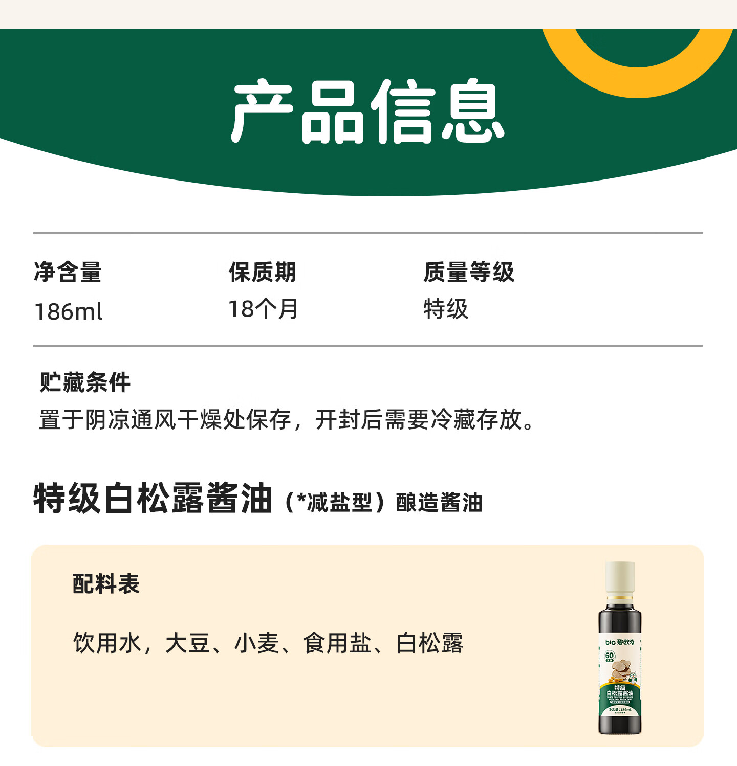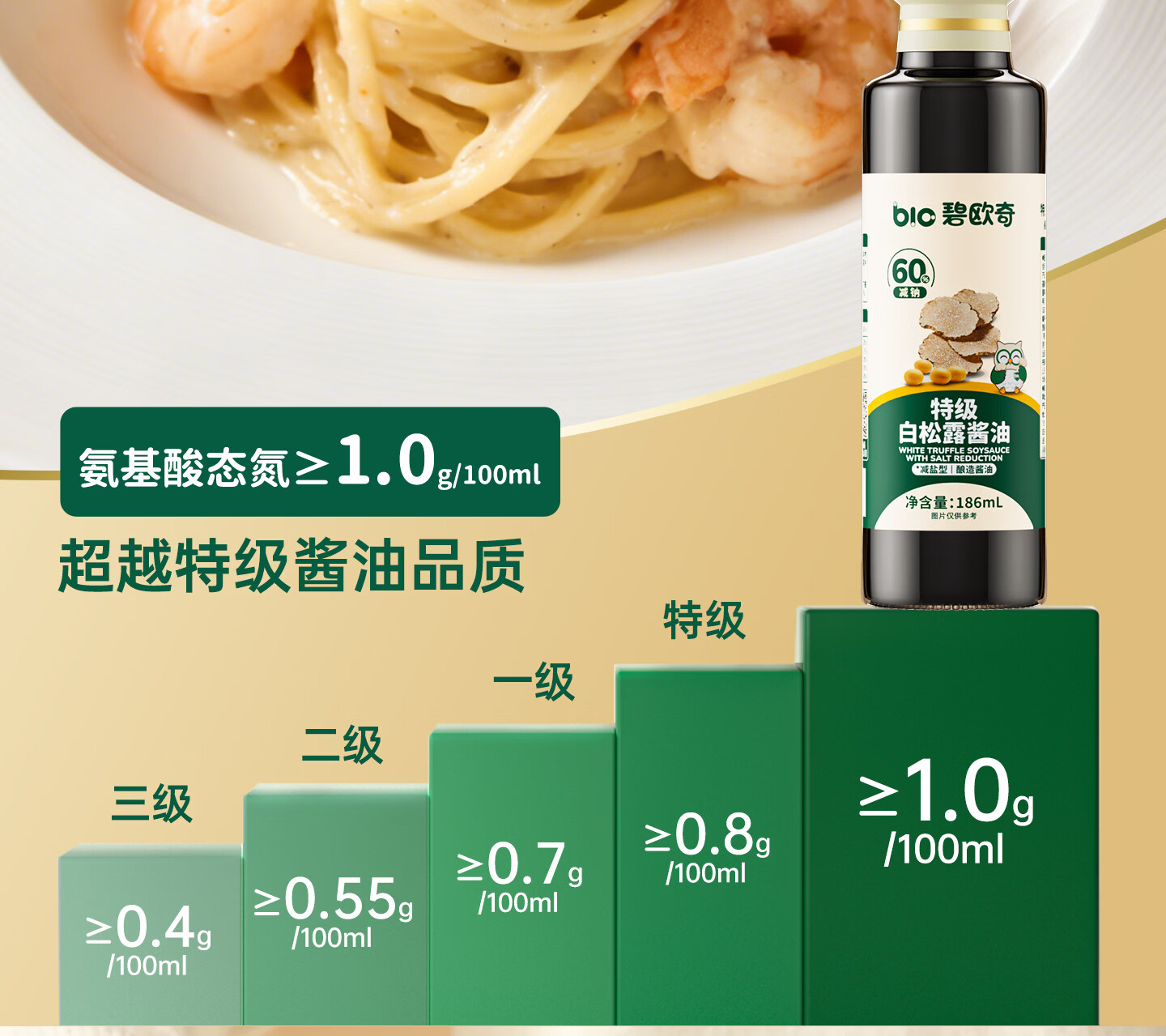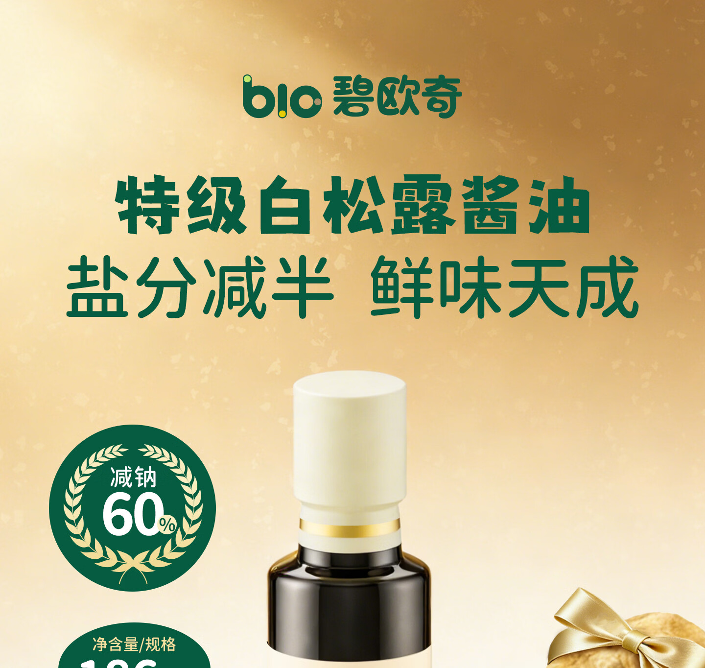 碧欧奇特级白松露酱油186ml 儿童减盐60%酱油提鲜调味品送宝宝辅食谱