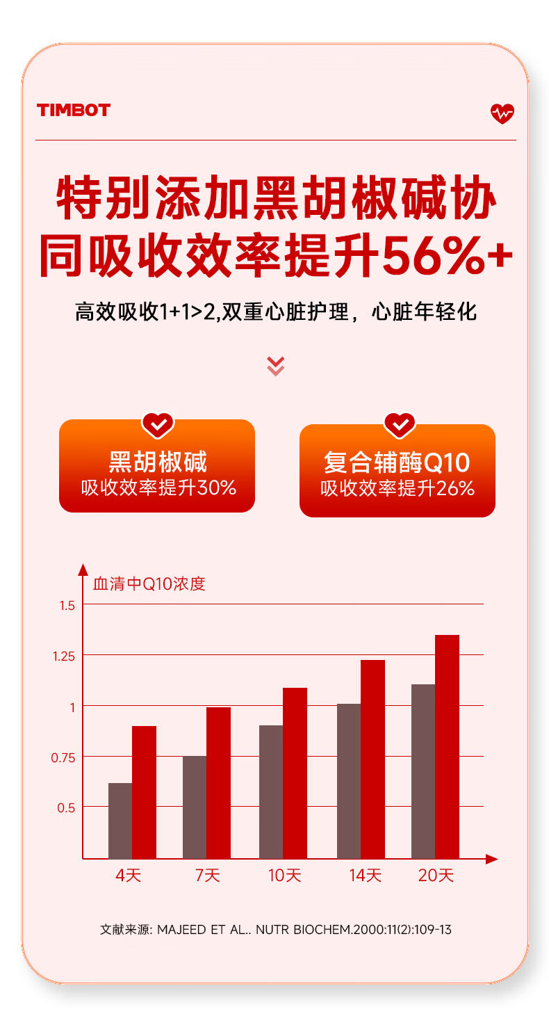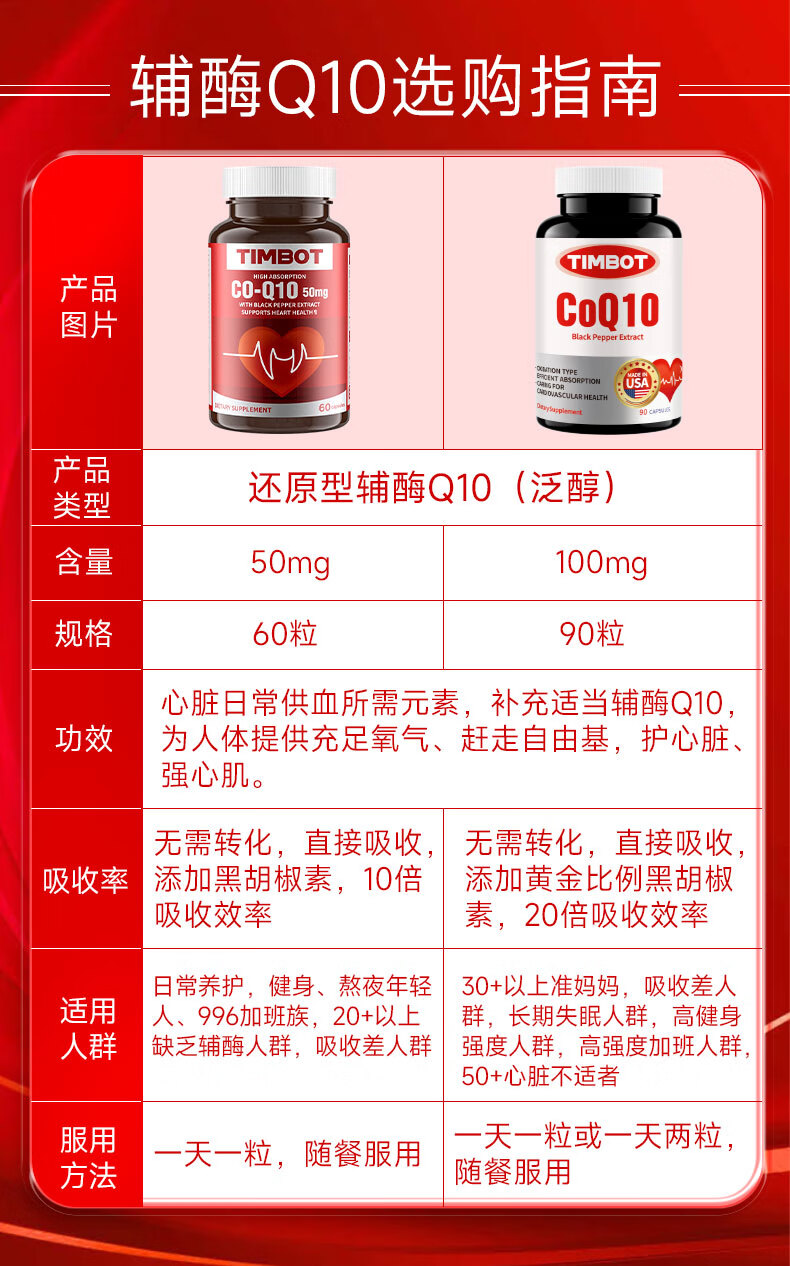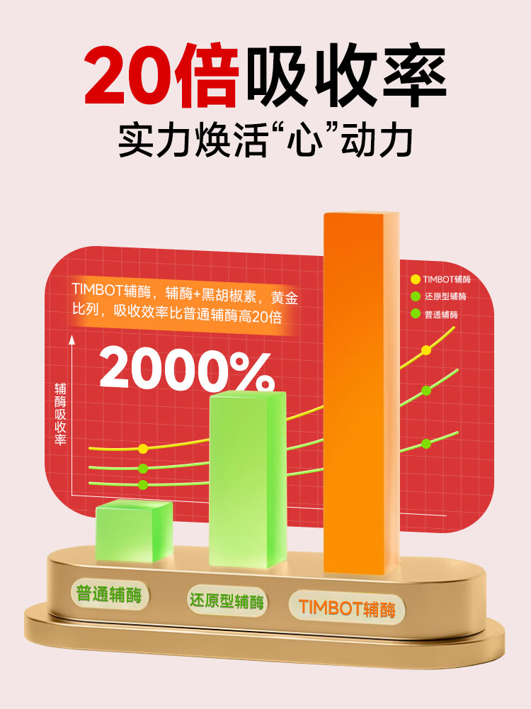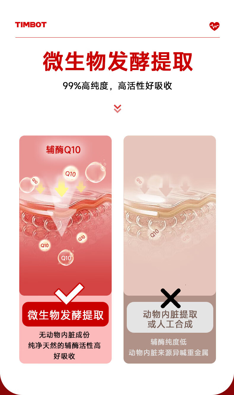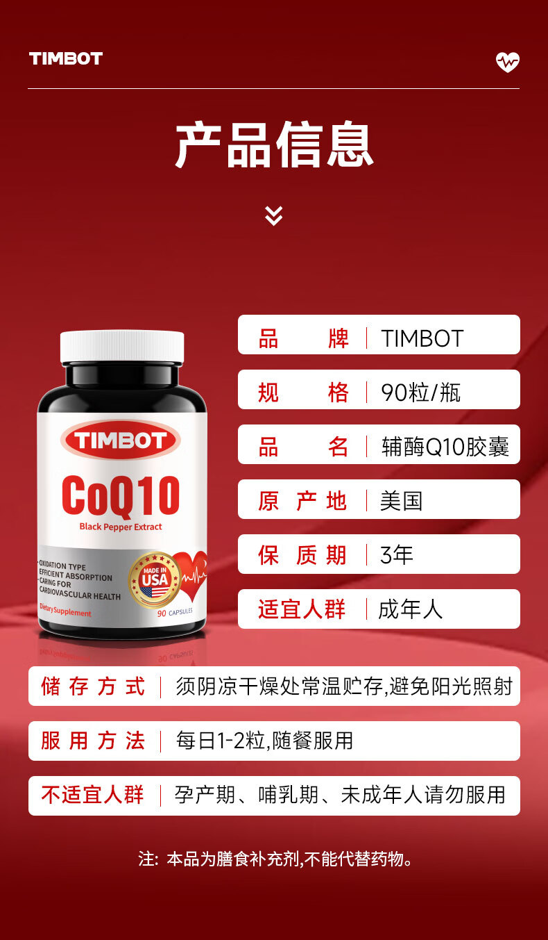 TIMBOT美国进口还原型辅酶q10每粒100mg保护心脏软胶囊 买3送2 90粒*5瓶 精力充沛【周期装】