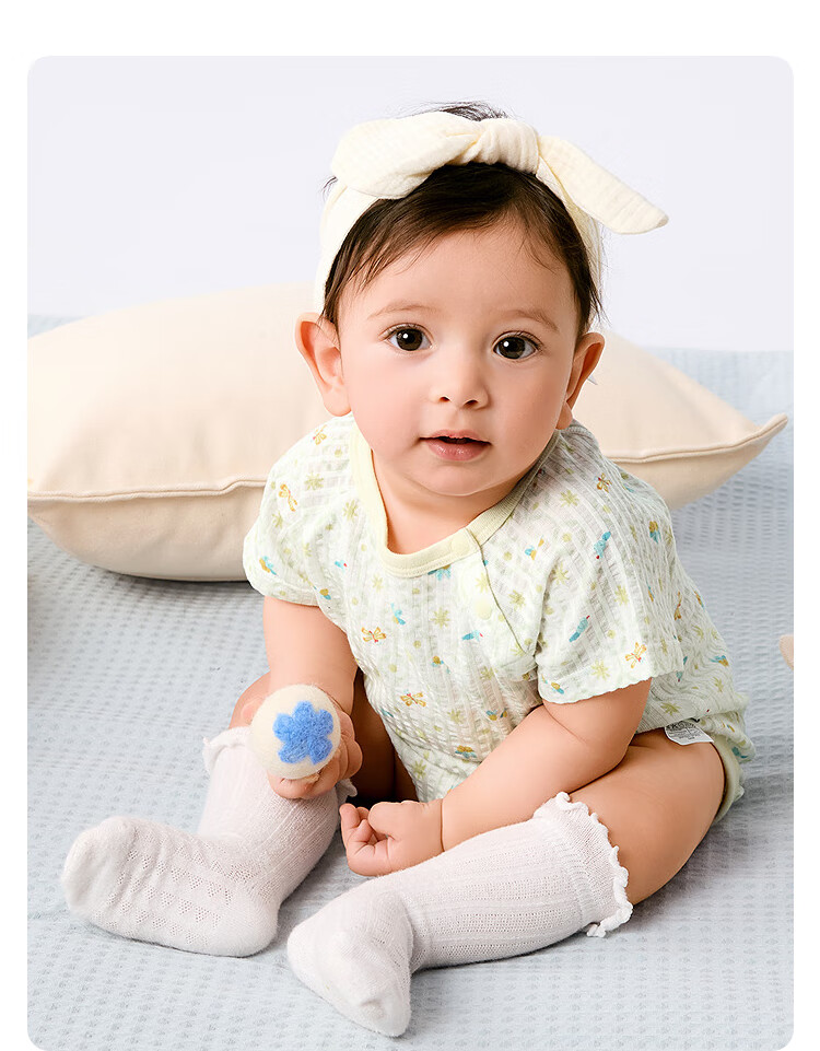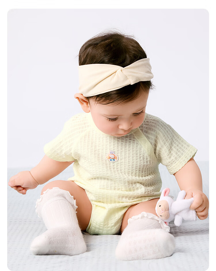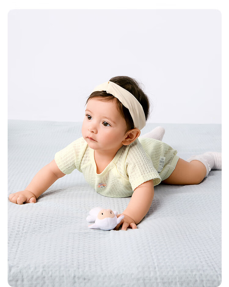 aqpa爱帕【冰薄荷甜甜圈】宝宝夏季短袖前开套装婴儿纱布凉感套装 蛋黄派 100