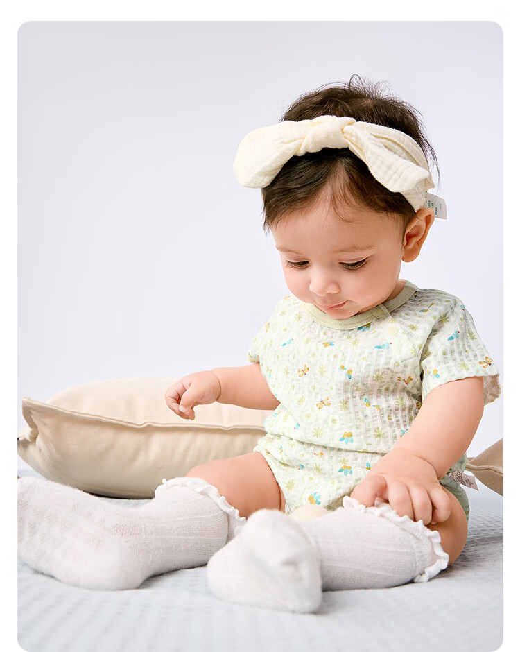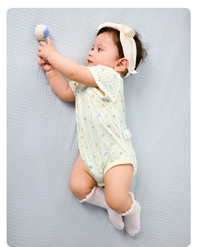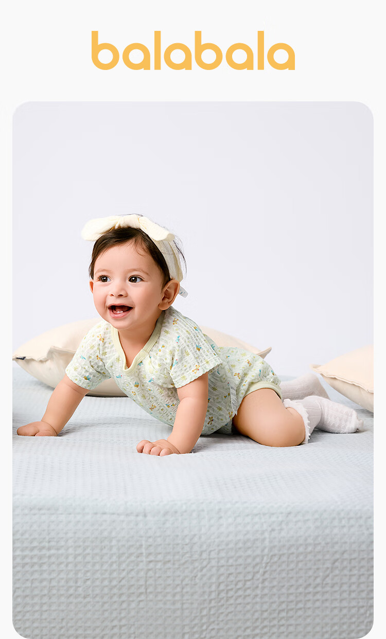 巴拉巴拉婴儿包屁衣男女童爬爬服衣服夏季薄款2025新款两件装新生儿连体衣 绿色调00344 73cm