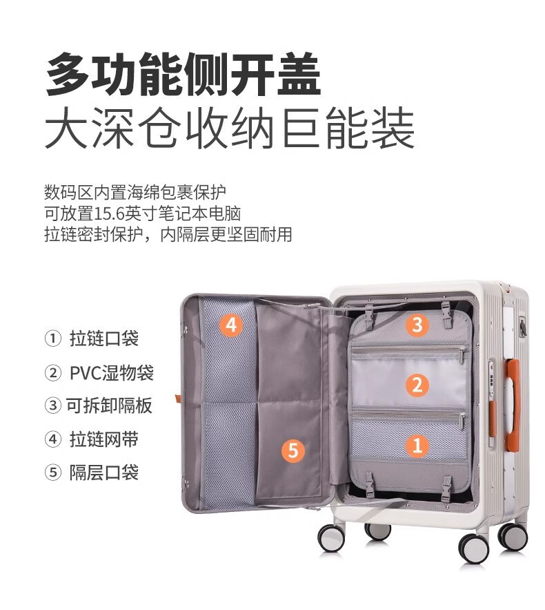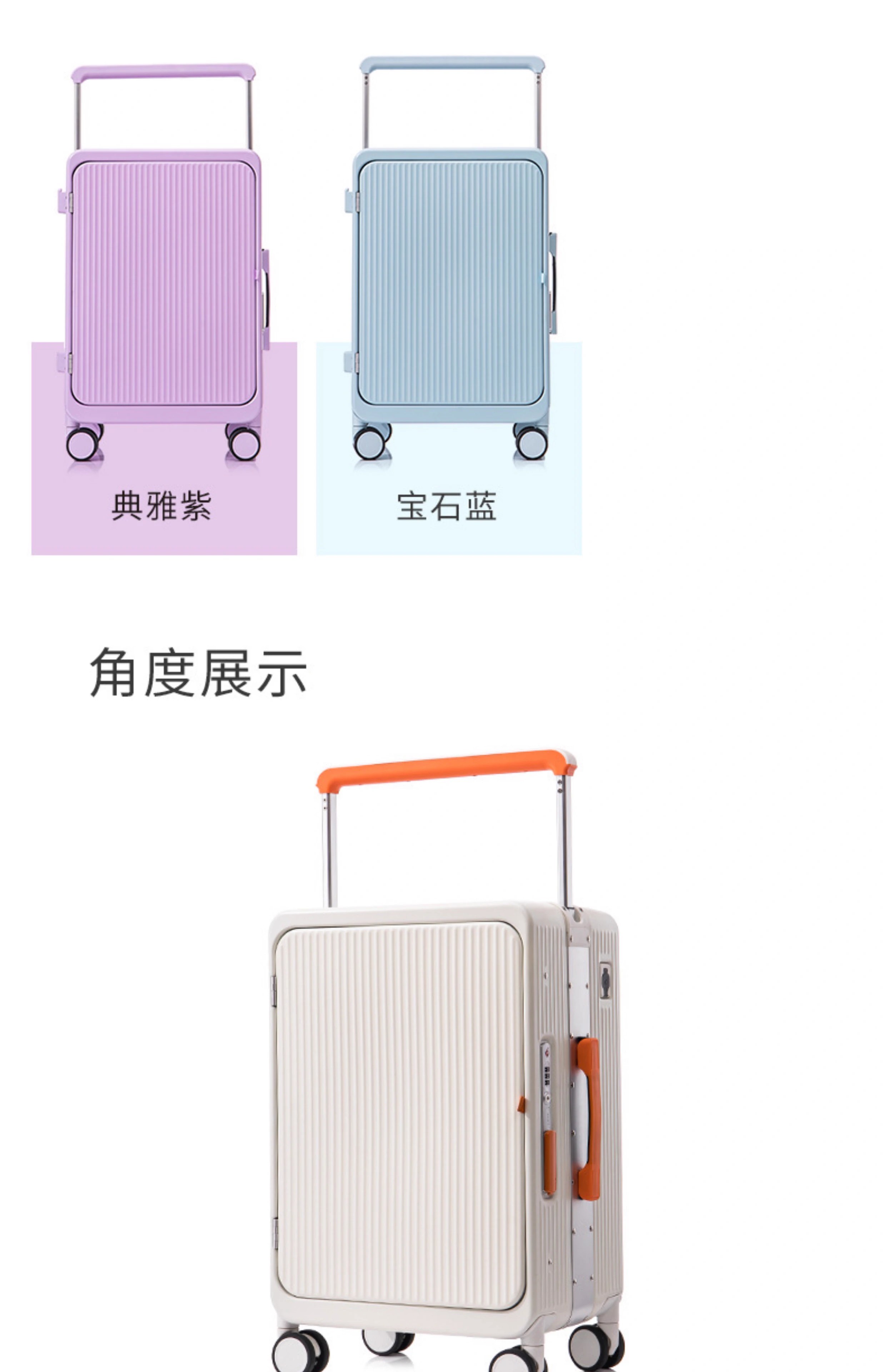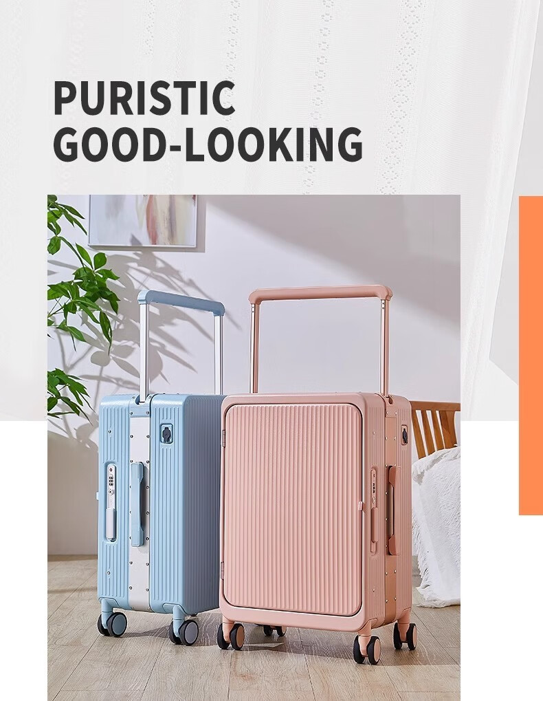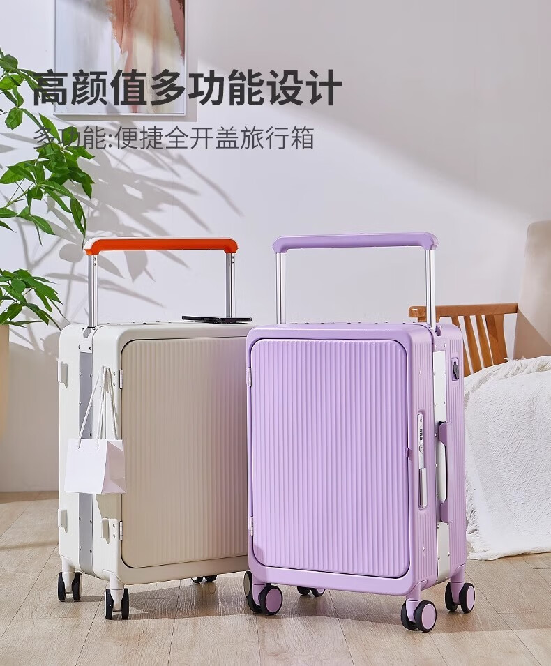 洛斯伯里(Roserooen)侧开盖铝框行李箱20寸登机箱静音拉杆箱万向轮宽拉杆旅行箱 紫色 20英寸