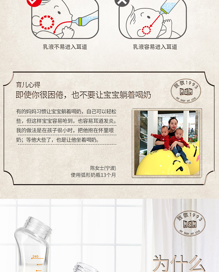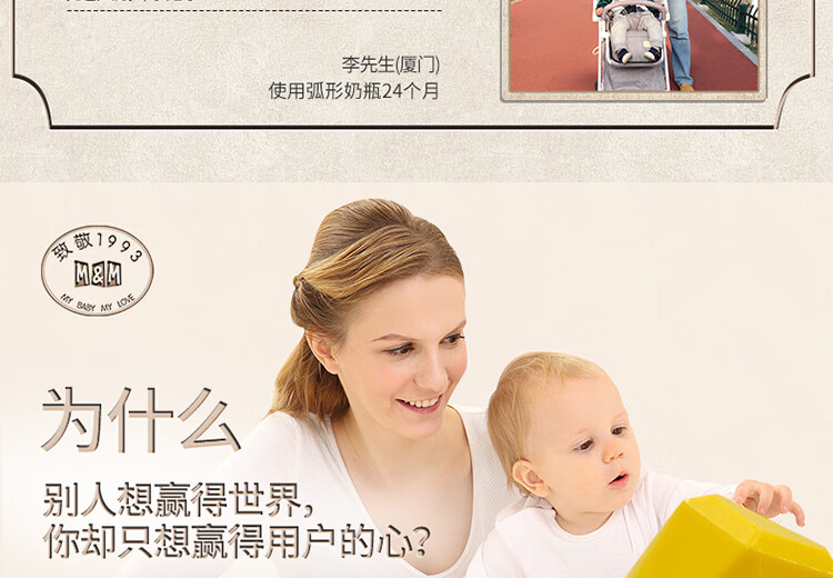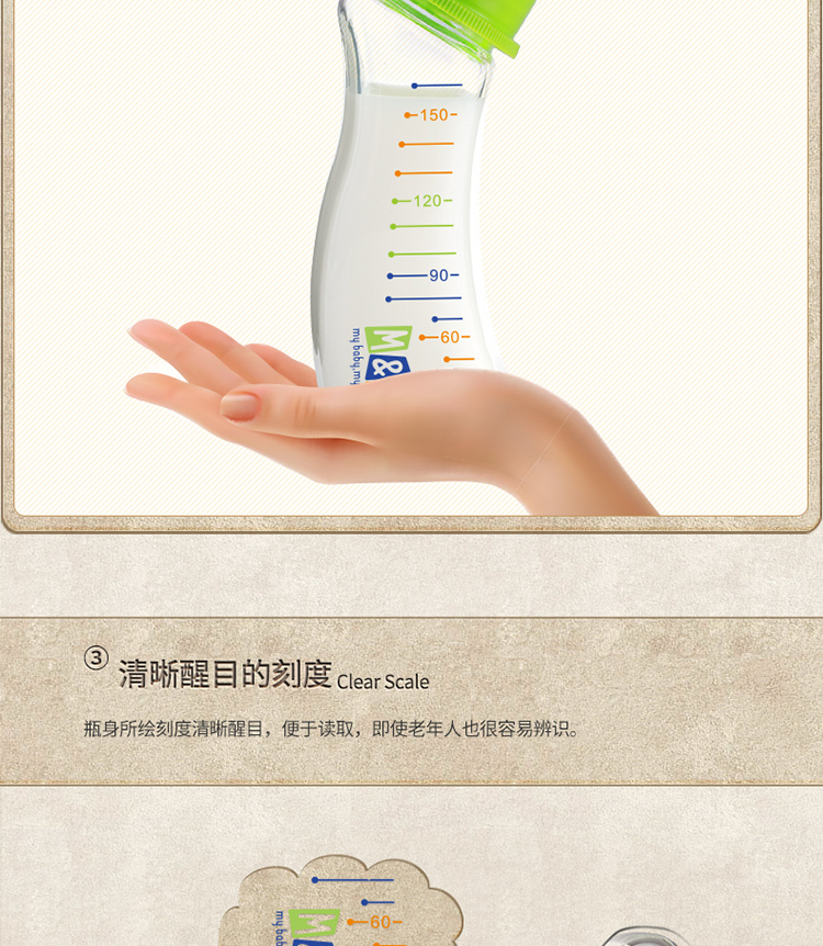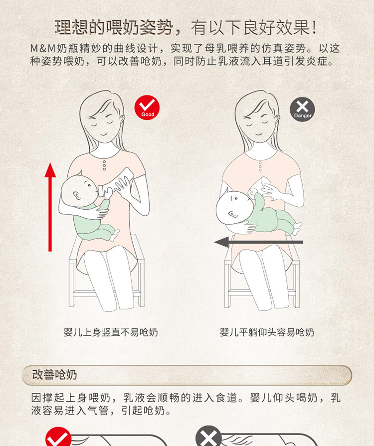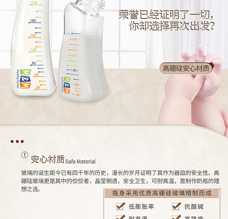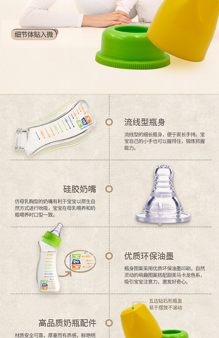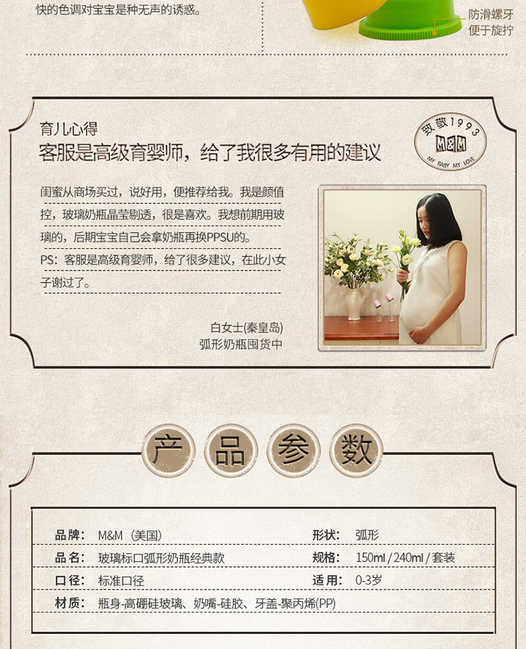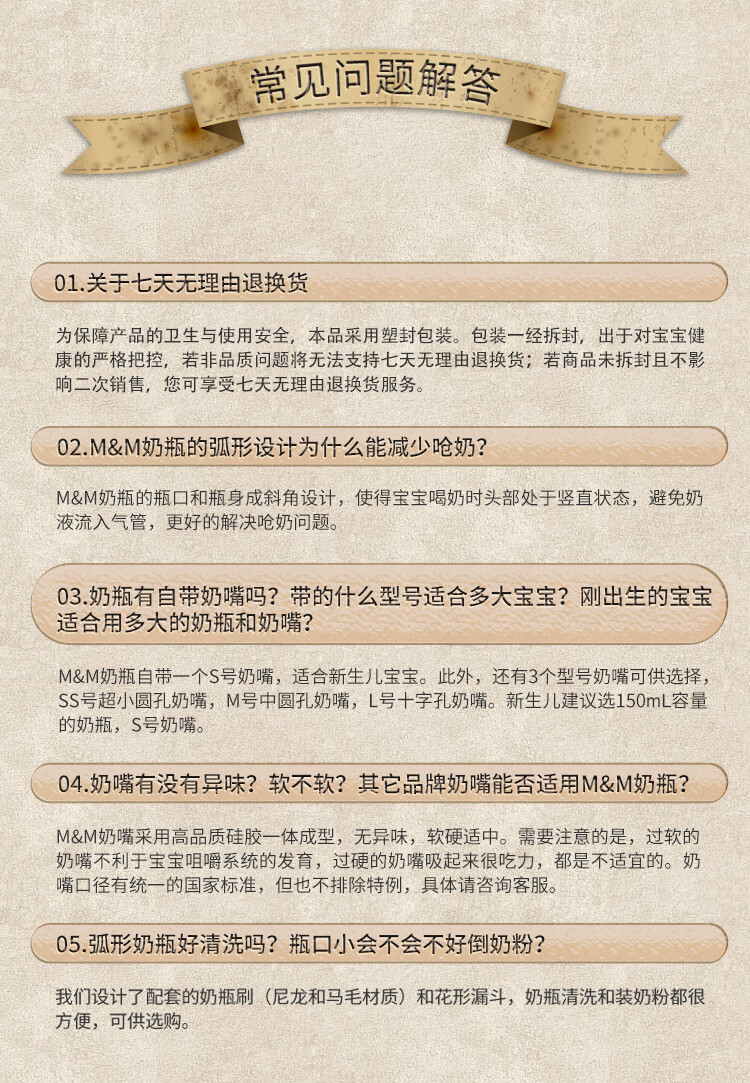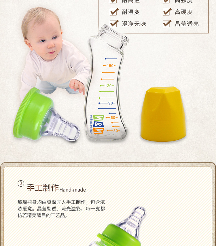M&M弧形玻璃奶瓶 新生儿防胀气防误咽婴儿奶瓶喝水喂奶标准口径MM 经典款 150ml 【S号+M号奶嘴】
