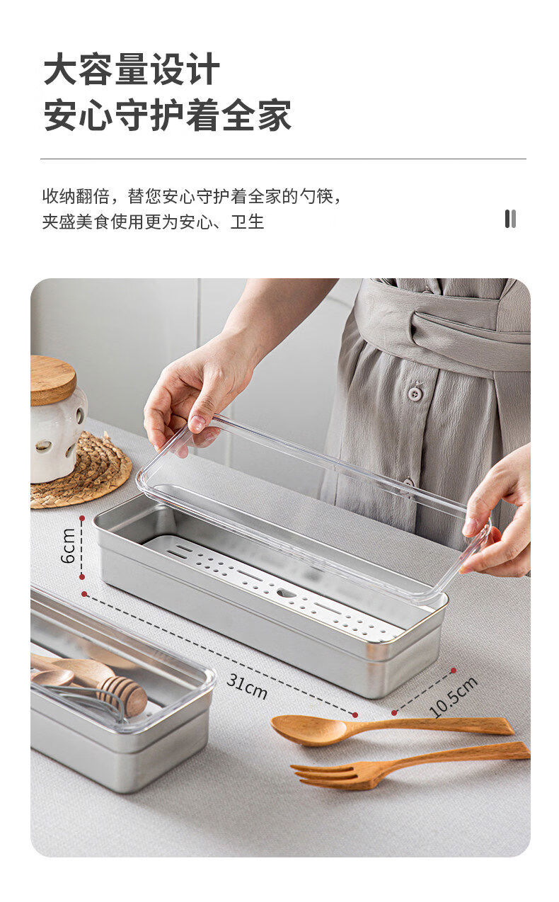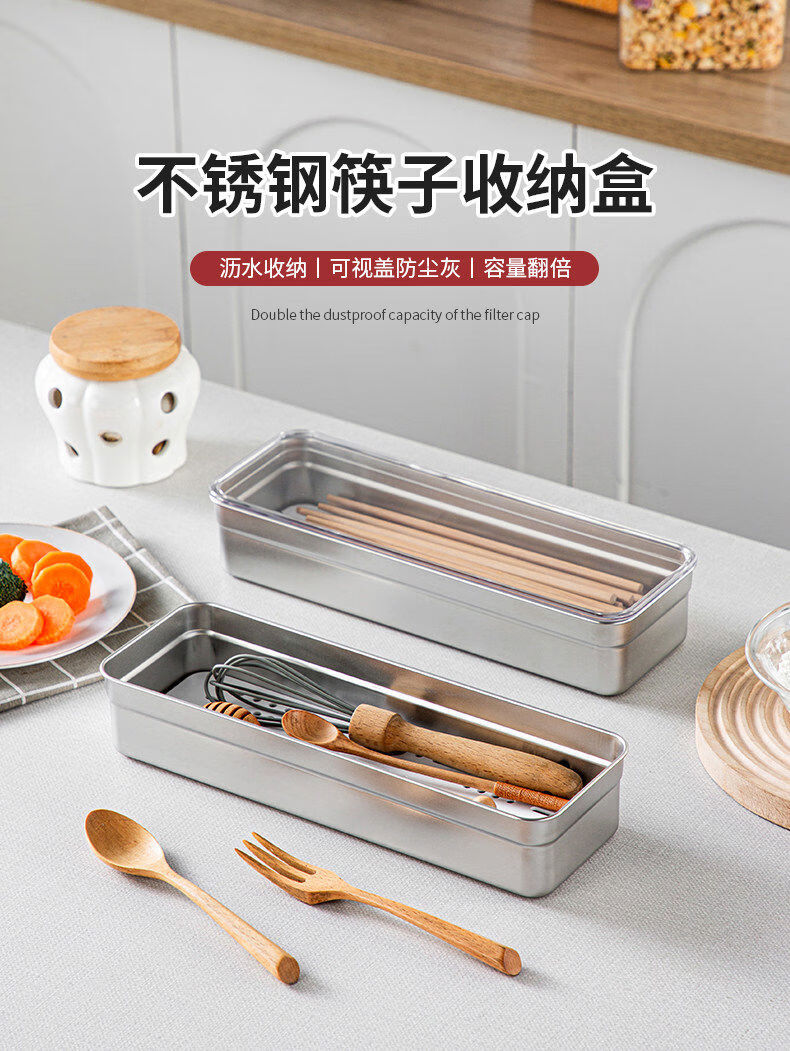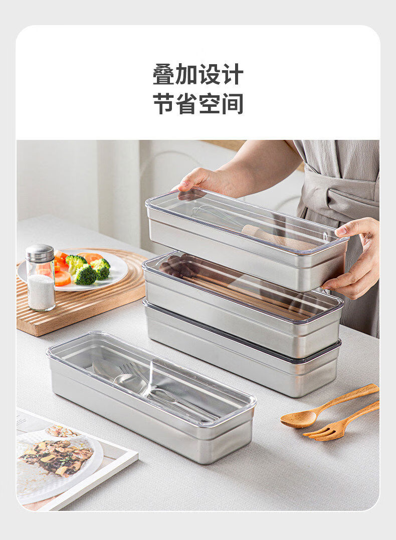 米黛蕾筷子盒厨房款收纳餐具盒家用筷子笼长方形不锈钢可消毒筷子筒 304精制筷子盒*4个可消毒