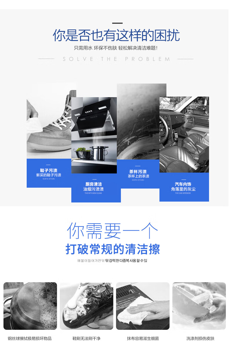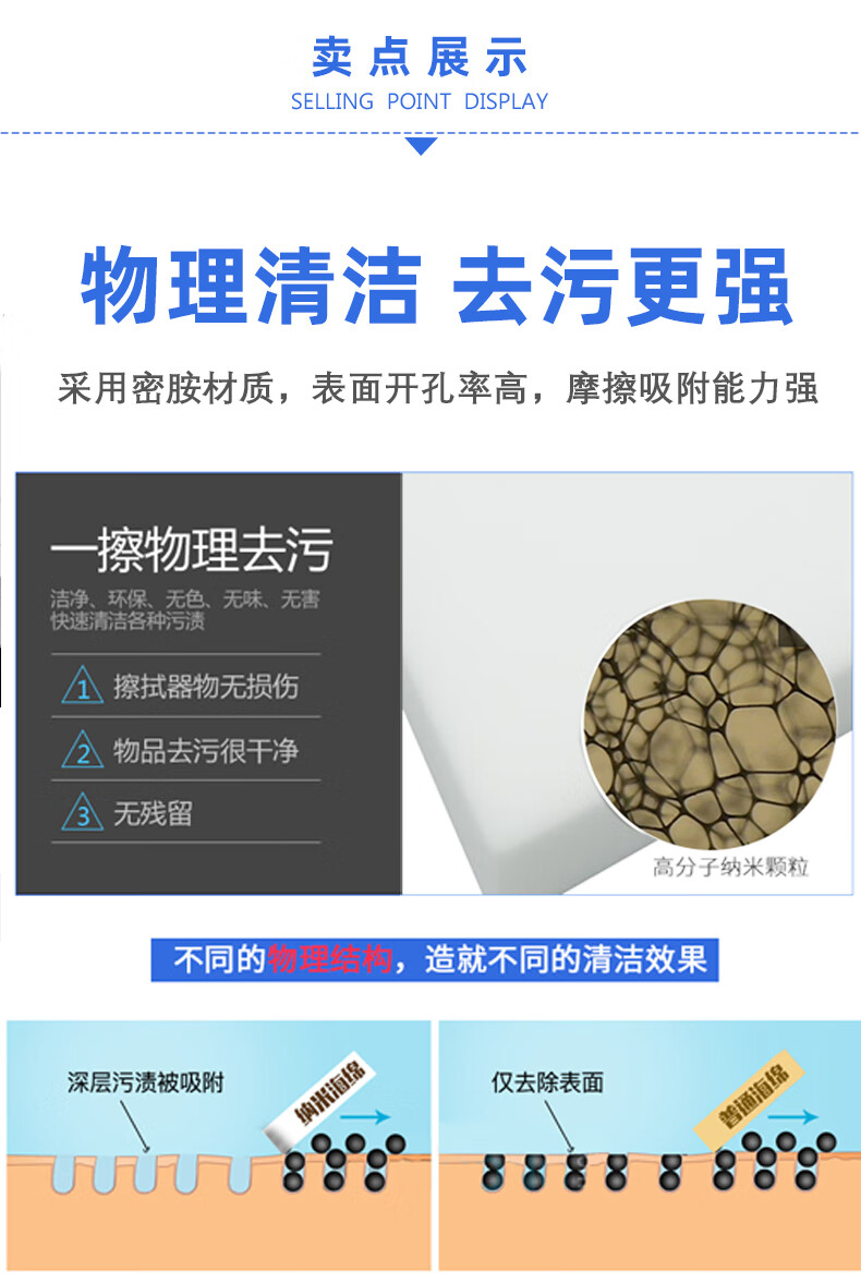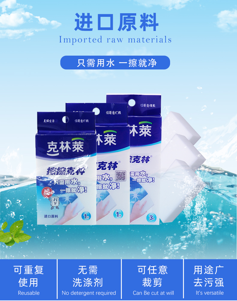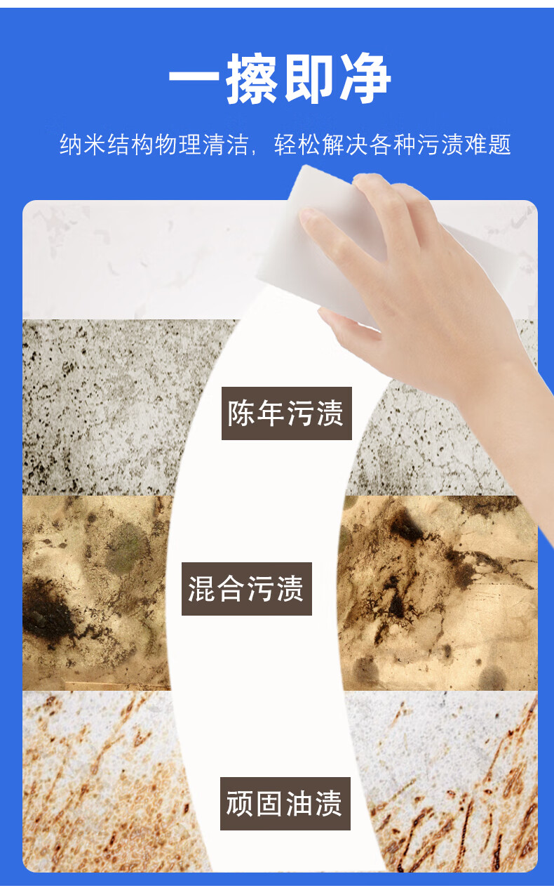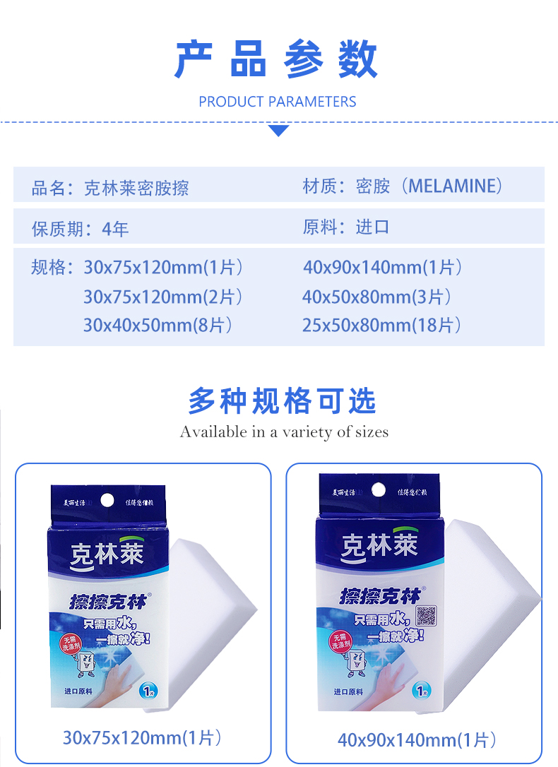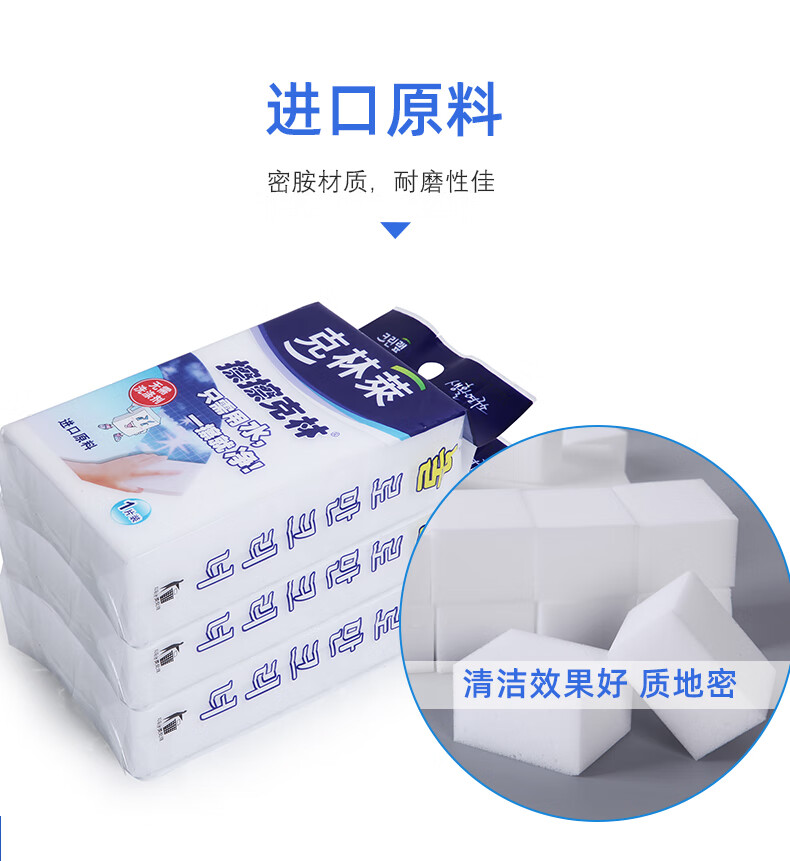 克林莱1擦擦克林纳米海绵高密度强力去污清洁魔力擦家用厨房卫生间神器 【3片装】40×50×80mm/袋