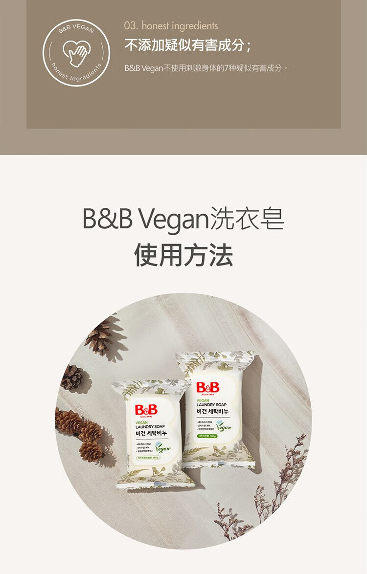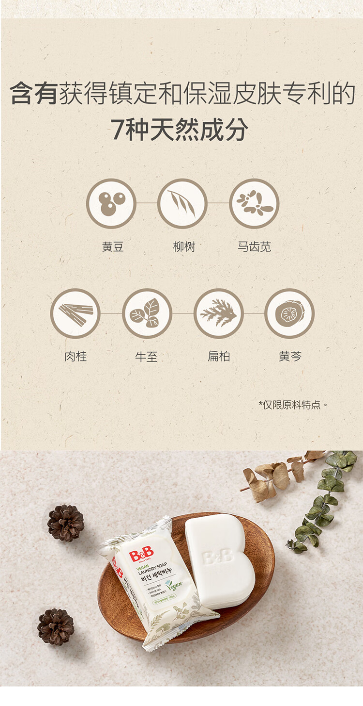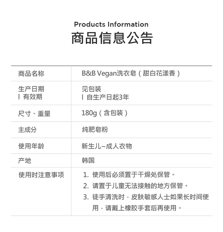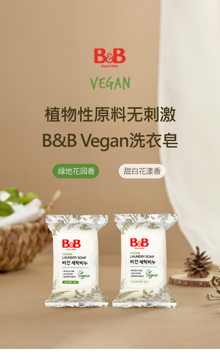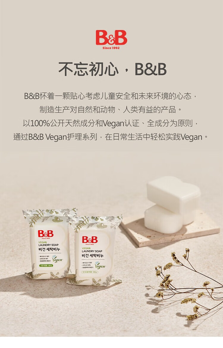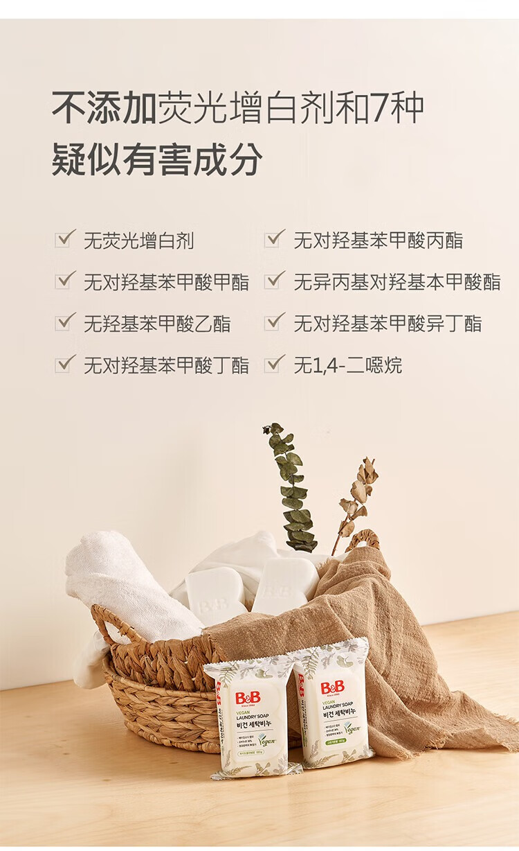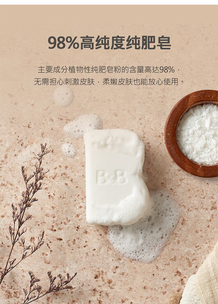 保宁(B&B)婴儿皂无荧光儿童皂去污纯素甜白花漾香洗衣香皂180g*5块【清仓】
