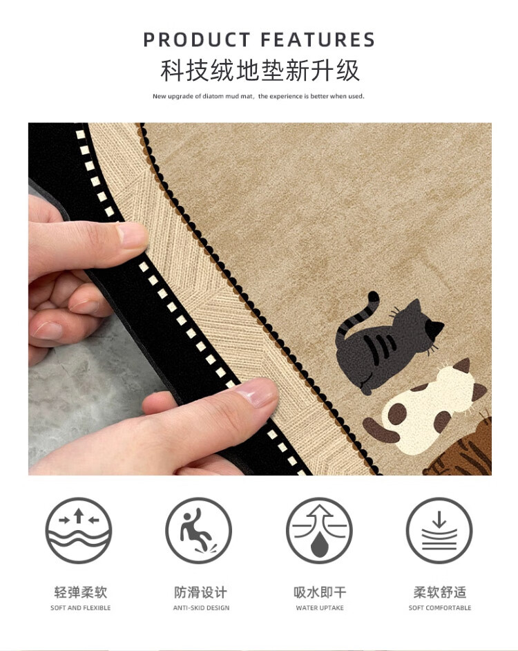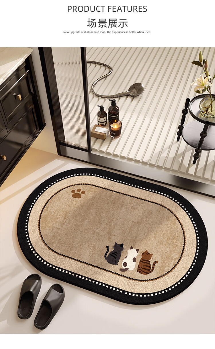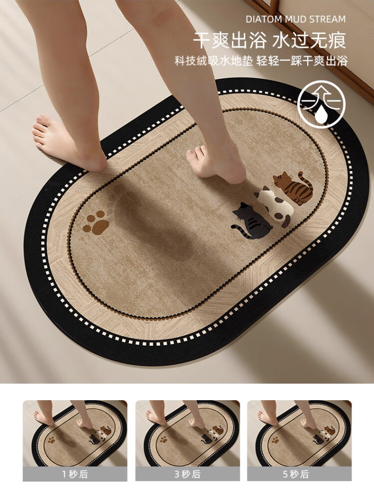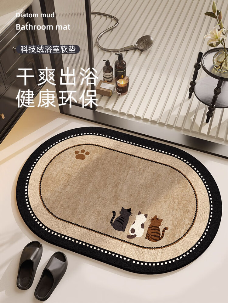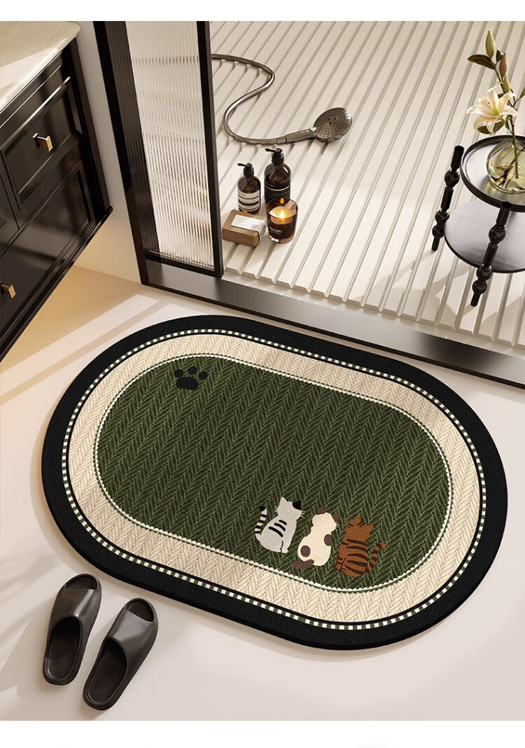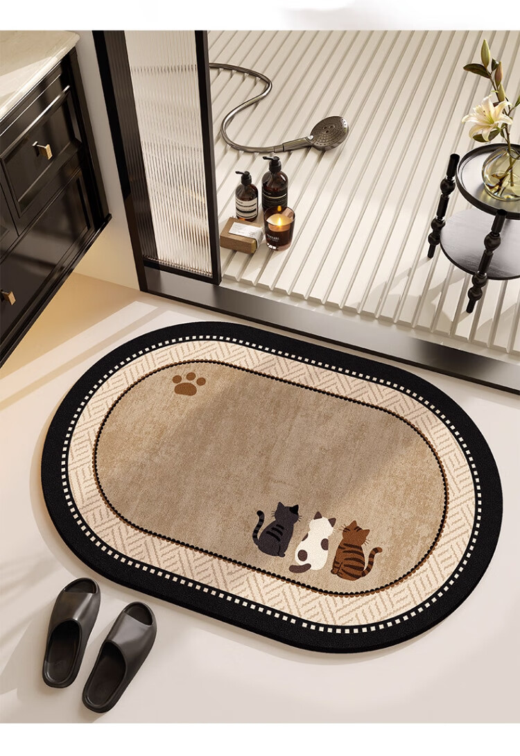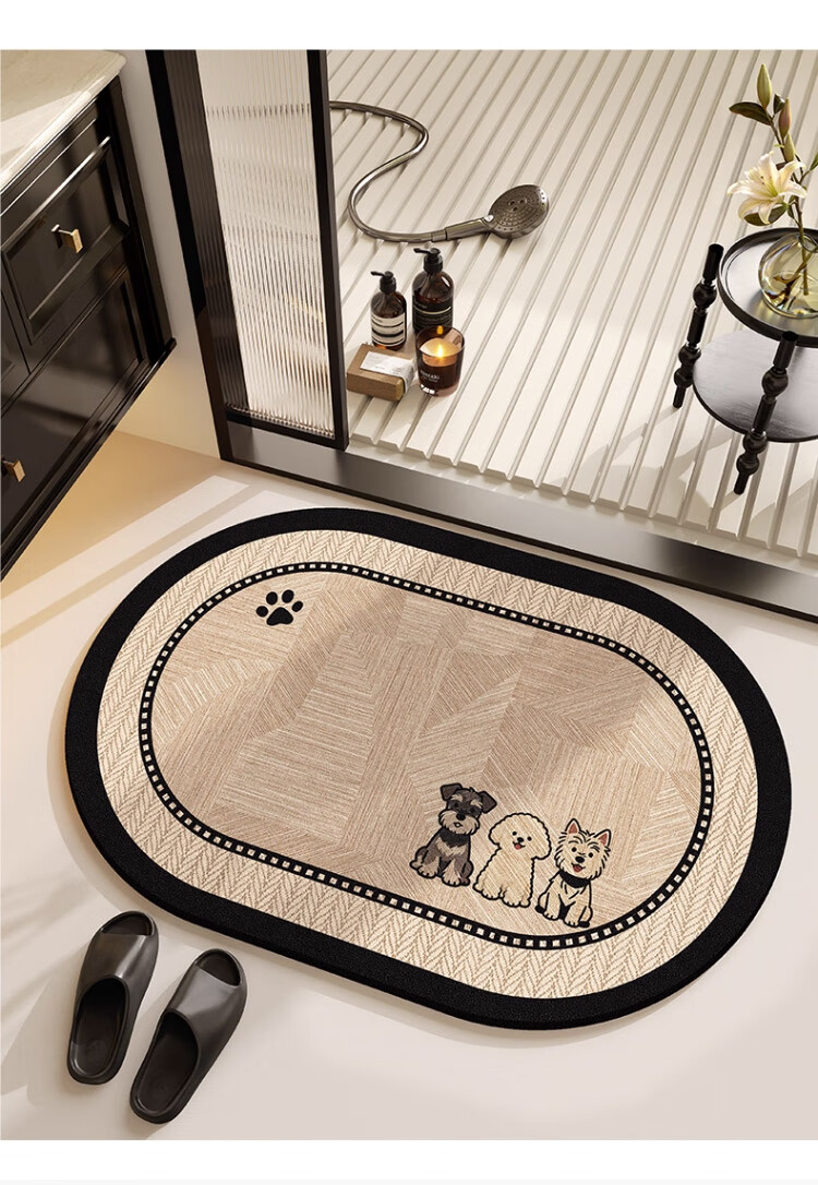 斯蒂曼妮 CITY·MANNI小清新浴室防滑地垫可爱卡通卫生间吸水速干椭圆脚垫加厚耐磨地毯 吉汪兆丰椭圆 40x60cm【吸水速干】抑菌防滑