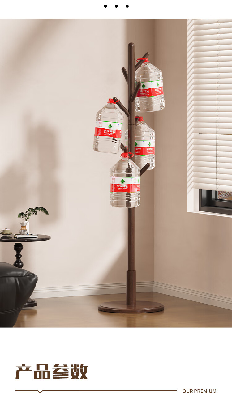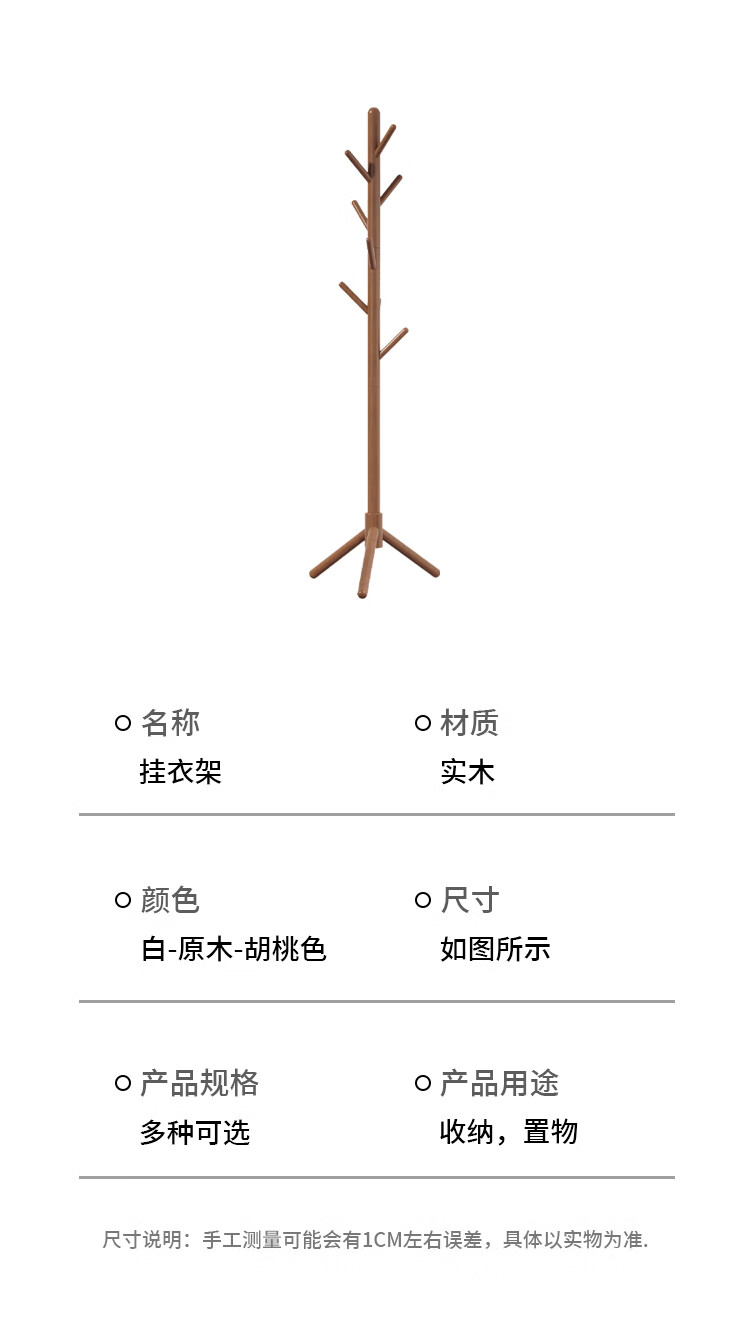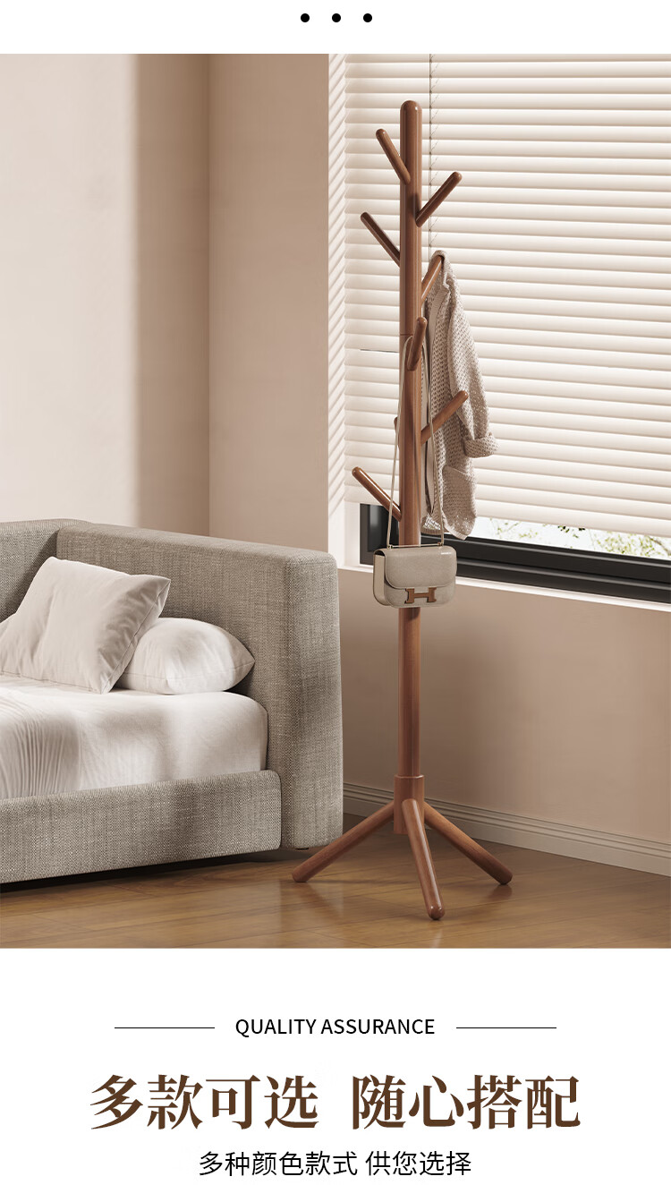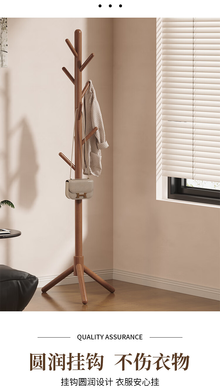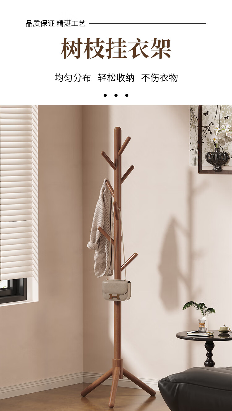 馨婺家落地衣帽架挂衣架卧室家用立式衣架杆衣服架子实木简约现代挂包架 胡桃色-高173cm【三角款】稳固升级