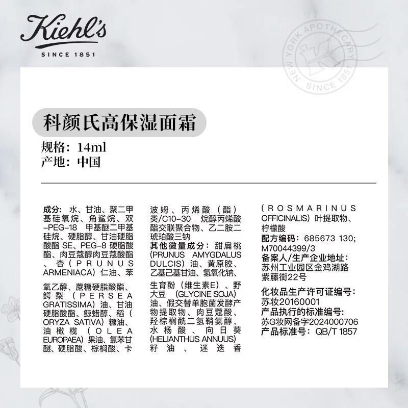 科颜氏(Kiehl's)科颜氏高保湿面霜 14ML*3