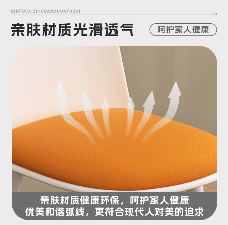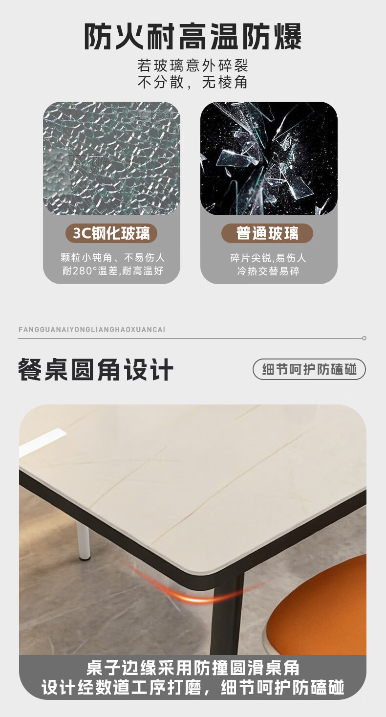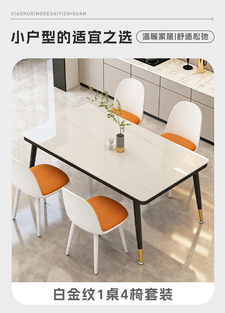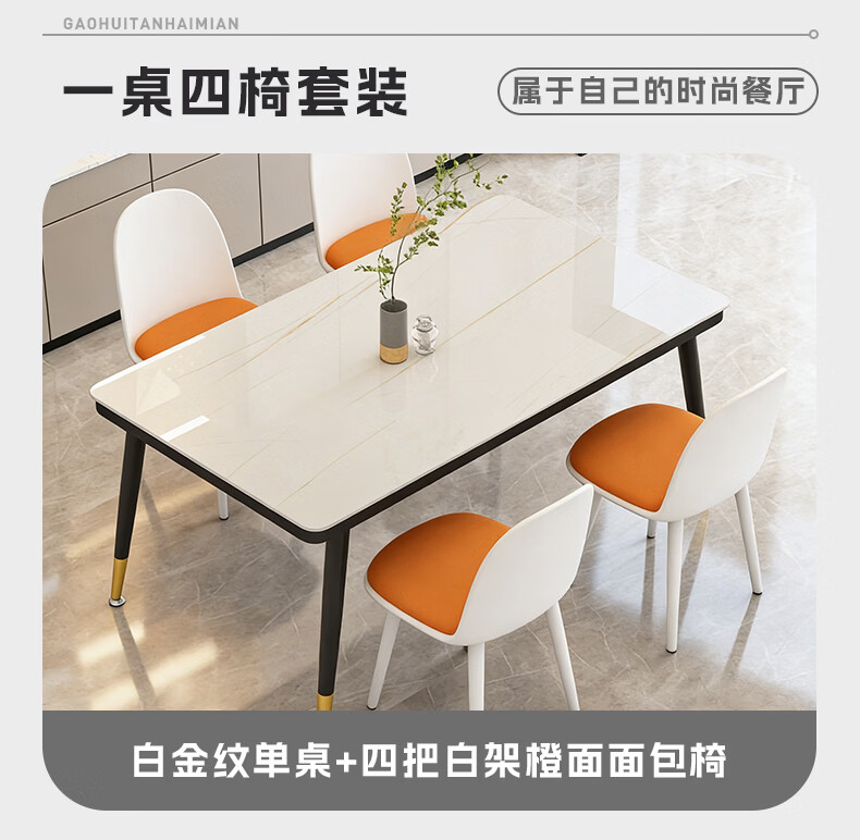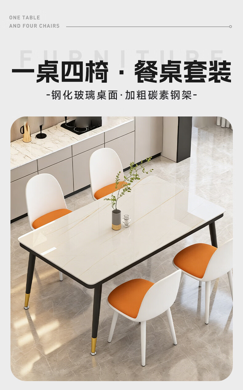 凡社一桌四椅 白金纹餐桌钢化玻璃1.2米+4把餐椅橙色