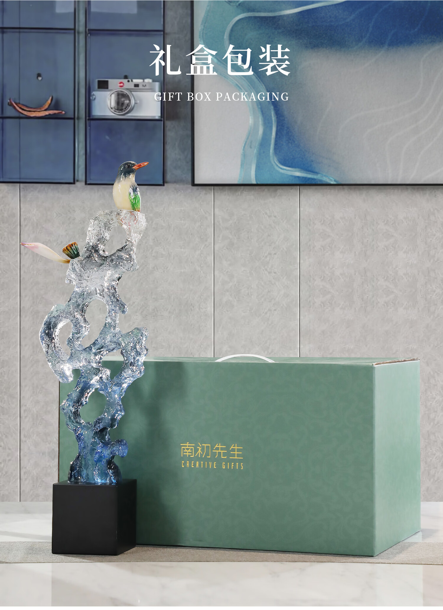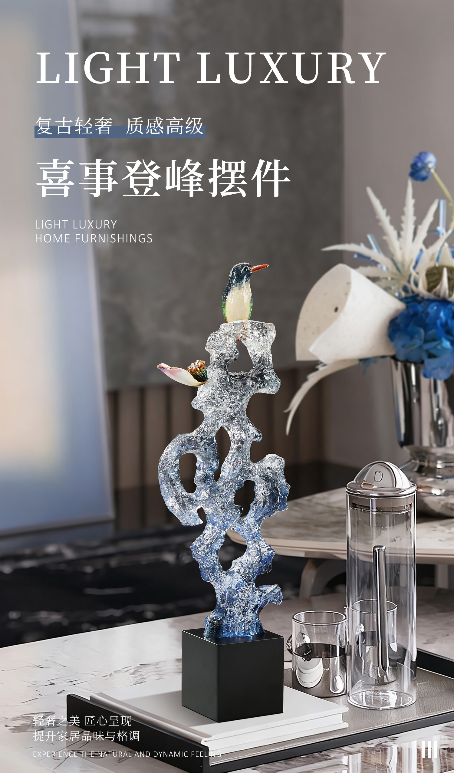 南初先生喜事登峰太湖石喜鹊摆件轻奢高档客厅玄关装饰品搬家礼品乔迁之喜 喜事登峰-礼盒装