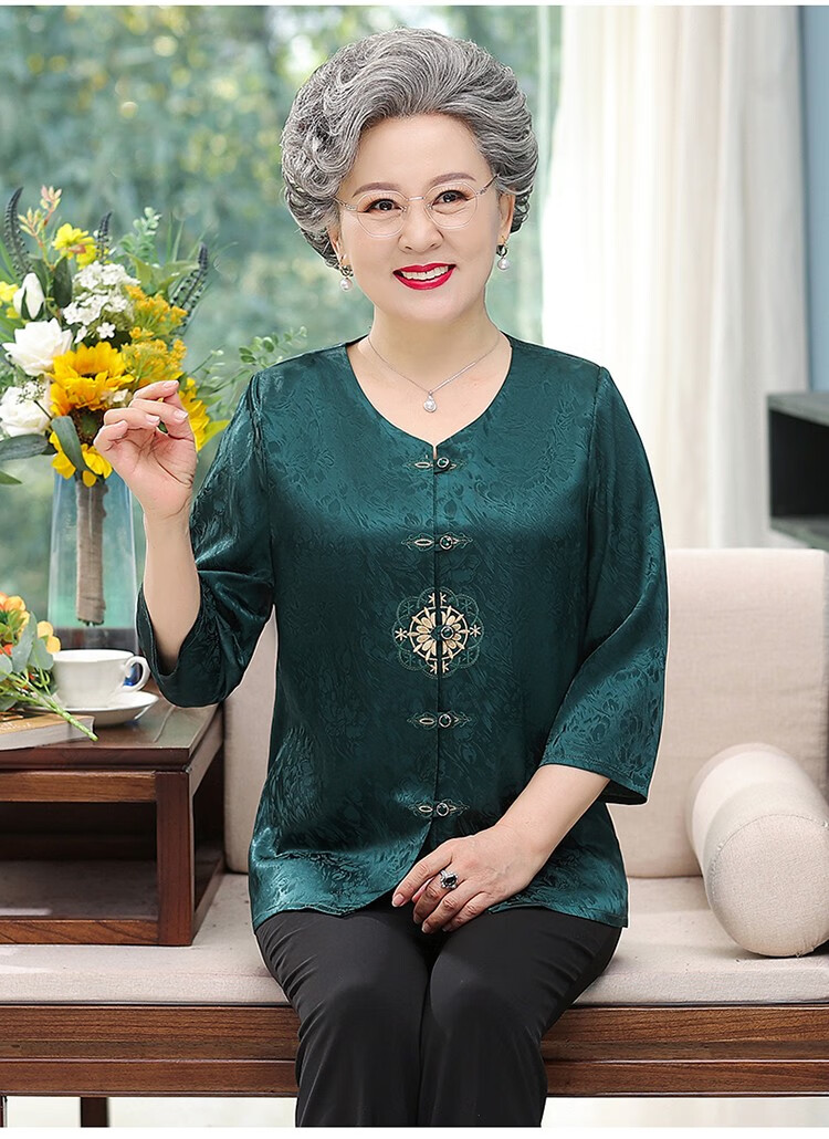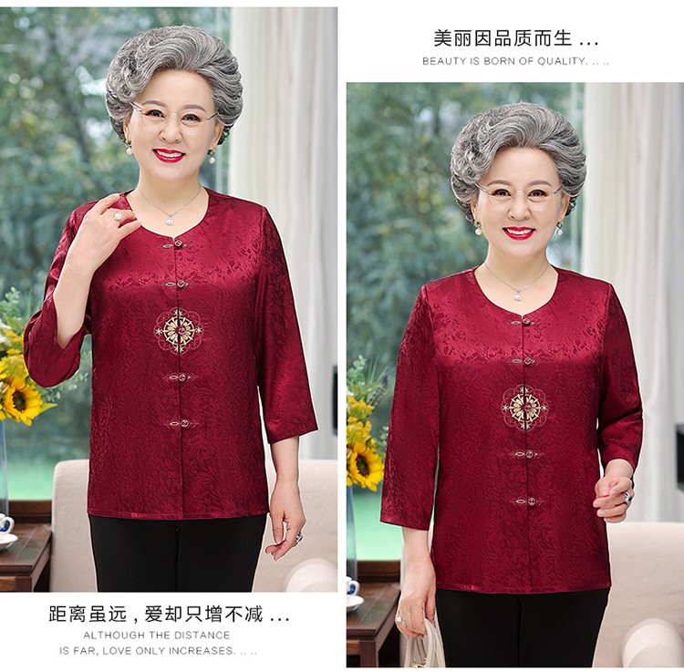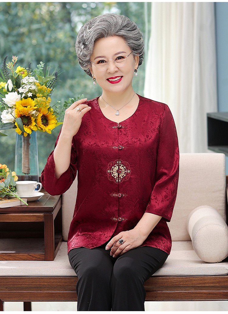 孜颜奶奶装夏装2026新款套装老年人衣服奶奶款60-70岁上衣两件套衣服 红色【单件上衣】 L 建议80-95斤