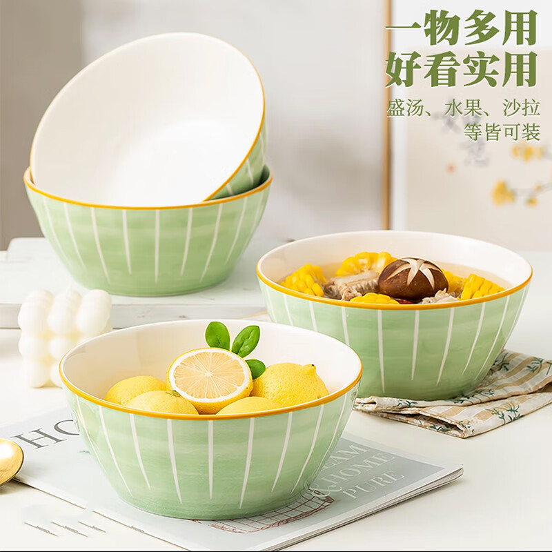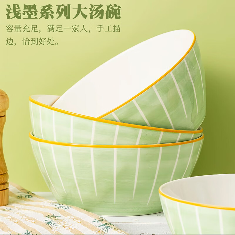 8英寸汤碗2只家用陶瓷餐具大尺寸面碗汤碗微波炉适用 桑墨8英寸汤碗2只