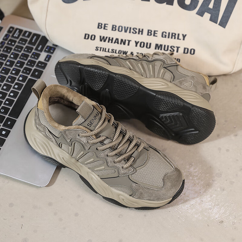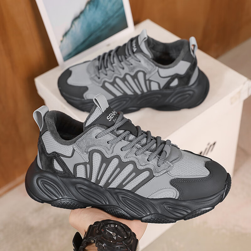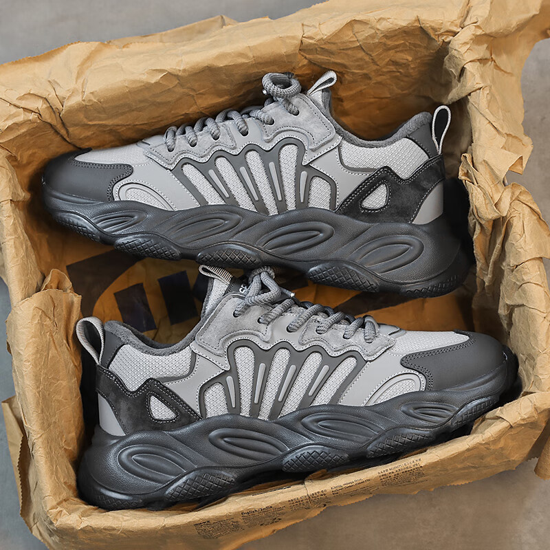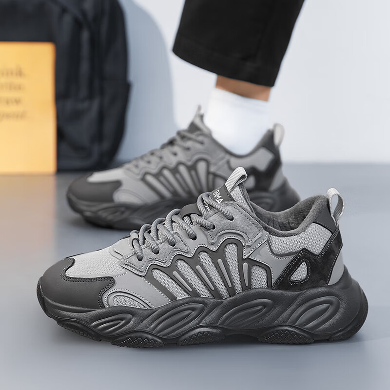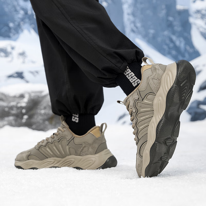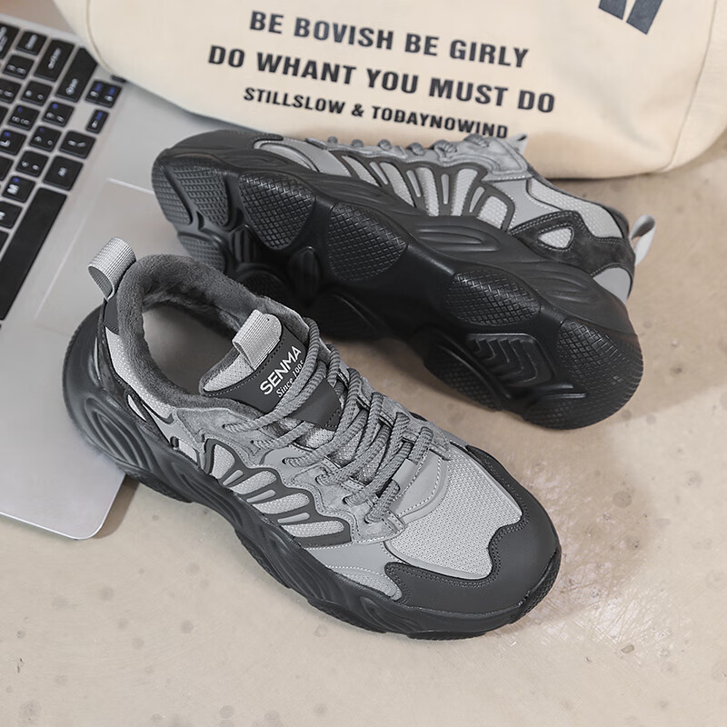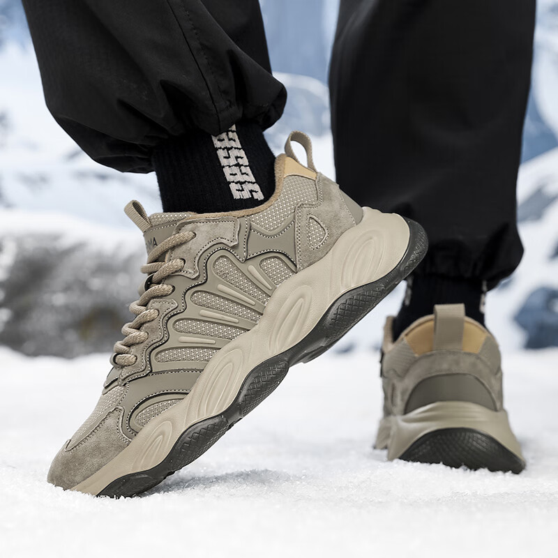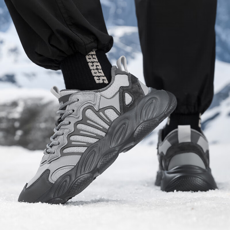 森馬男鞋2026年新款冬季休闲加绒保暖工作劳保户外徒步登山运动老爹鞋 灰色【单鞋款】 39 标准码数/现货秒发