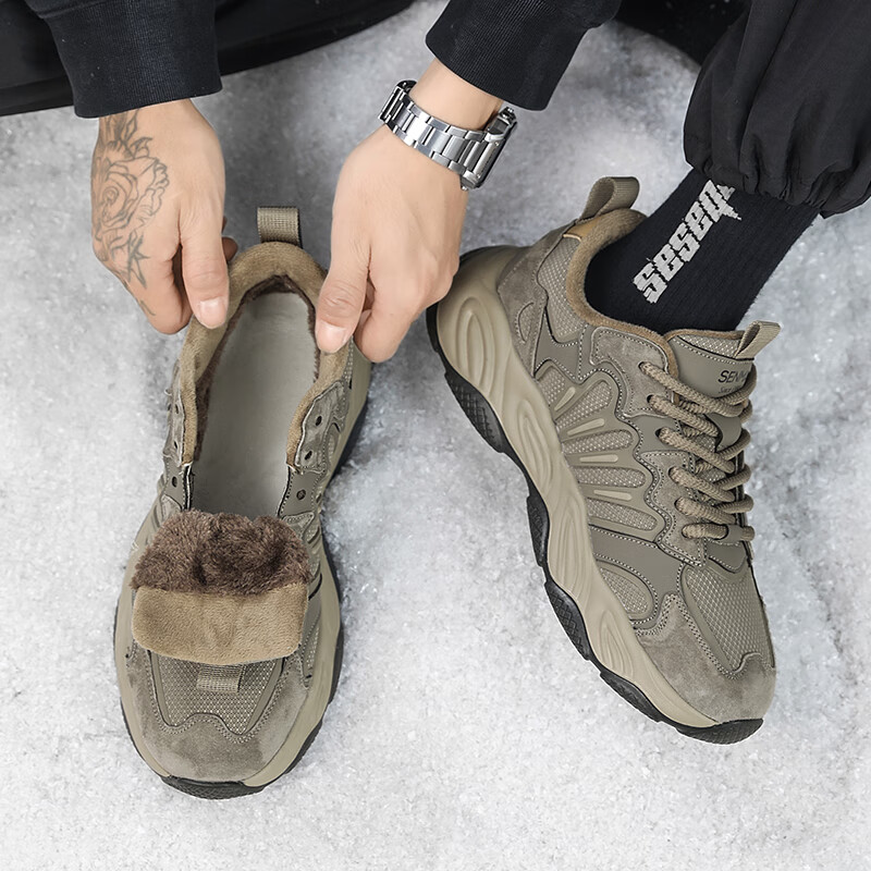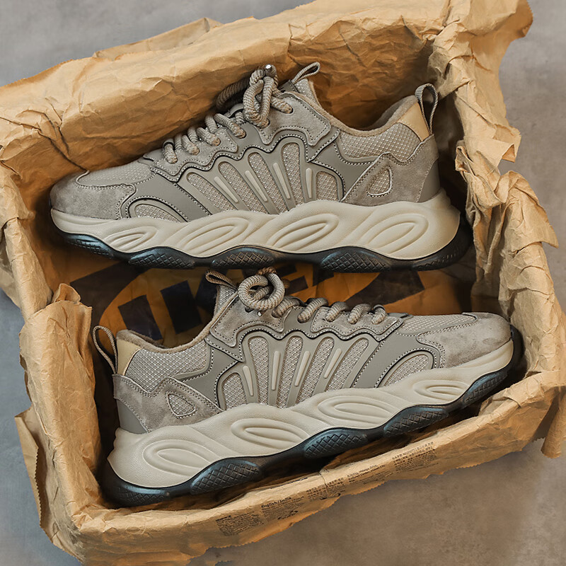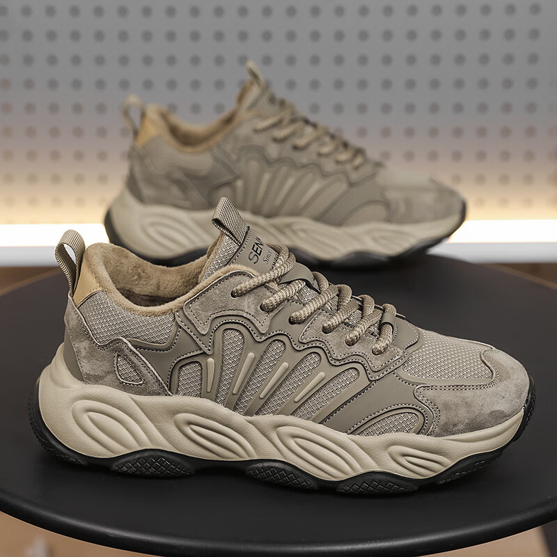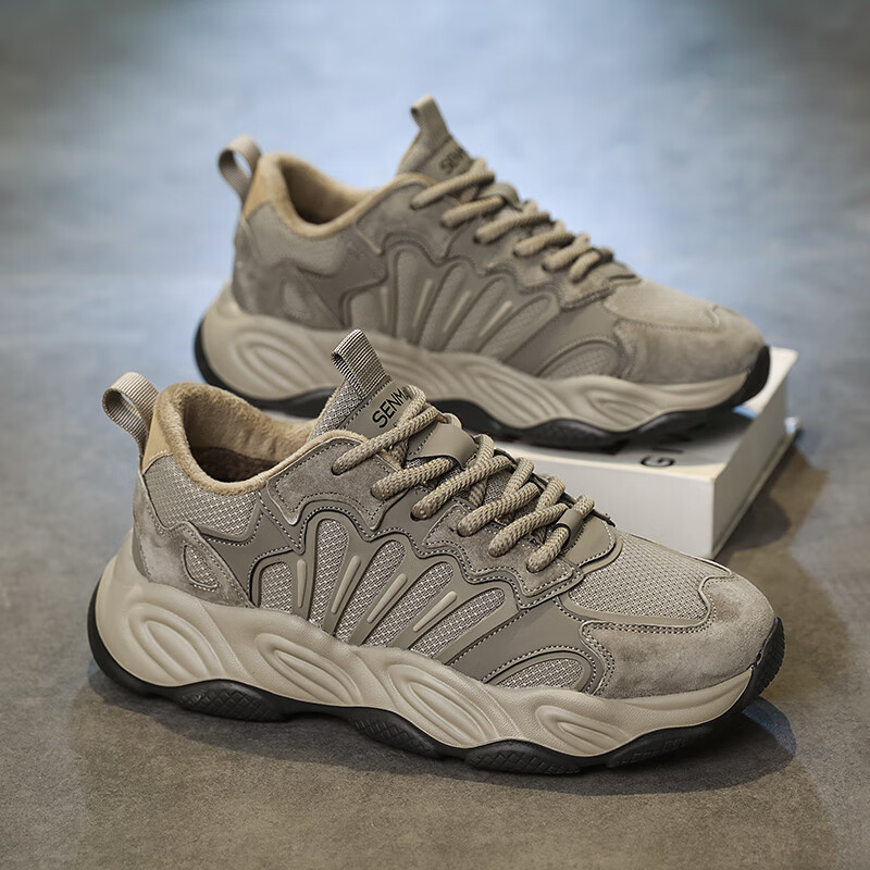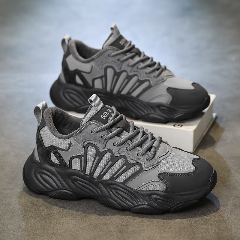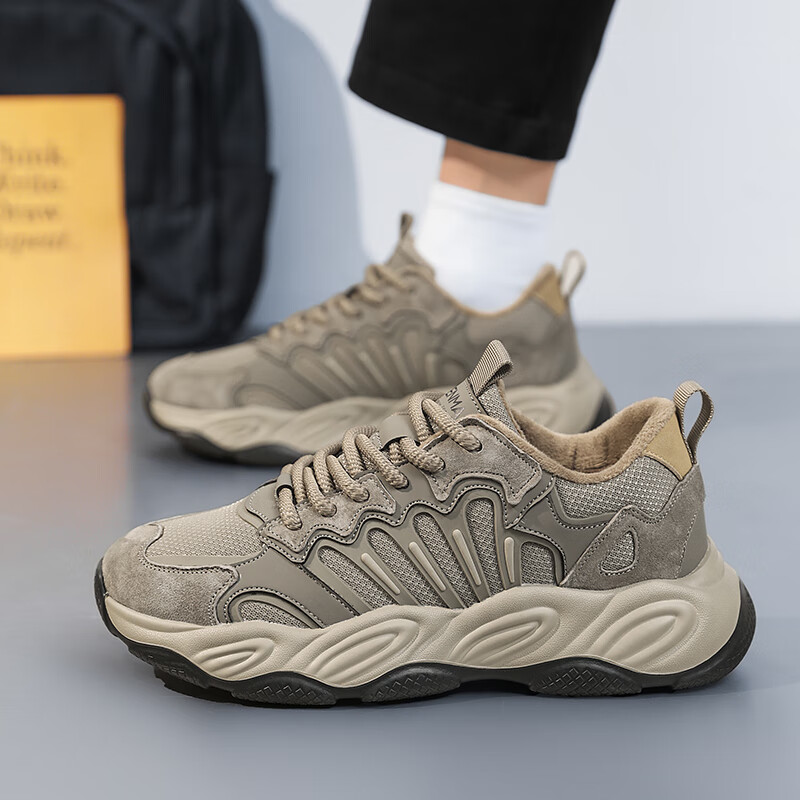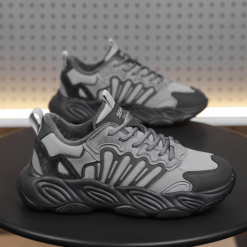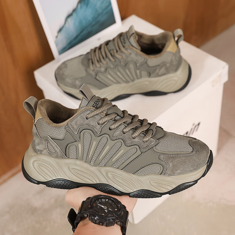 森馬男鞋2026年新款冬季休闲加绒保暖工作劳保户外徒步登山运动老爹鞋 灰色【单鞋款】 39 标准码数/现货秒发
