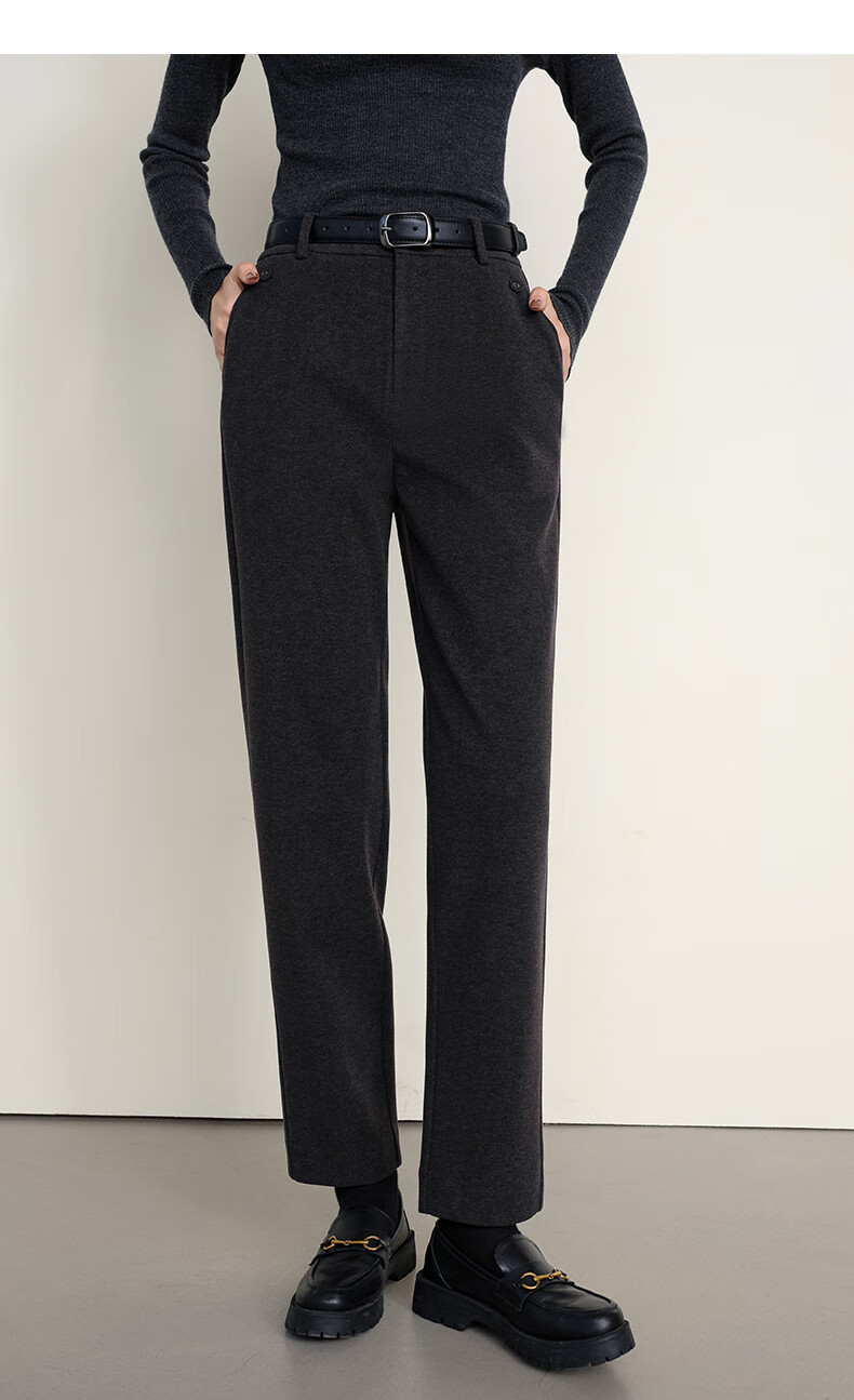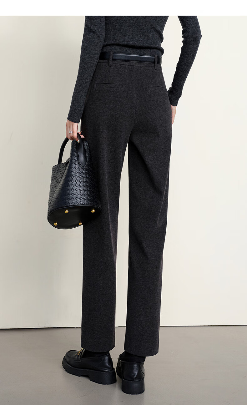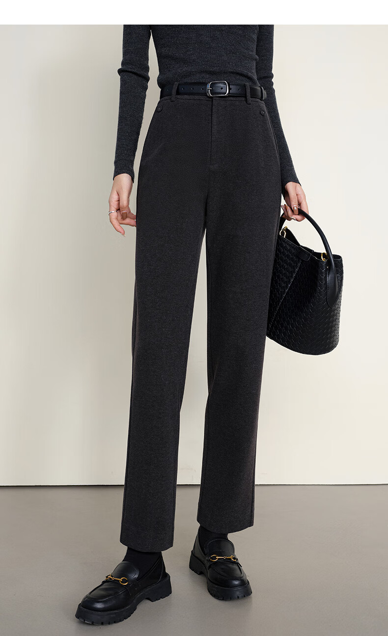 晚白【新品】2026春款时尚高腰职业烟管厚款休闲裤女【不含腰带】 深灰色 26