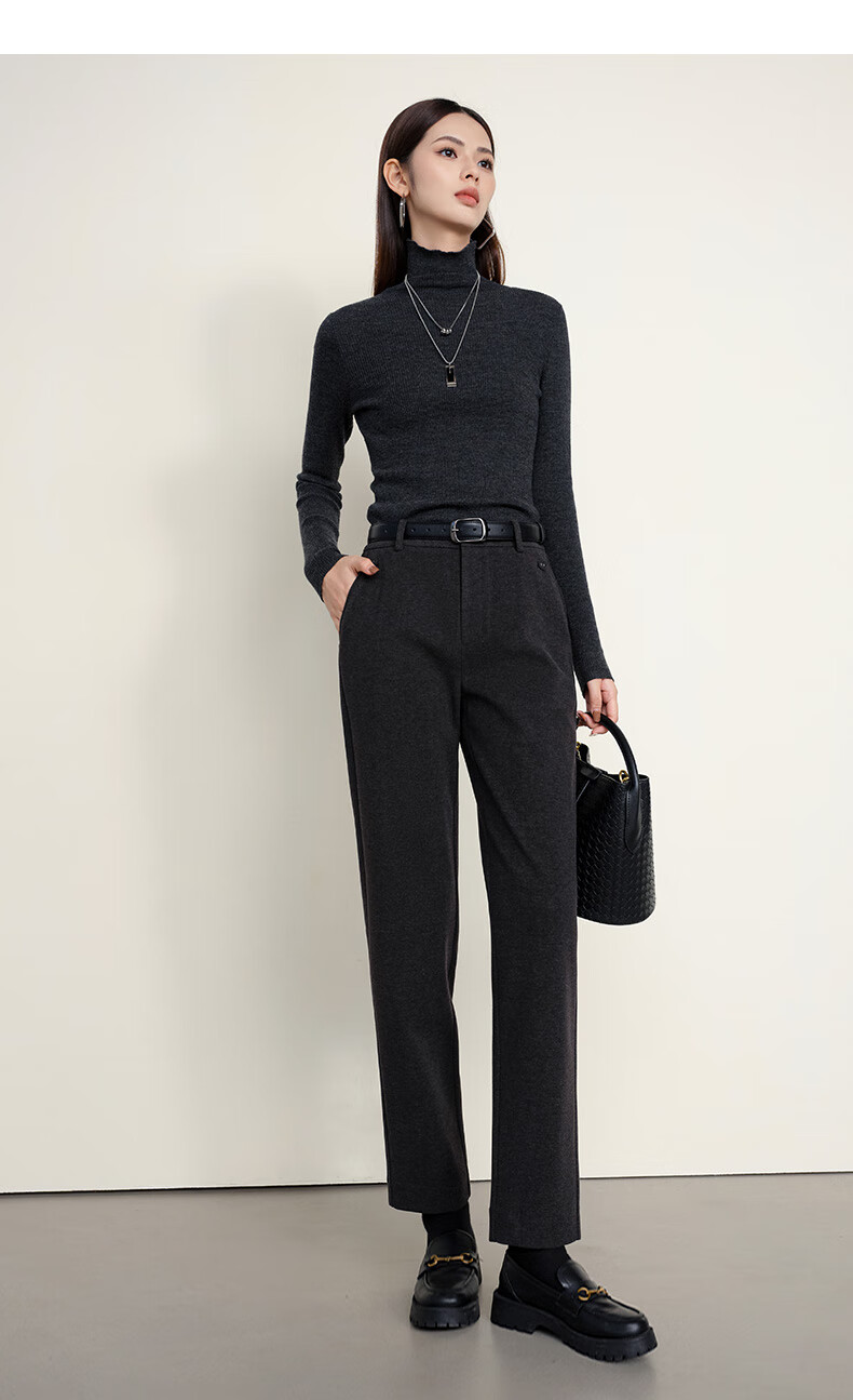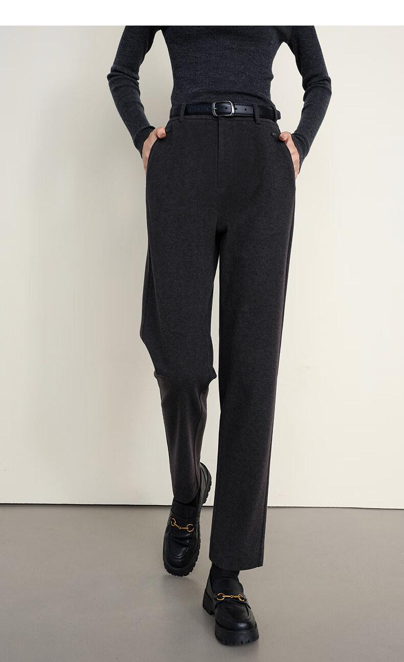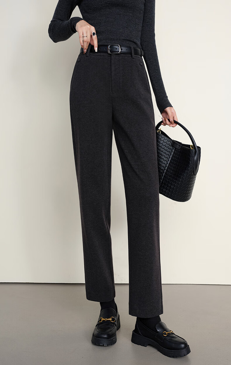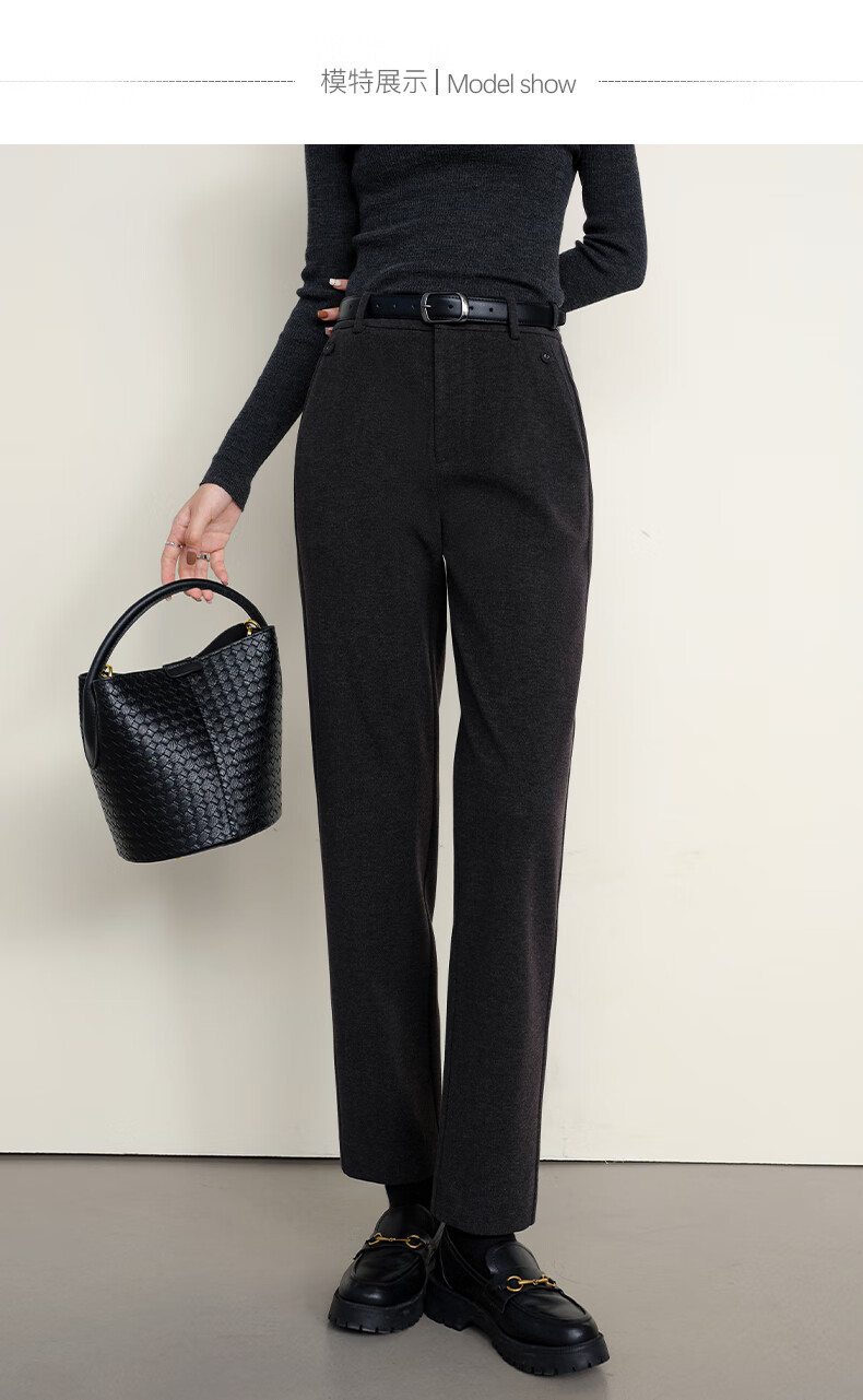 晚白【新品】2026春款时尚高腰职业烟管厚款休闲裤女【不含腰带】 深灰色 26