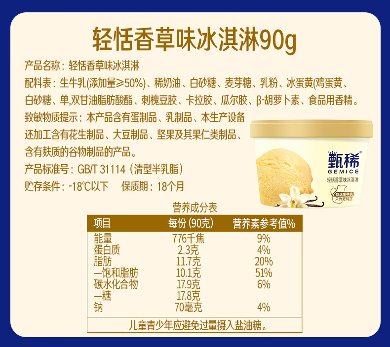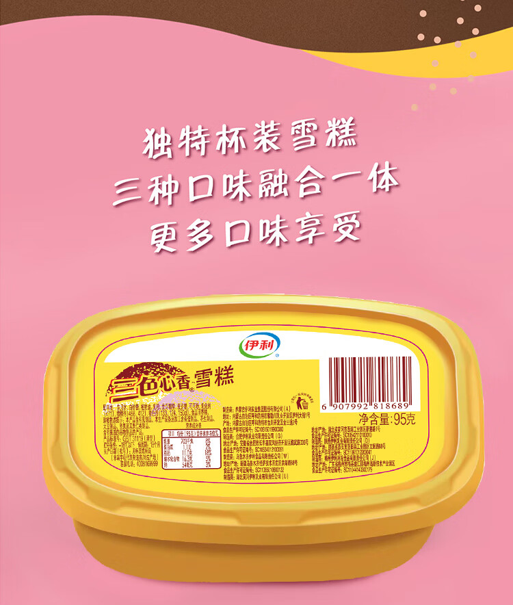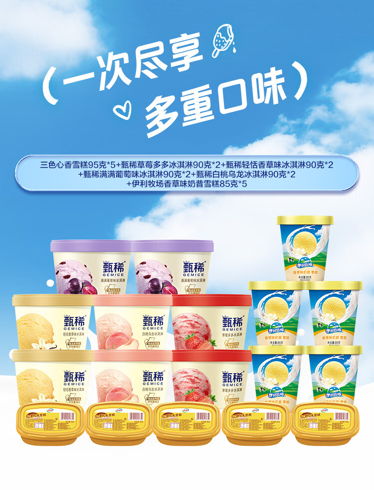 伊利甄稀90g杯*8杯+香草奶昔杯*5杯+三色心香雪糕*5杯 冰淇淋 雪糕 共18杯(1620g)