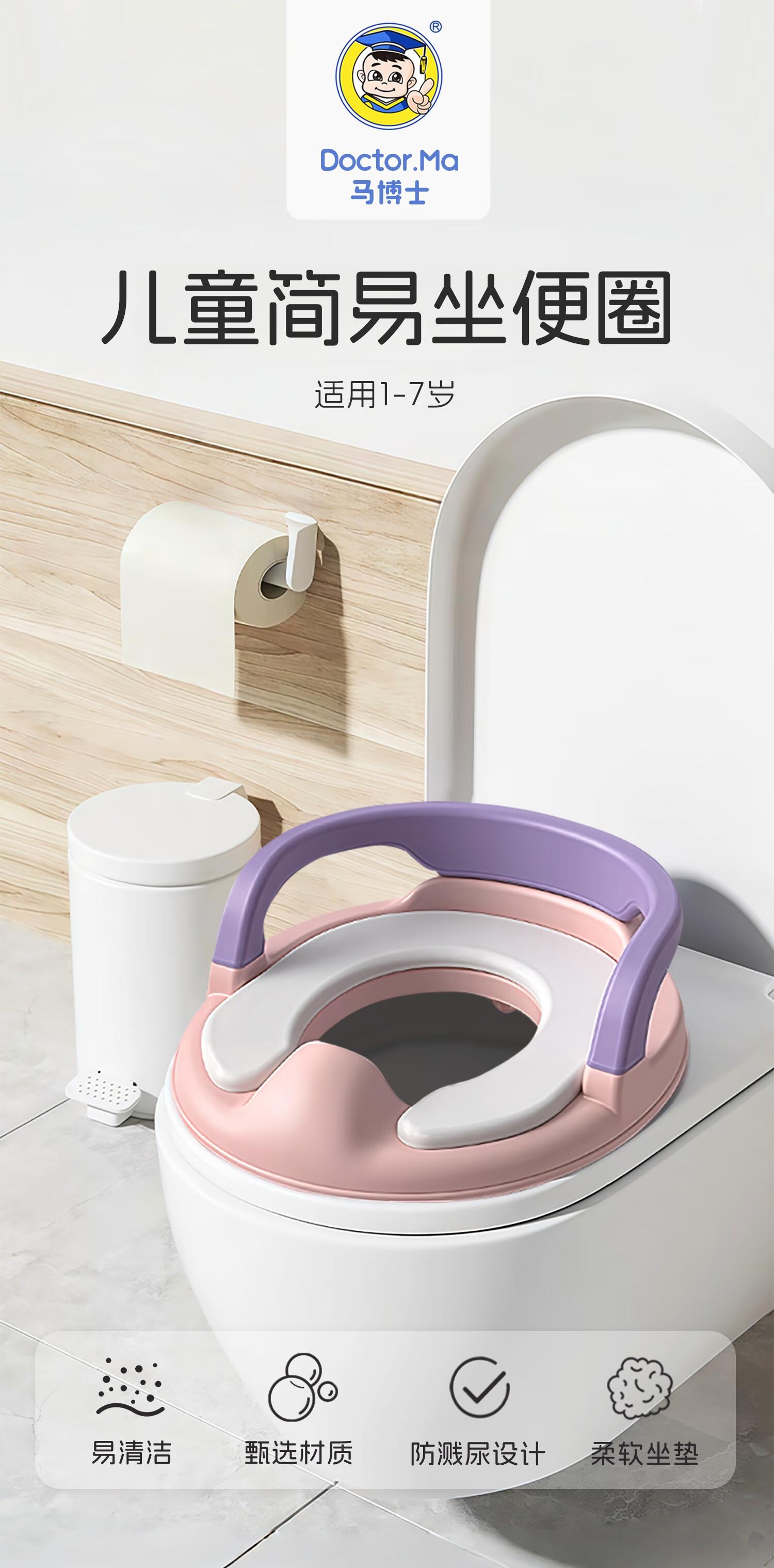 马博士 儿童马桶圈坐便器女宝宝马桶垫婴儿坐便圈尿盆便盆粉色H2004