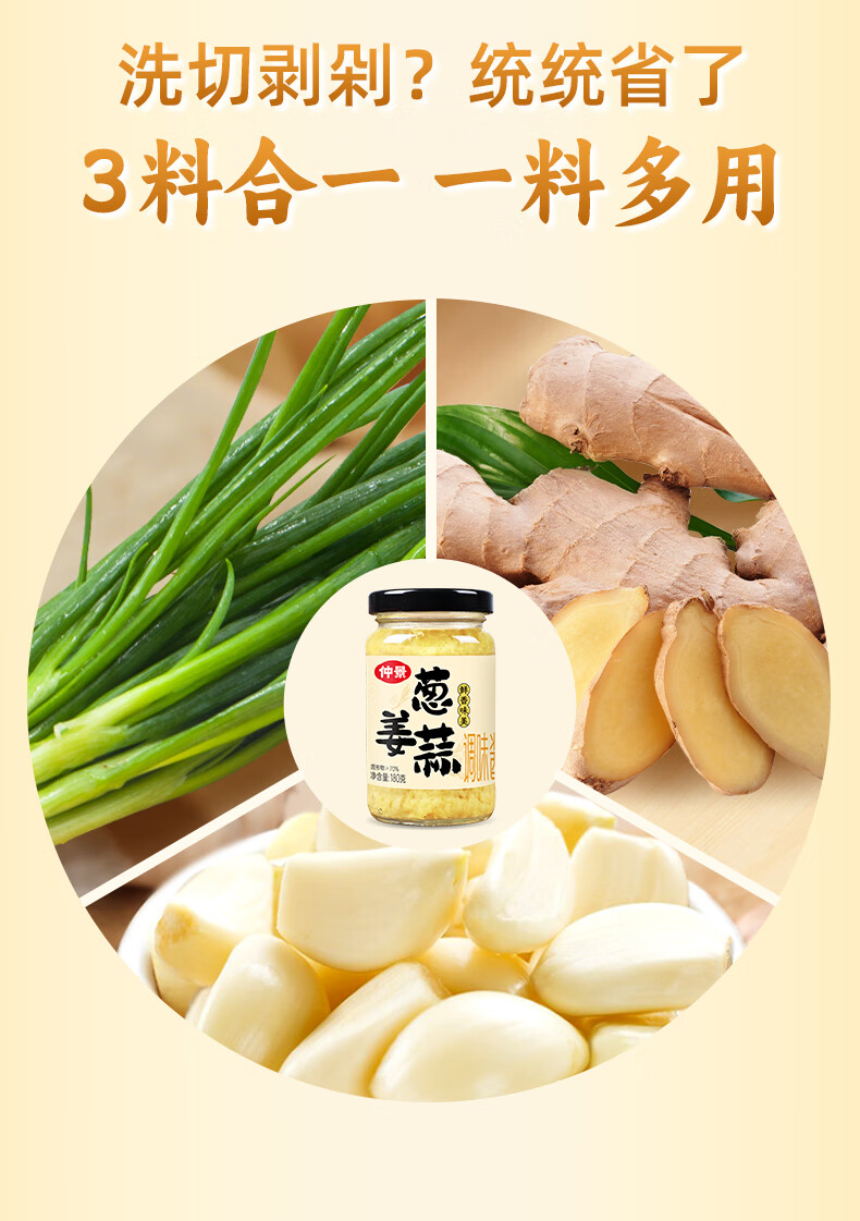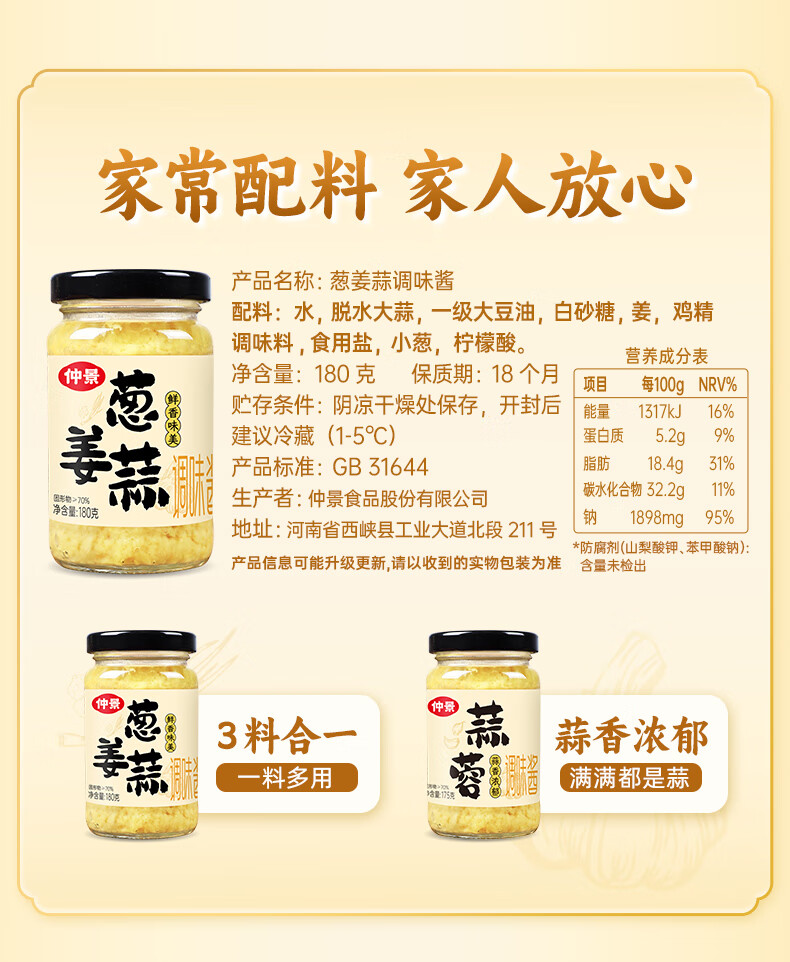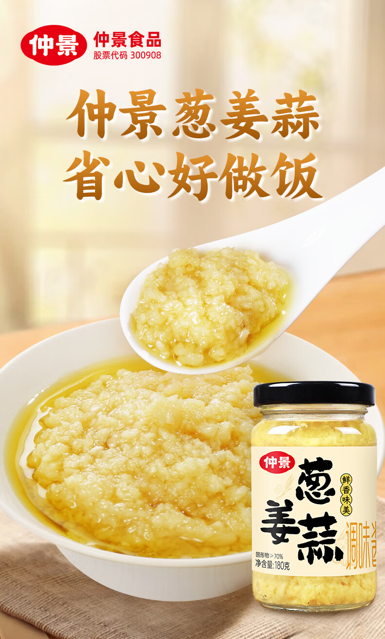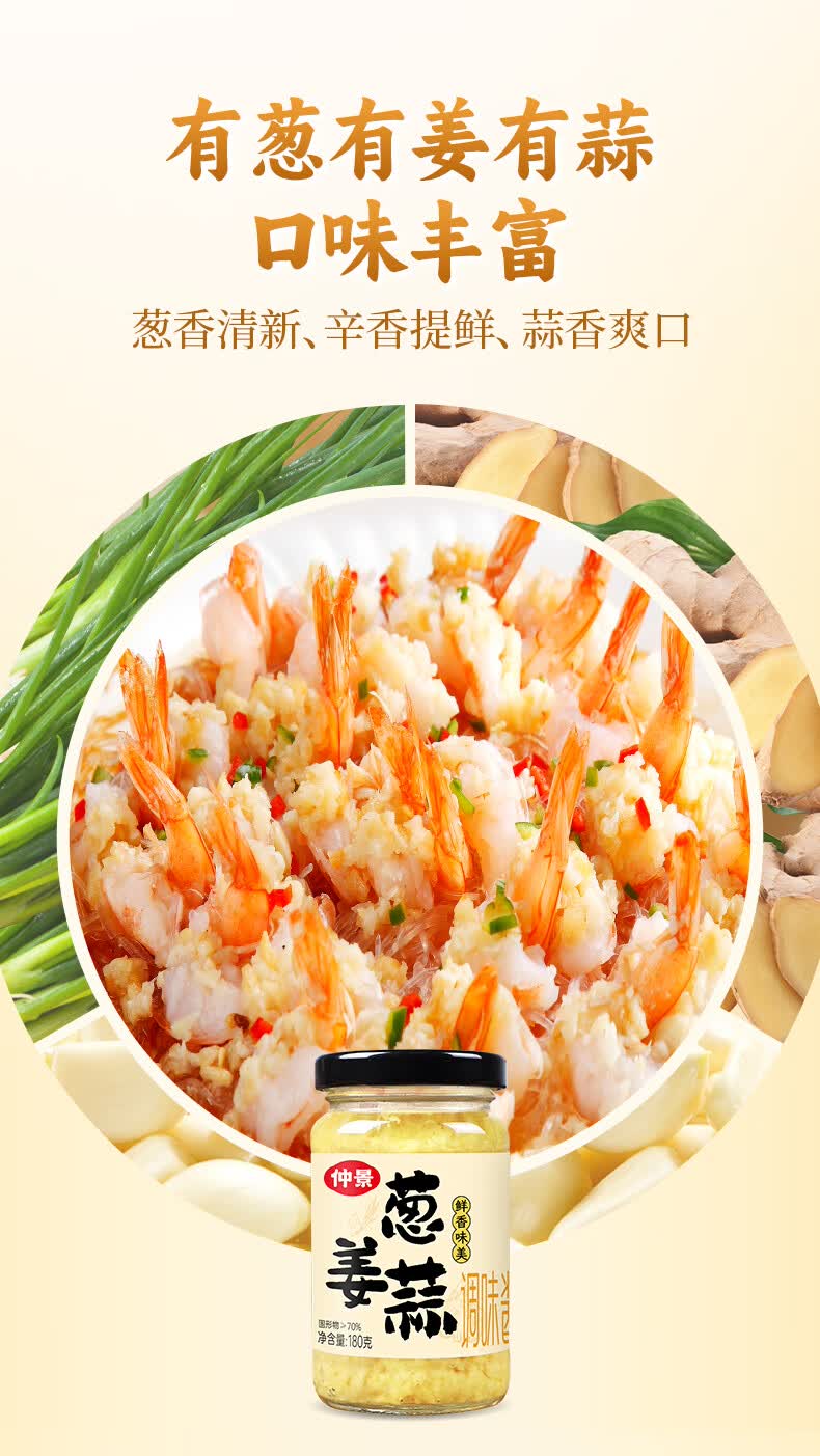 仲景 葱姜蒜调味酱180g 蒜蓉蒸海鲜小龙虾火锅烧烤蘸料炒菜调味酱料