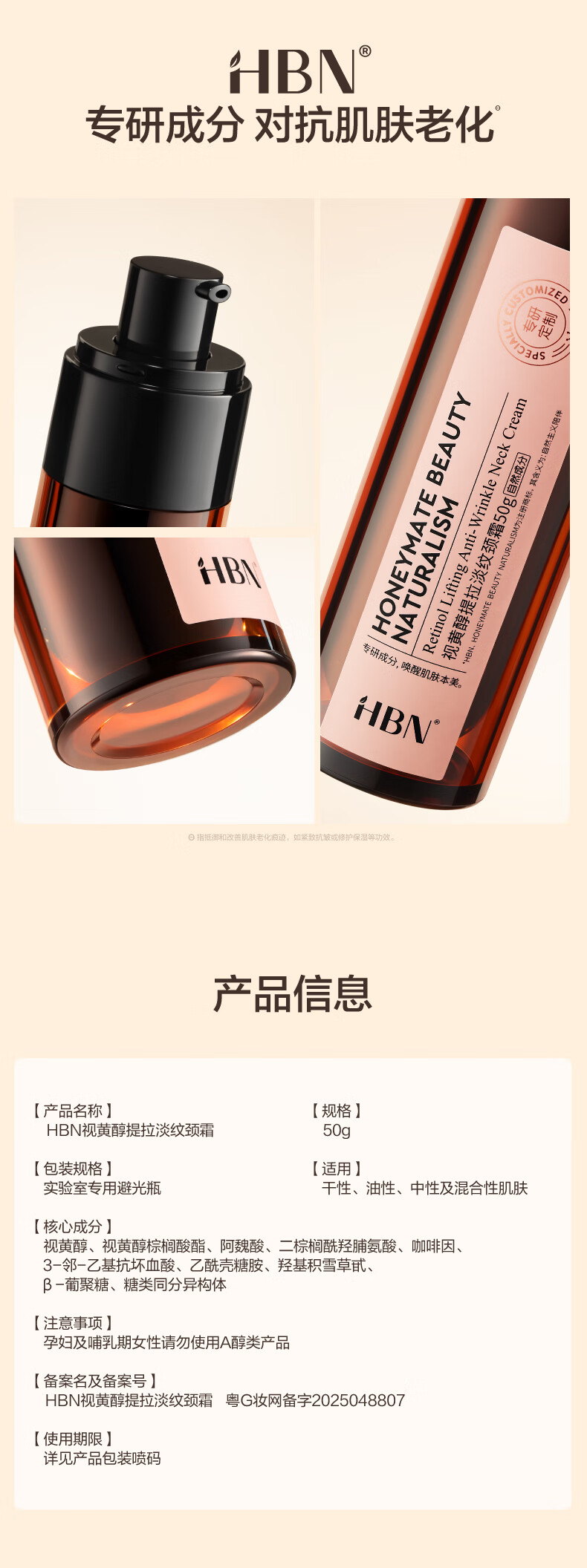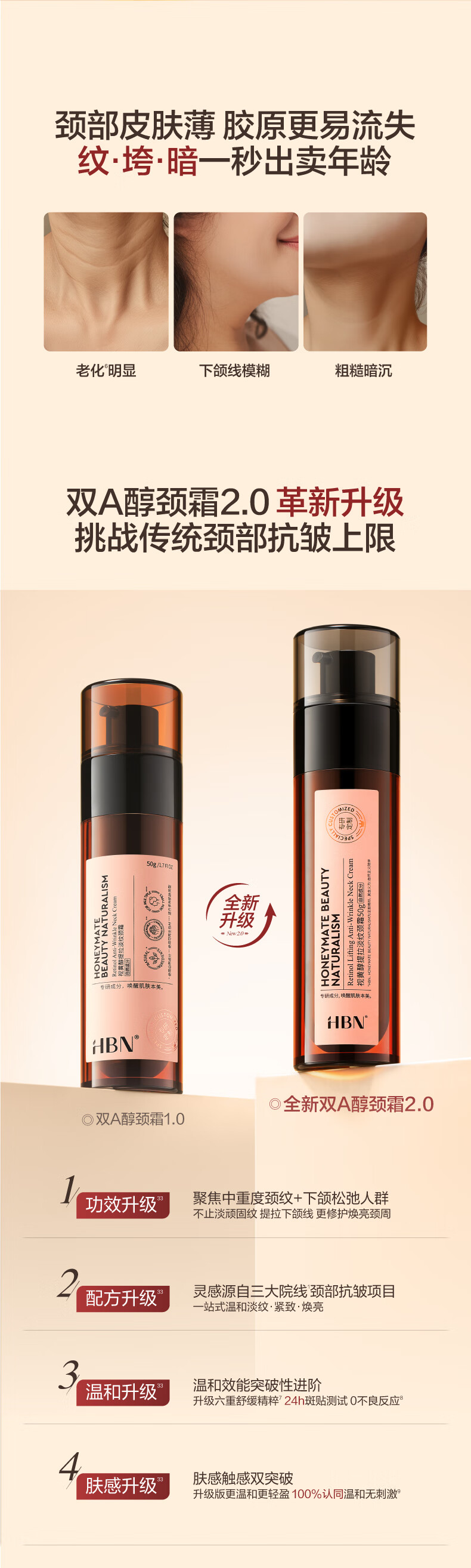 HBN颈霜视黄醇维A醇颈纹霜淡纹补水提拉紧致母亲节礼物送妈妈