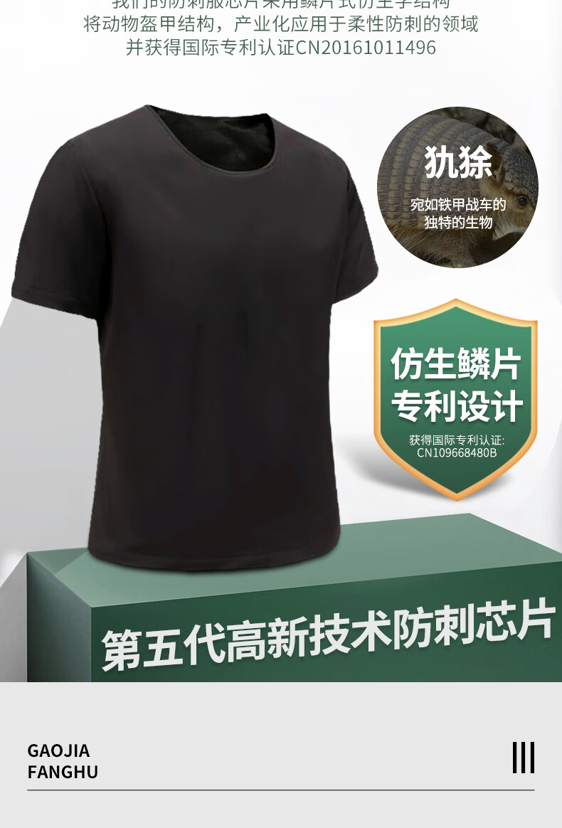 高甲防护防刺服背心 防刺马甲软质锁子甲隐形防刺衣防刀割短袖防身黑科技 身高185-190体重90-95【2XL码】