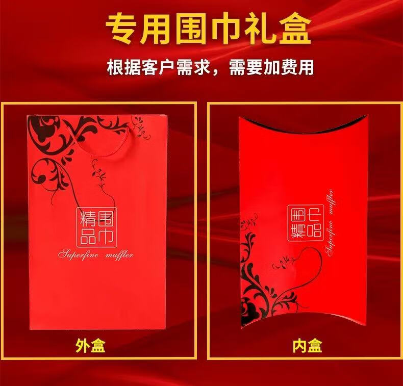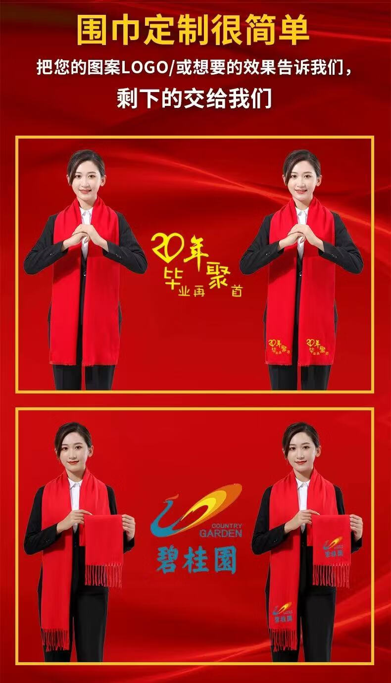 奥义驰马年红围巾定制logo印字刺绣中国红大红色订图案聚会活动公司年会 马年吉祥+礼盒 高端仿羊绒宽版-200*70cm