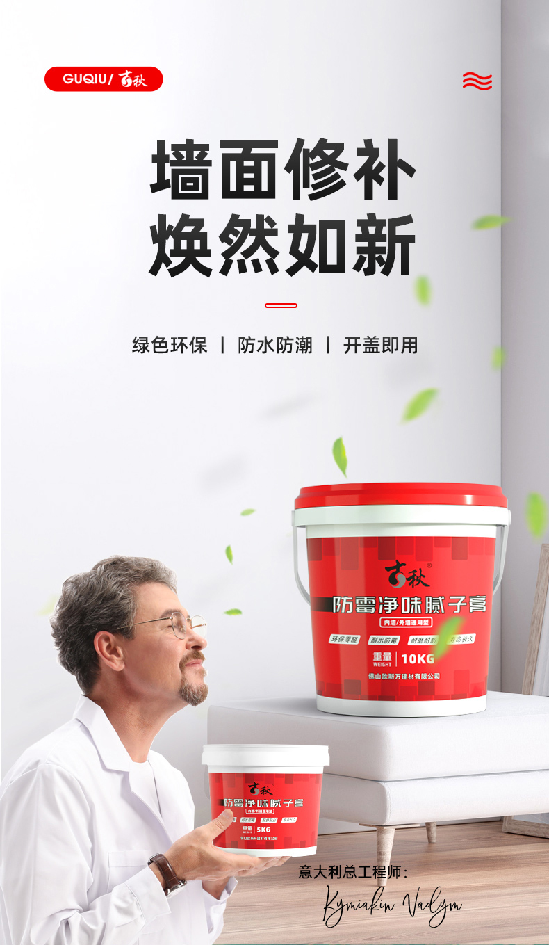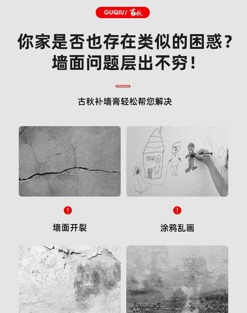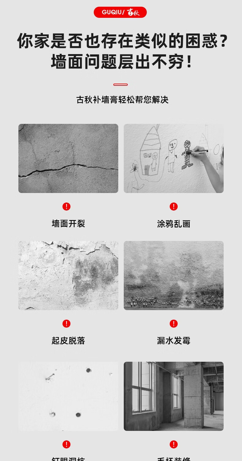 GUQIU免刷漆腻子膏防霉抗菌净味墙壁修复补墙漆修补膏家用自刷白乳胶漆 新升级【20倍防霉抗裂】(约25平方)送固沙宝 25kg*1件
