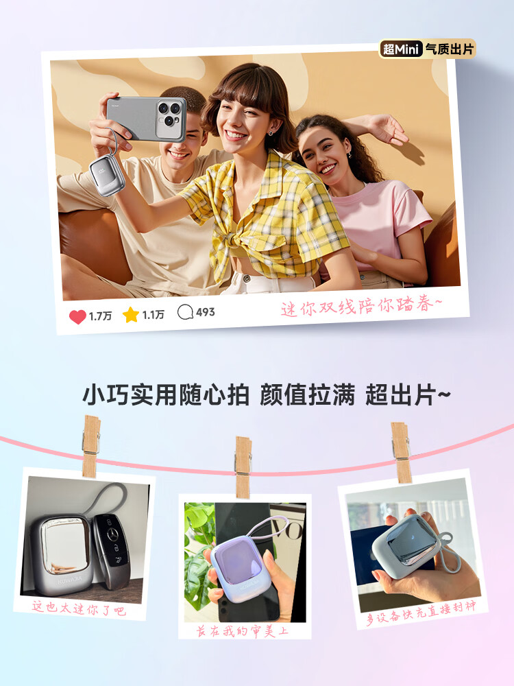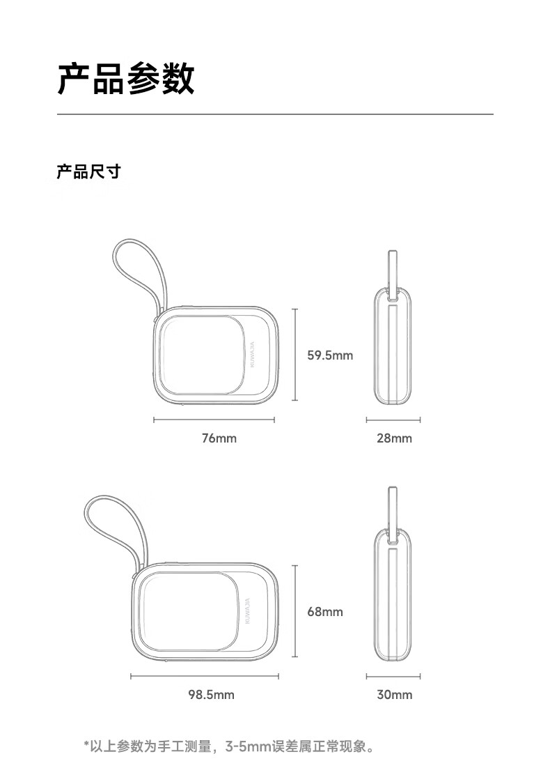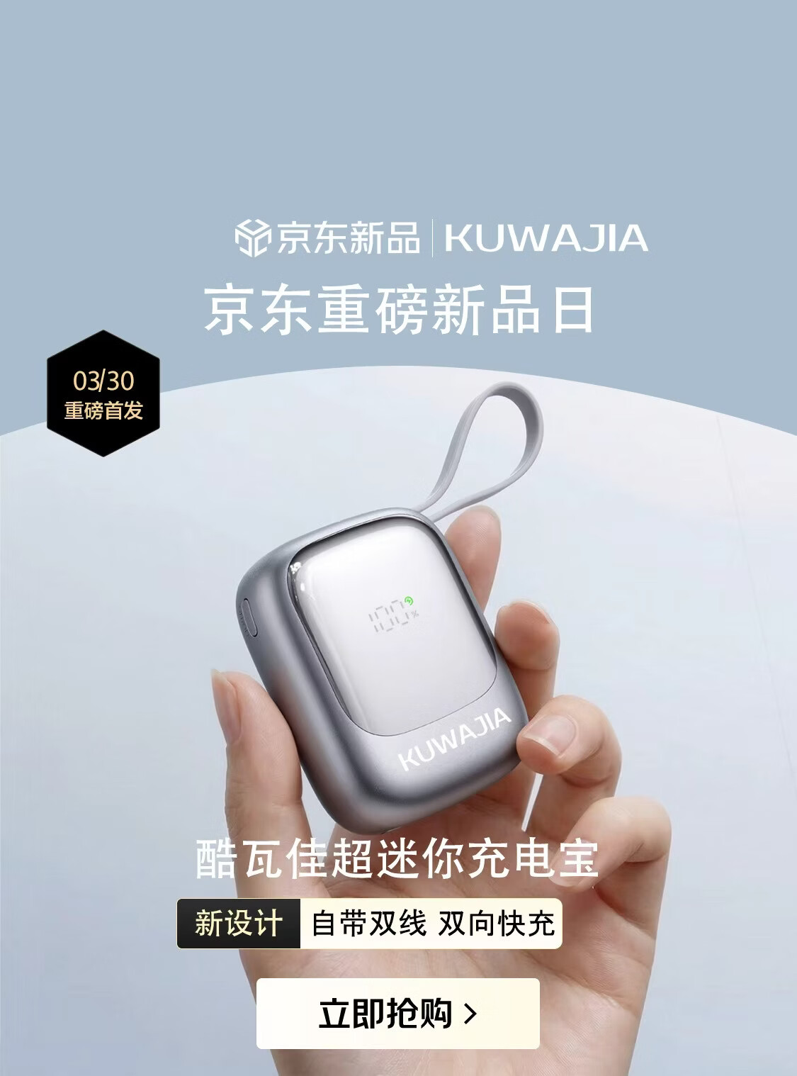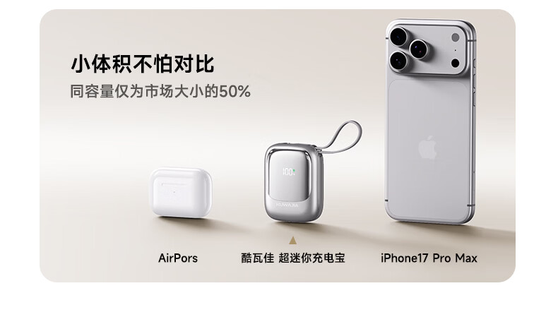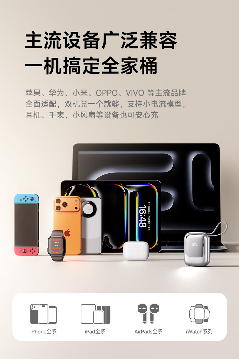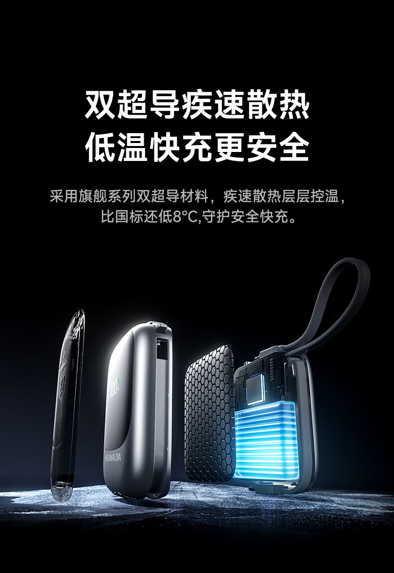 酷瓦佳【2026新升级】充电宝20000毫安3c认证自带线可上飞机快充小巧便携适配Air苹果17华为小米 【紫丨1w毫安】苹果+type-C双线