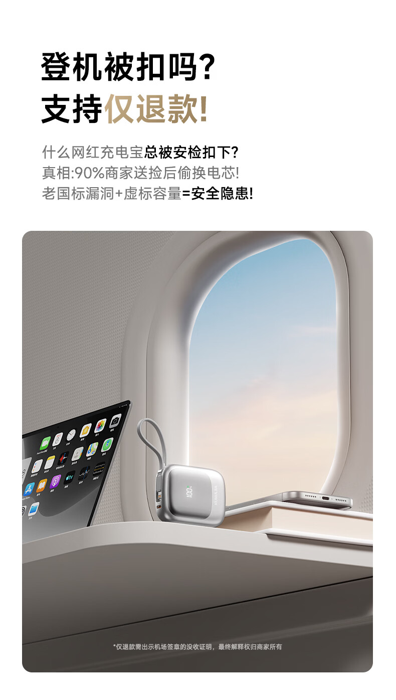 VENIDER【国家3C安全认证】【可上飞机高铁】磁吸充电宝20000mAh超级快充自带线移动电源适用苹果小米 顶配版【2万毫安时+磁吸+AC插头+自带线】米橙色
