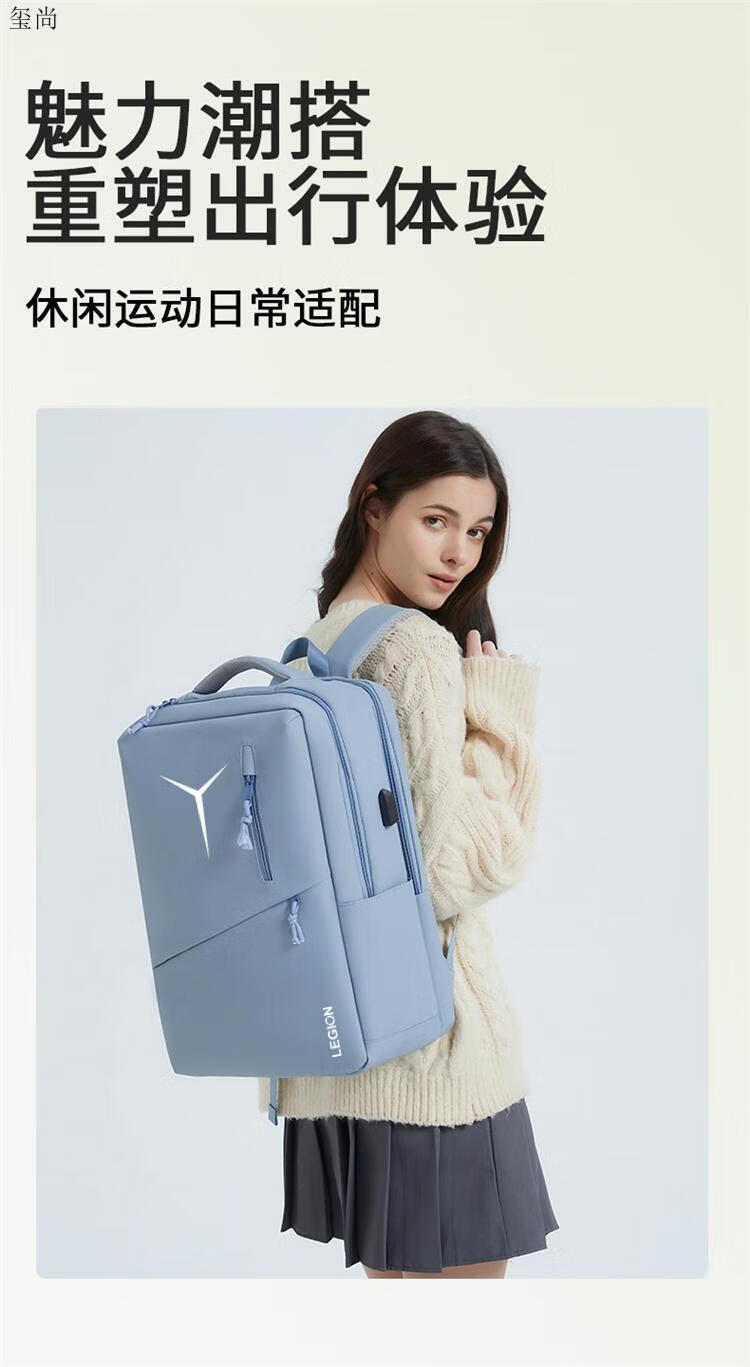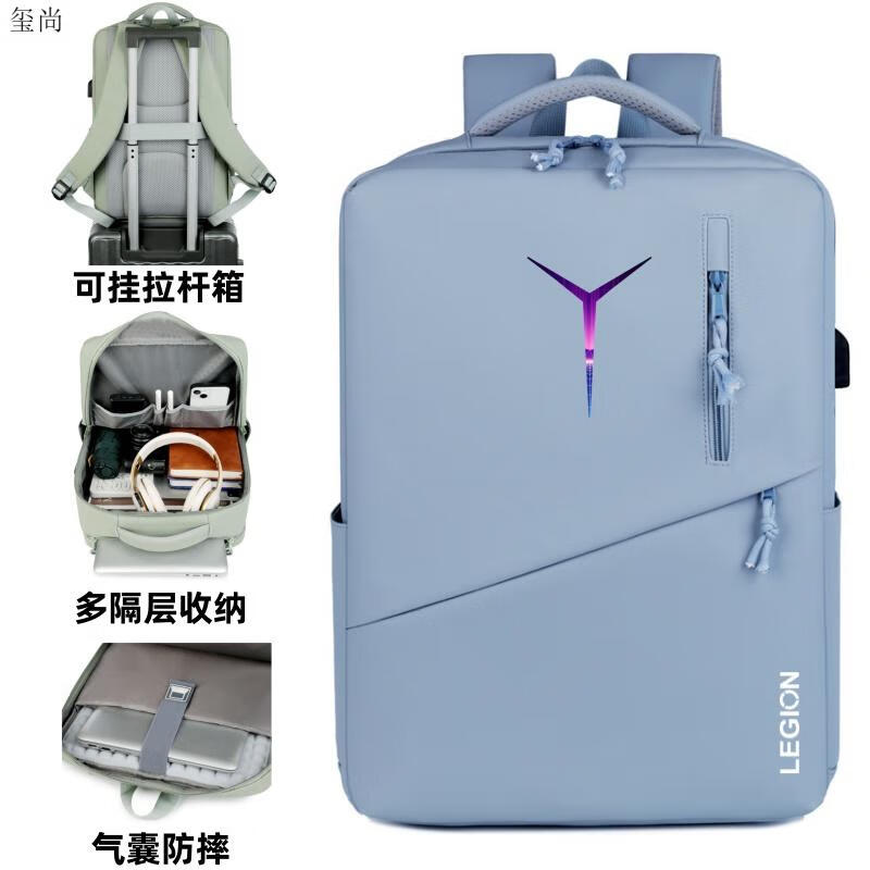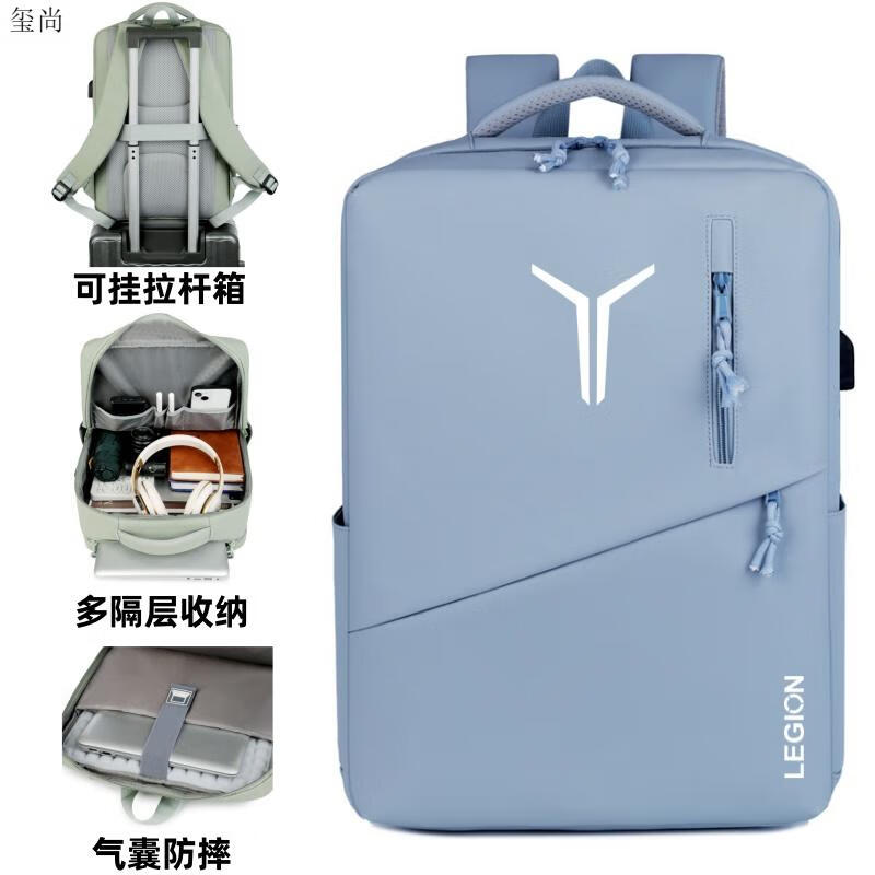 玺尚适用联想拯救者Y7000p笔记本电脑包16英寸y9000p/R9000p双肩背包 全新款蓝色 炫彩Y logo 【气囊防 16英寸