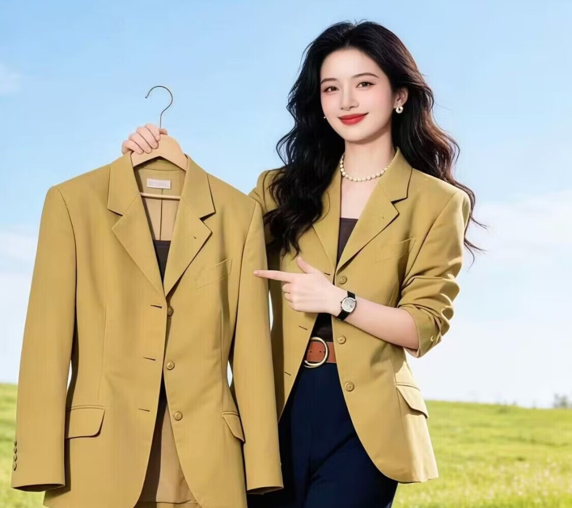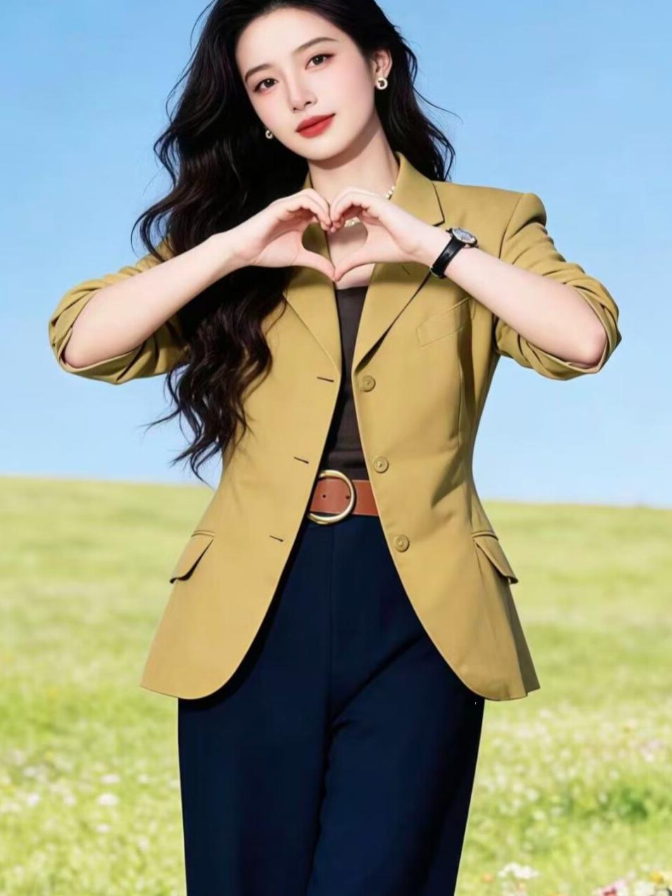 西装西服外套女春秋季新款网红爆款休闲小西服时尚高级感通勤百搭 黄色 S 90-105