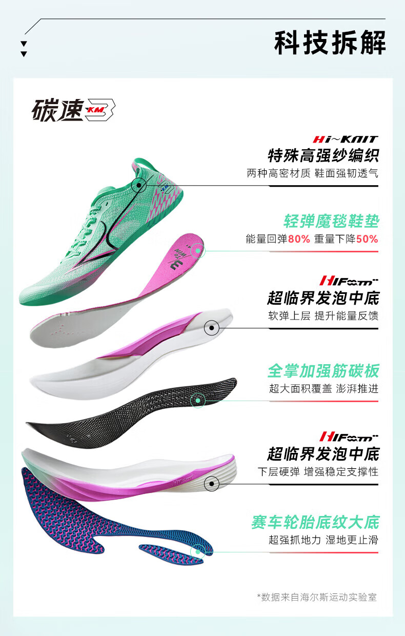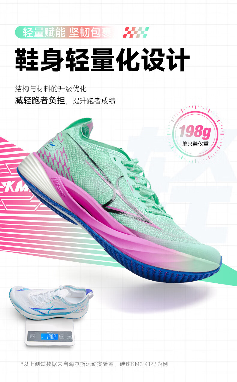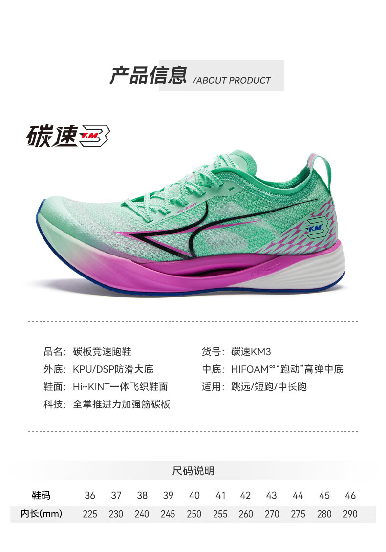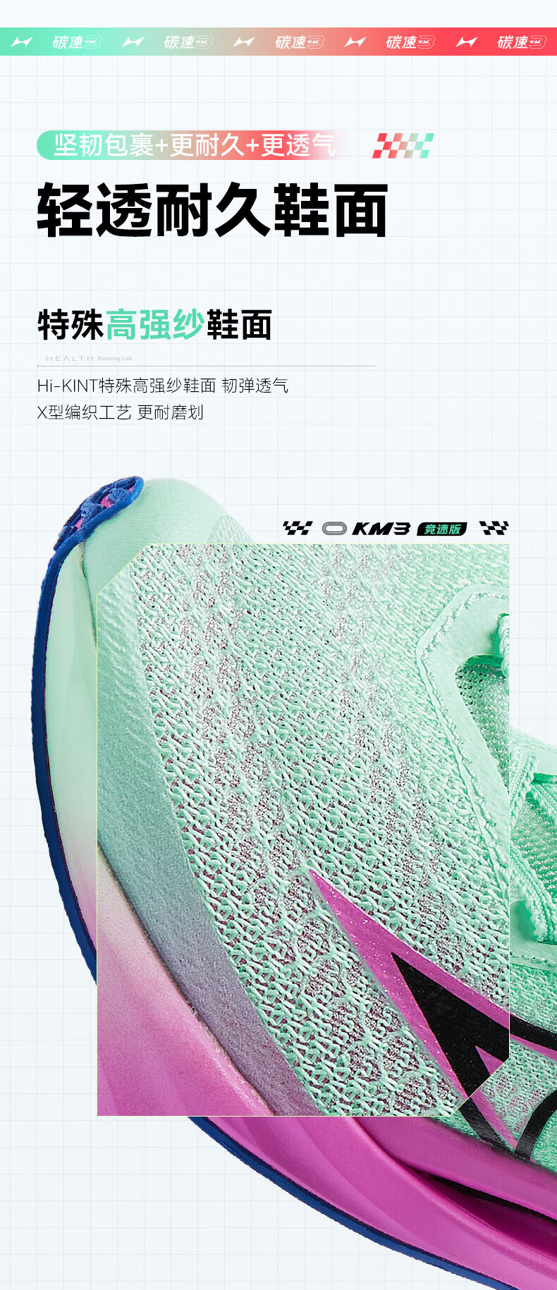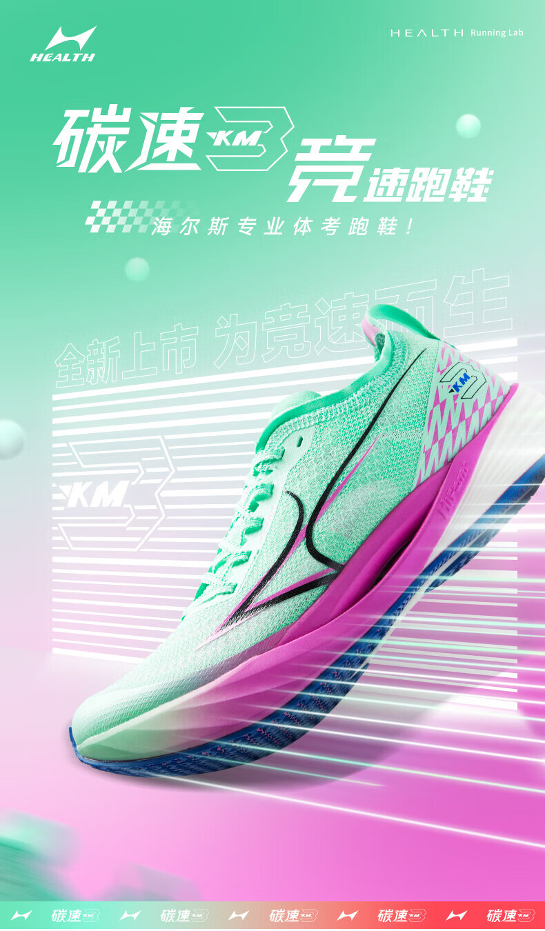海尔斯(HEALTH)KM3全掌碳板跑鞋学生中高考体育跳远田径训练专用竞速跑步运动鞋 逐梦水青 KM3 建议拍大一码 43