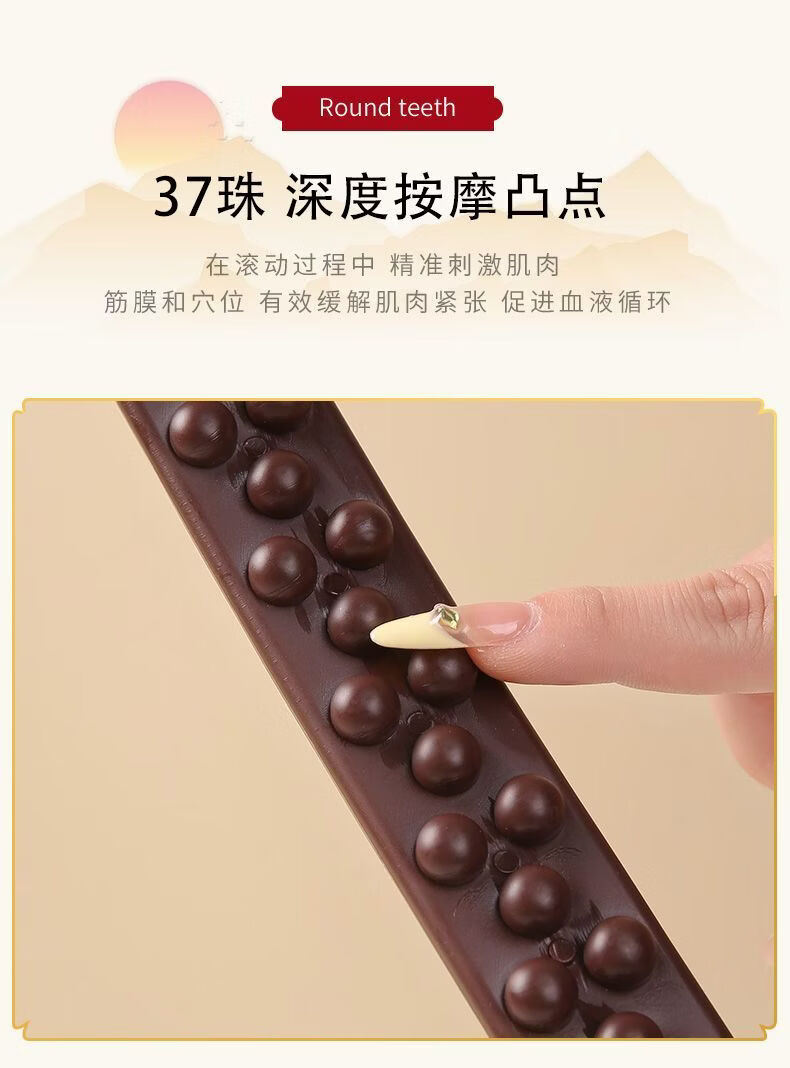31珠擀筋棒养生刮痧棒按摩棍经络疏通赶杆经棒美容院家用推背 31珠珠【三排】 加长款-指压按摩-【1个】
