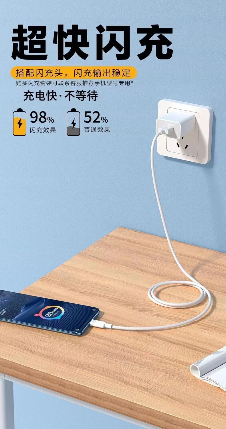 闪魔苹果数据线PD30W/20W快充线type-c to lightning接口iPhone14/13/12/系列ipad air2苹果充电线1.8m