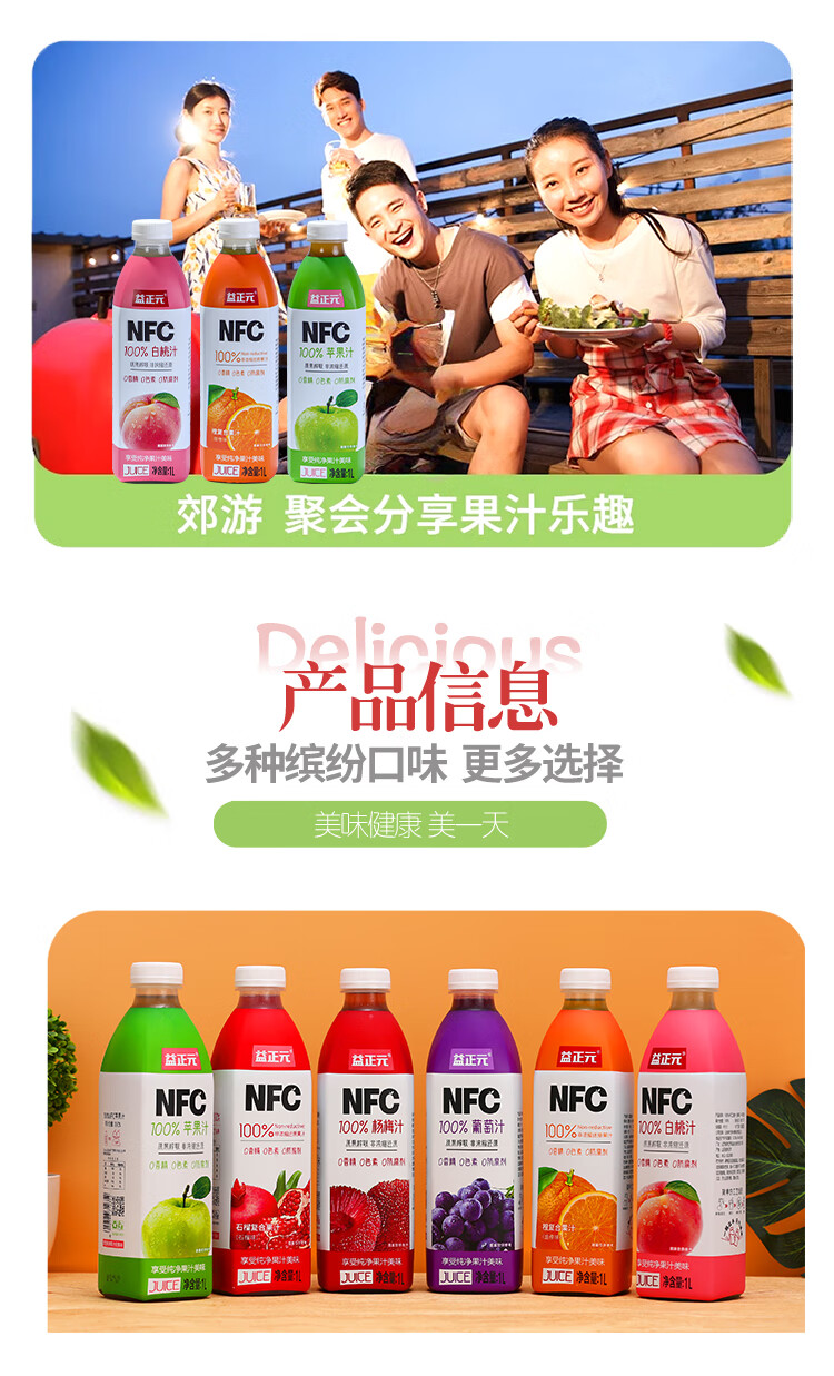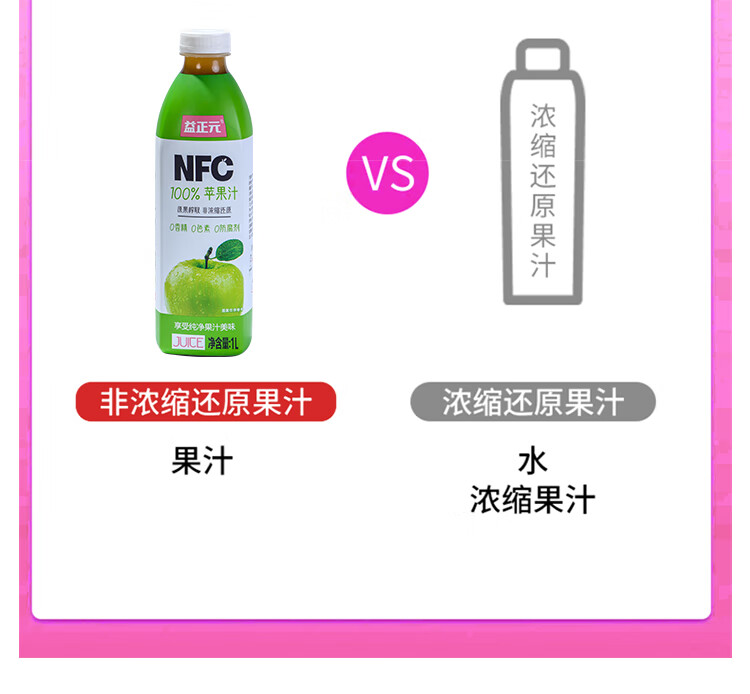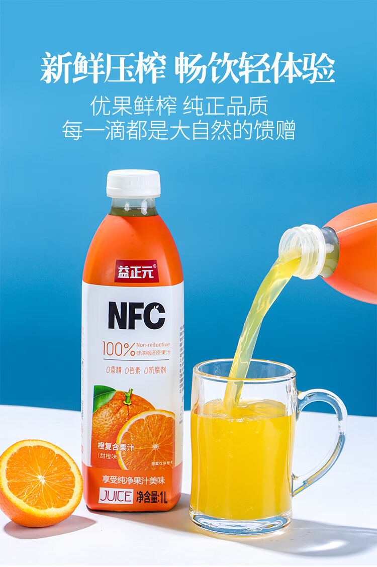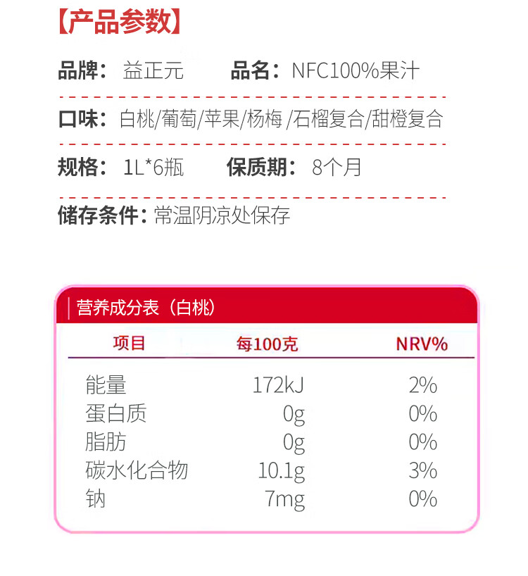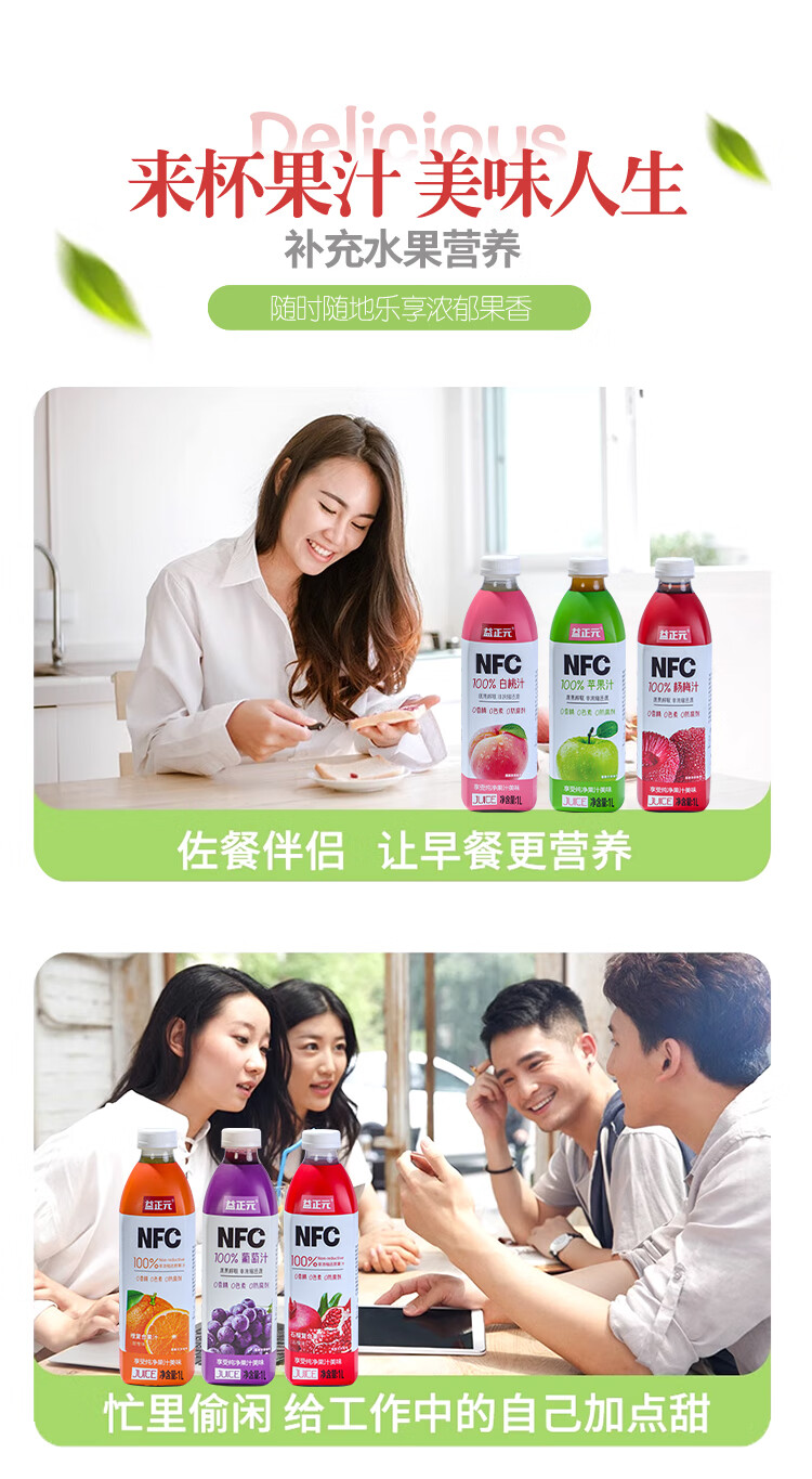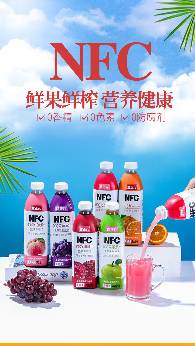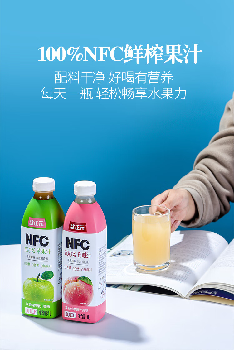 益正元100%NFC鲜榨混合果汁饮料无添加0添加杨梅石榴桃橙汁苹果汁 白桃+苹果+石榴1L*3瓶