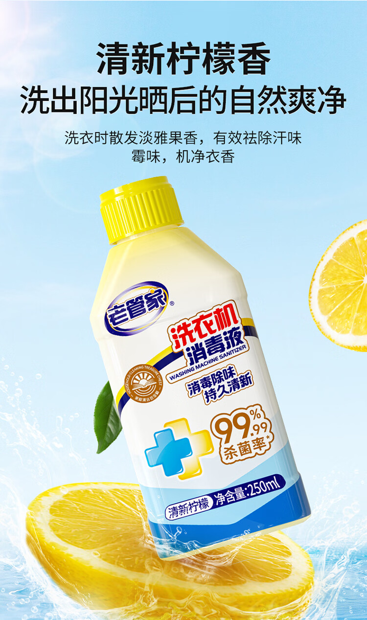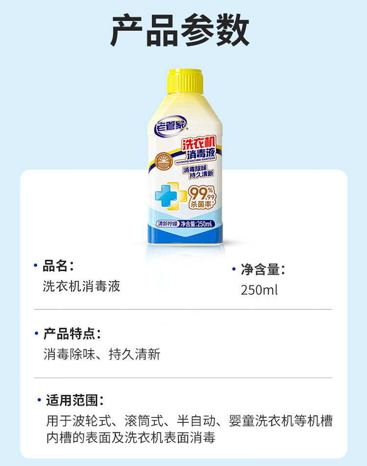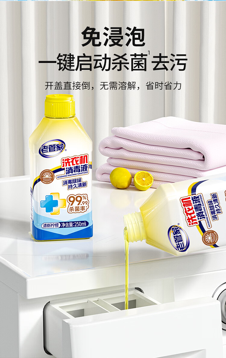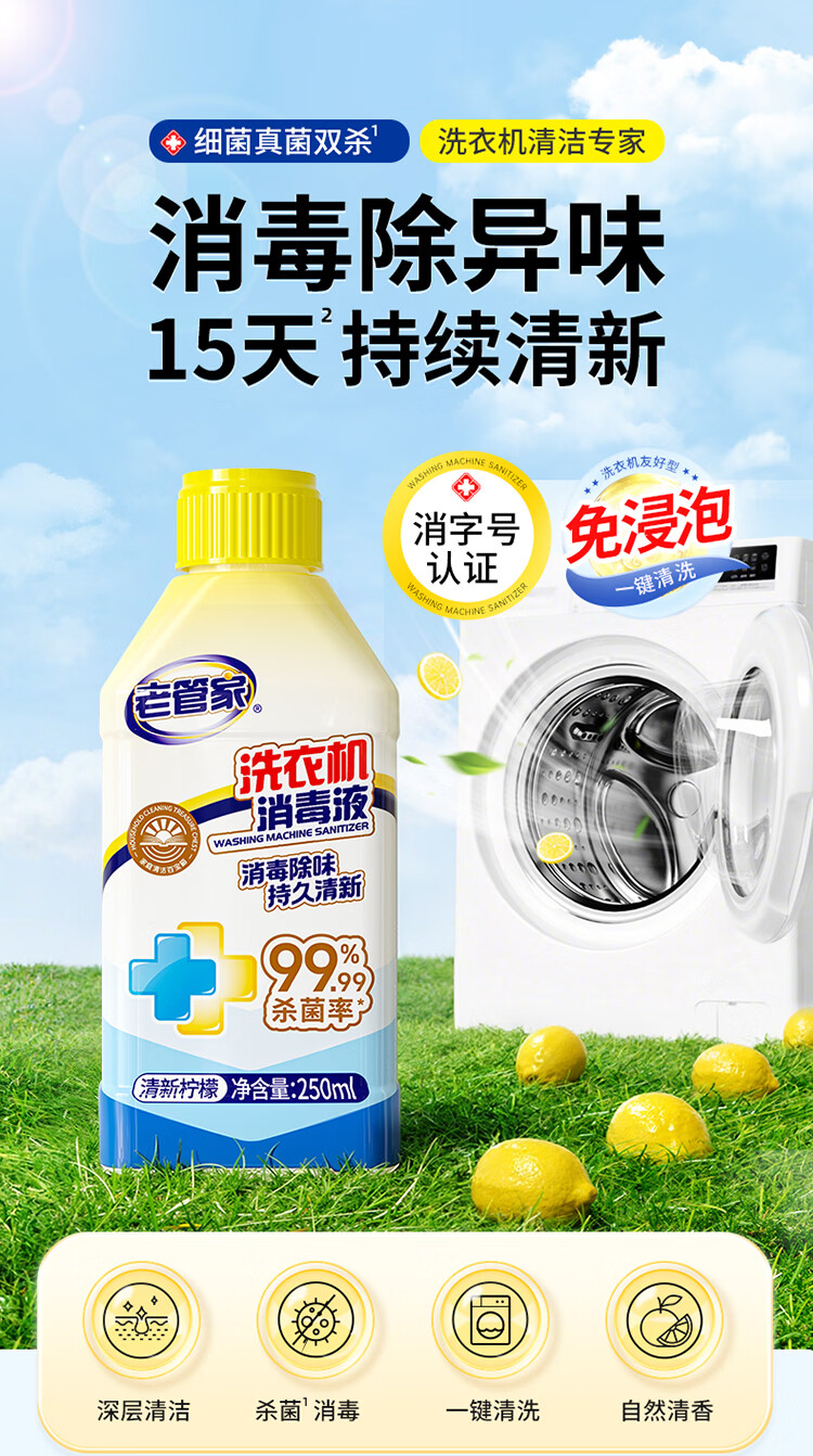 老管家洗衣机清洗剂消毒液 免浸泡强力清洁 强力除垢杀菌消毒除味250ml 2瓶装【多件划算*家庭装】