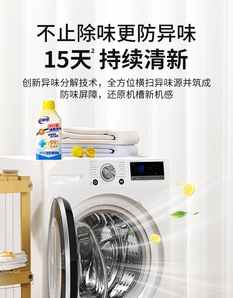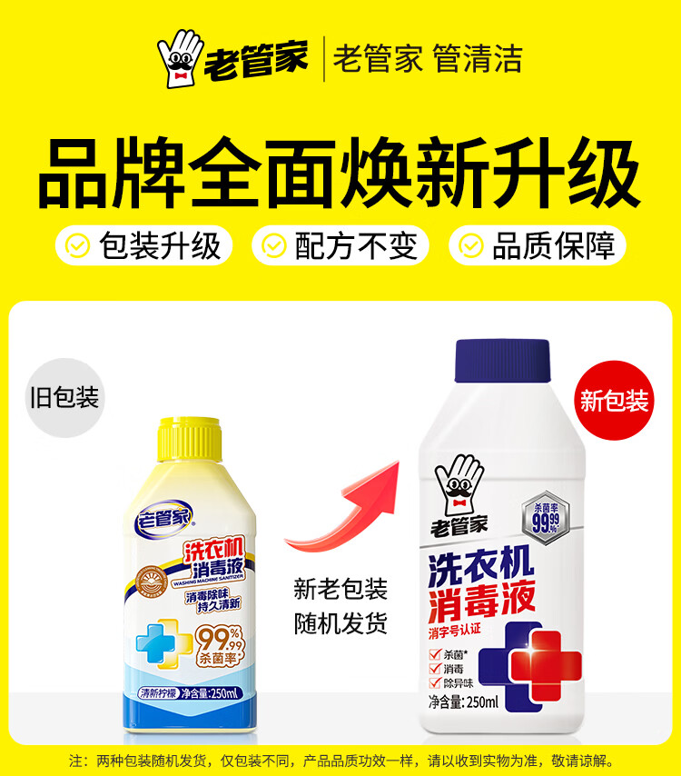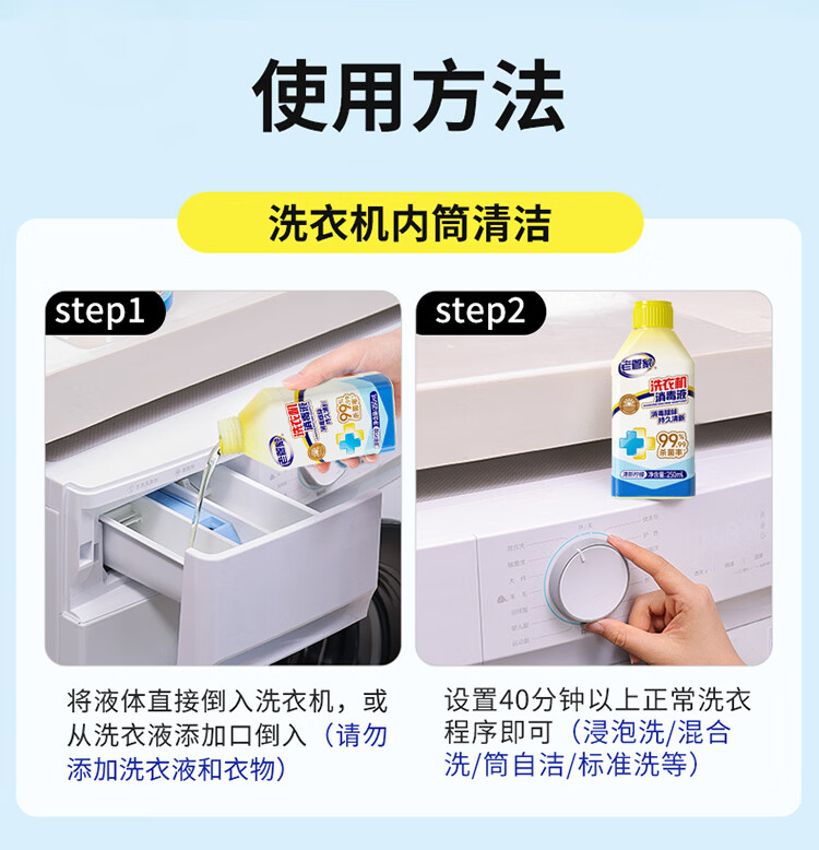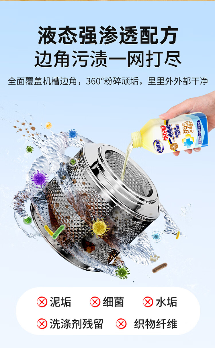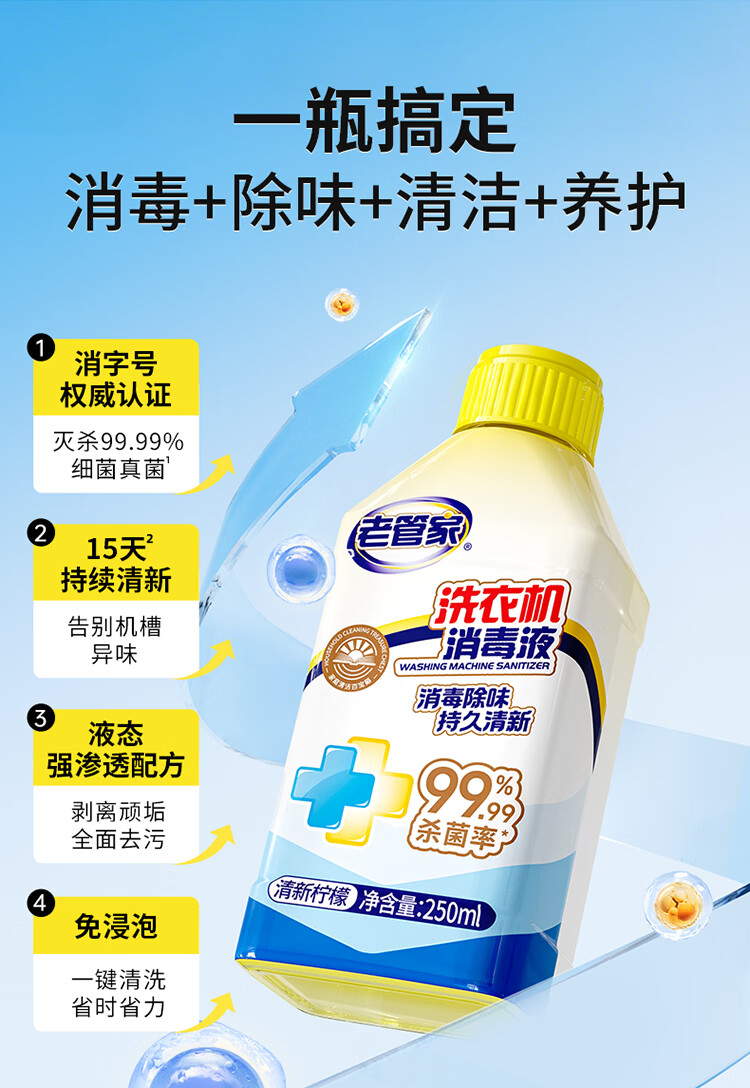 老管家洗衣机清洗剂消毒液 免浸泡强力清洁 强力除垢杀菌消毒除味250ml 2瓶装【多件划算*家庭装】