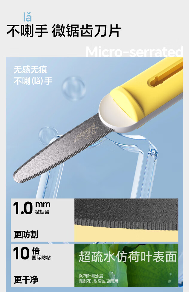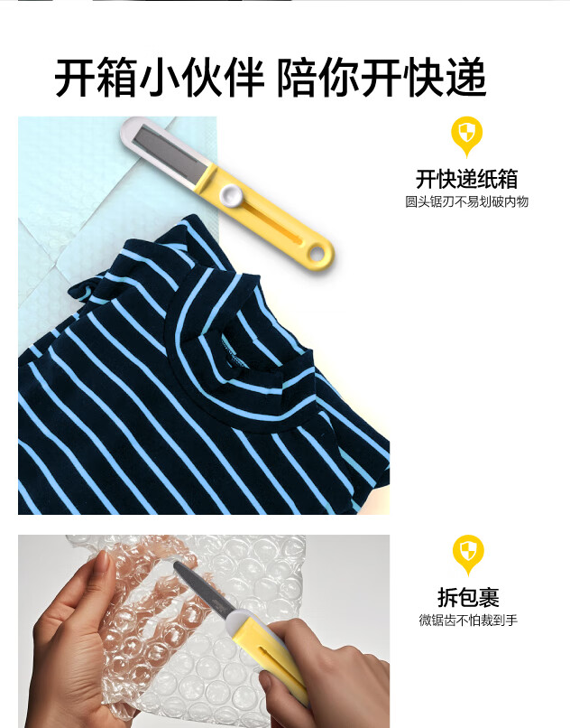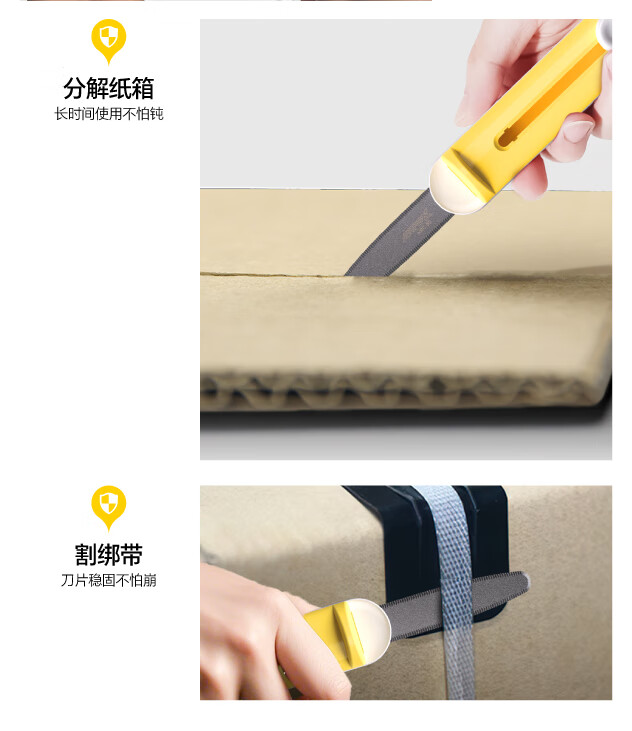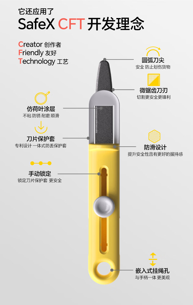 SAFEX美国SAFEX伸缩便携式快递刀简约不锈钢开箱刀安全耐用特氟龙美工刀自动锁定拆快递包裹专用刀 「超值套装」T260-柠黄-2把