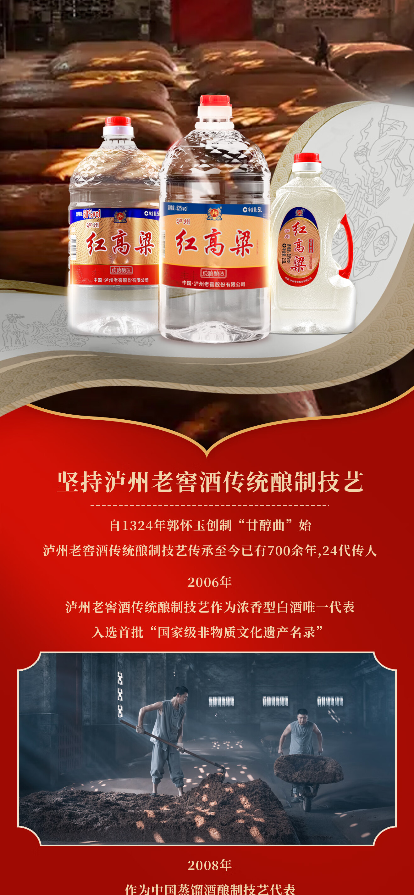 泸州红高粱酒 纯粮食白酒 52度浓香型白酒桶装酒自饮可泡酒 52度 5L*1桶