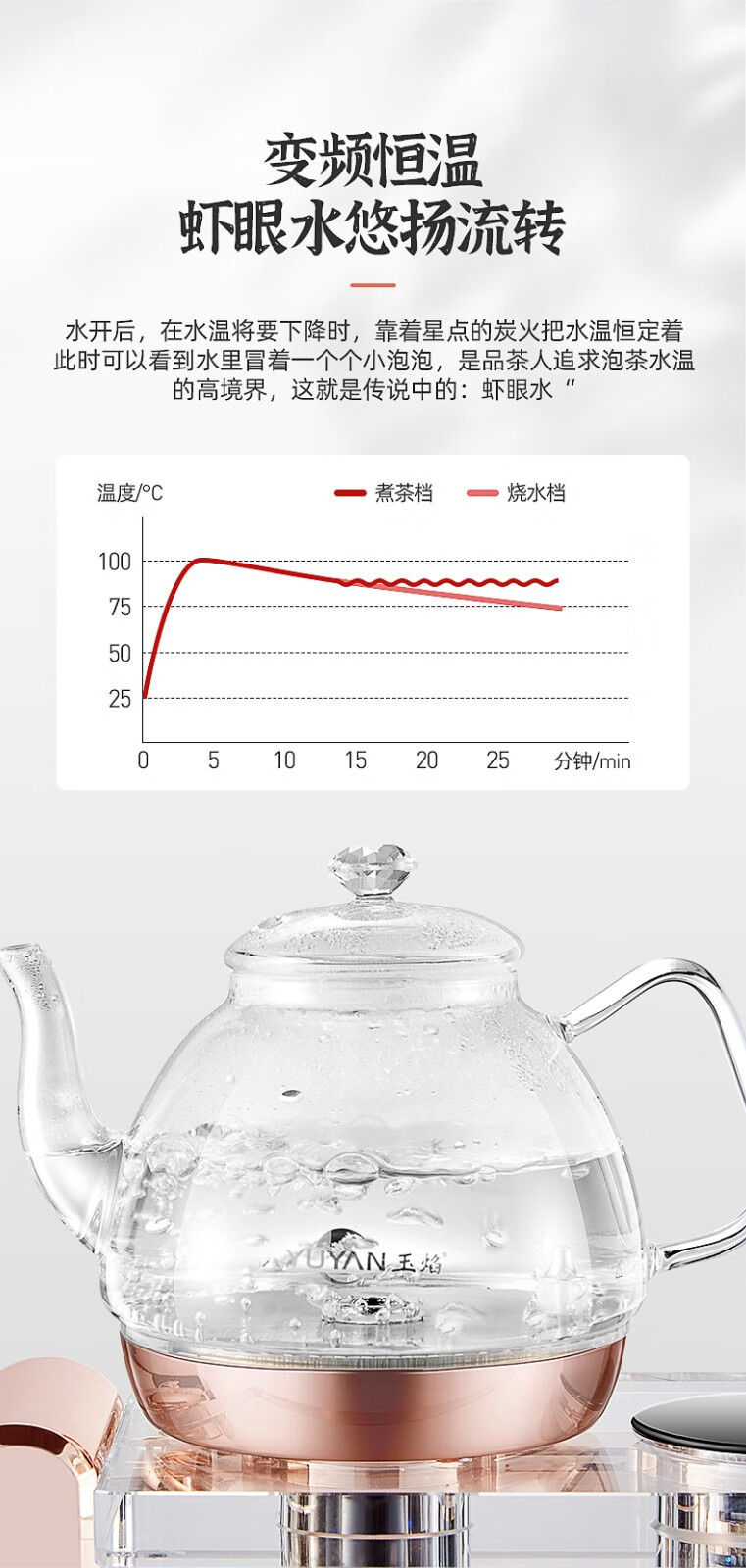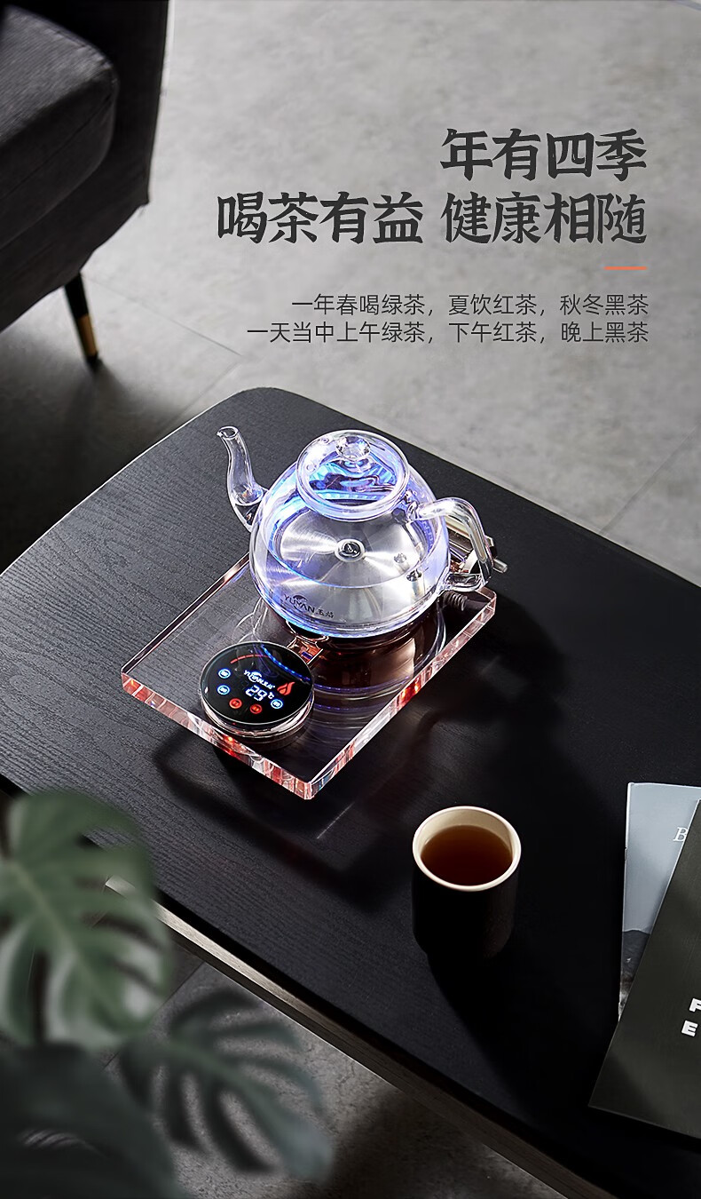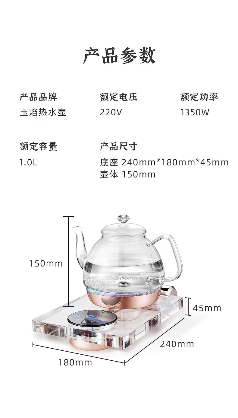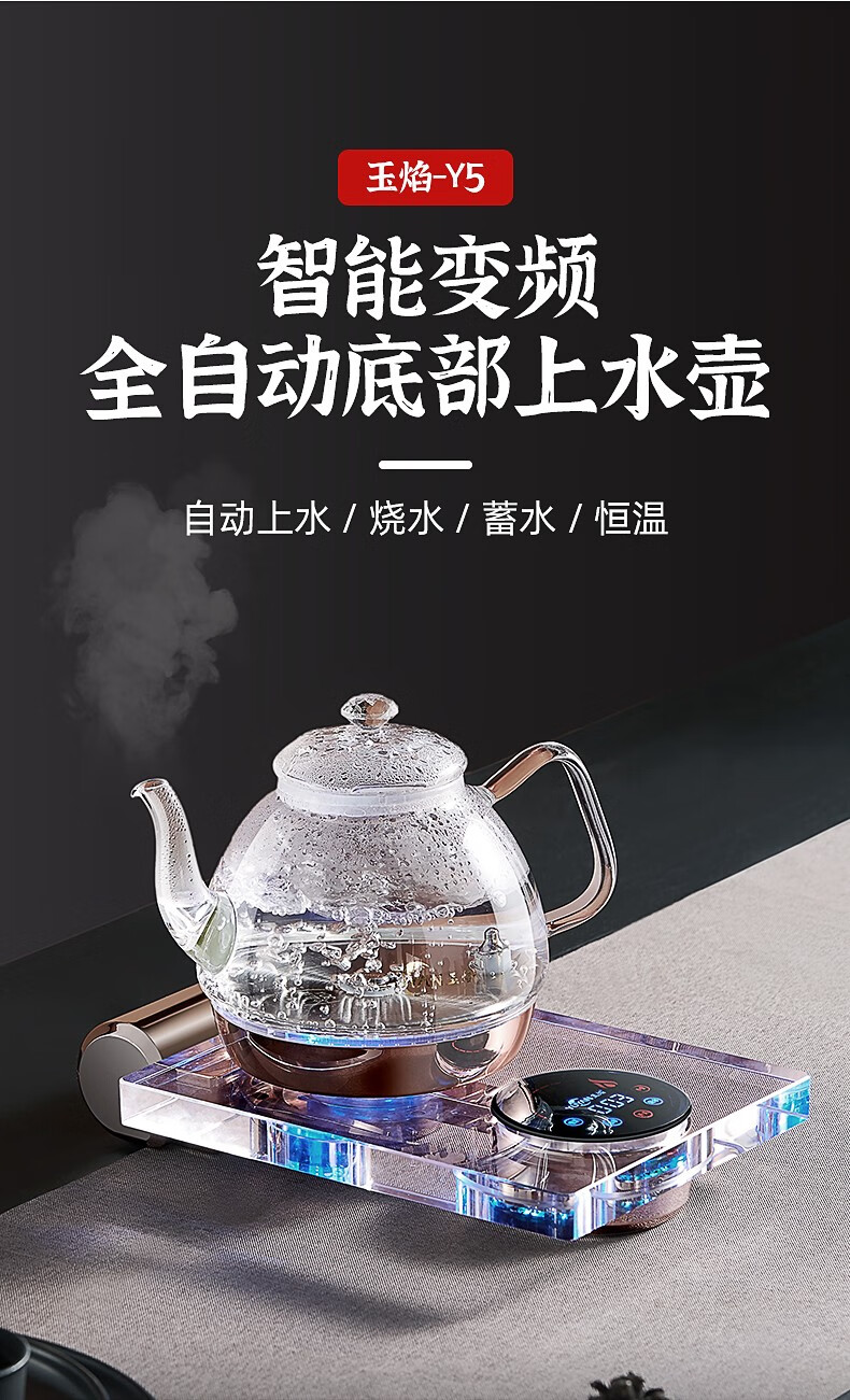 玉焰Y5全自动上水电热水壶底部抽水煮茶壶水晶玻璃智能家用恒温 1L Y5 桶装水款