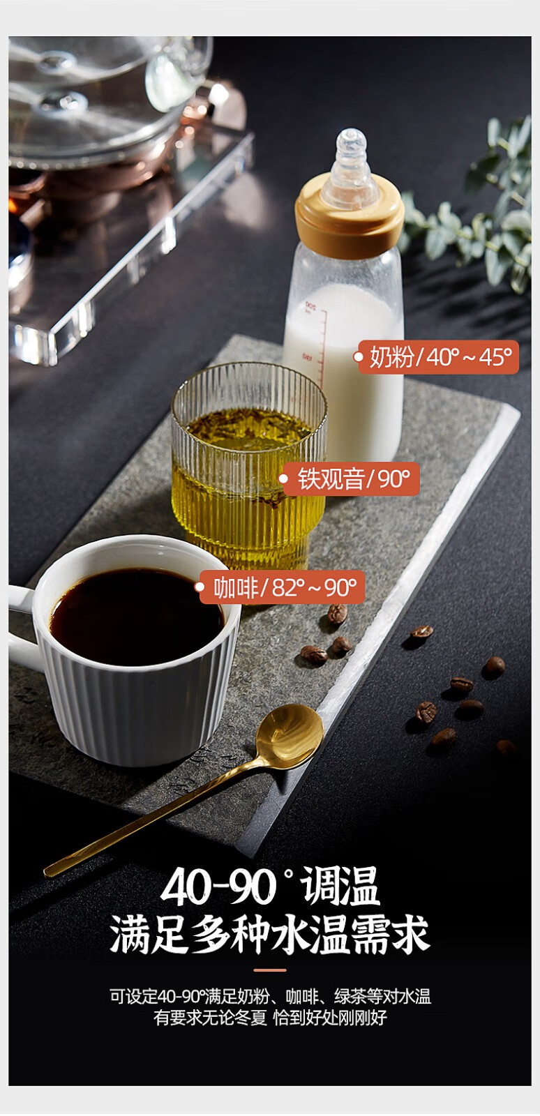 SPOUNR正品苏泊电热水壶2025新款家用烧水壶保温一体大容量快烧壶自动断电智能不锈钢开水壶 3L 豪配金色+【304双层加厚+智能保温+1米线】