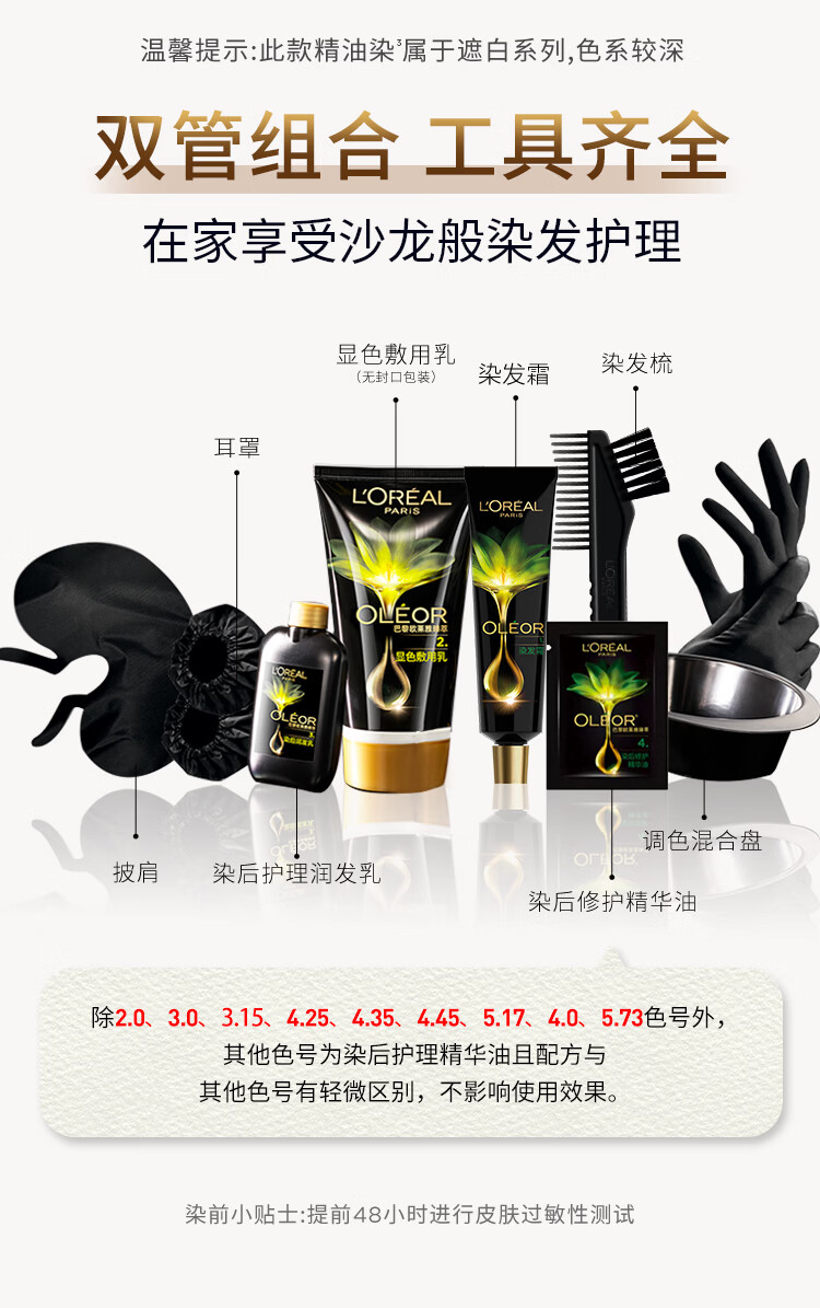 欧莱雅臻萃精油染染发剂 男女遮盖白发 自己在家染发膏4.45桃木褐棕