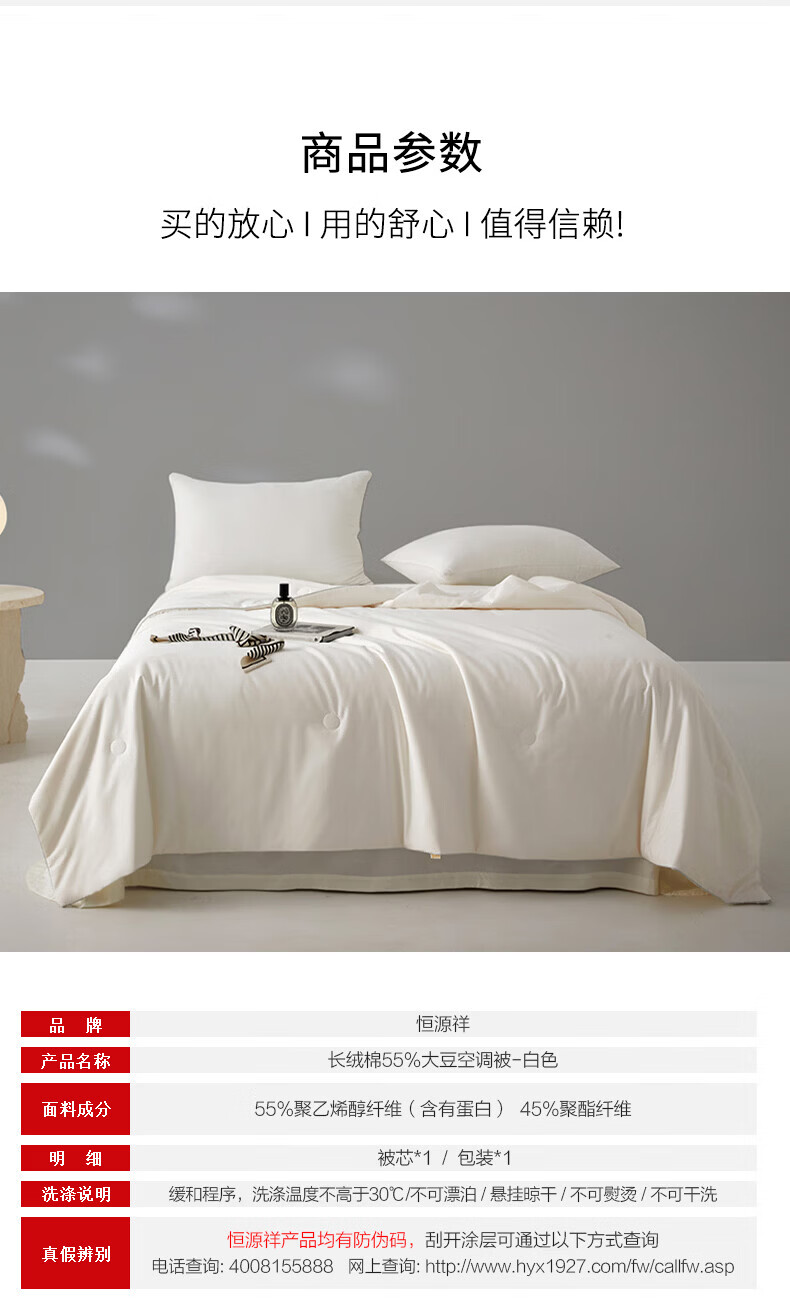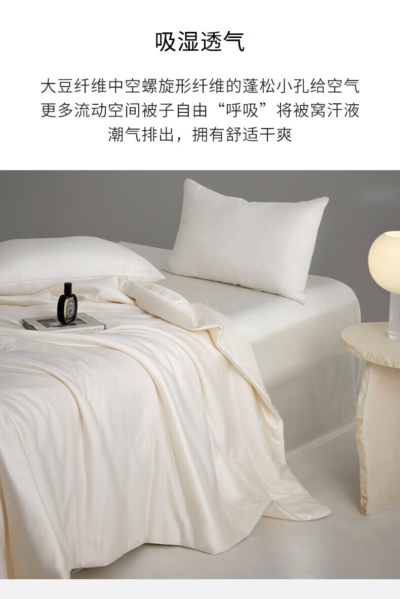 恒源祥被子被芯A类大豆被空调被纯色学生宿舍卧室居家单双人亲肤夏凉被 白色 200*230cm