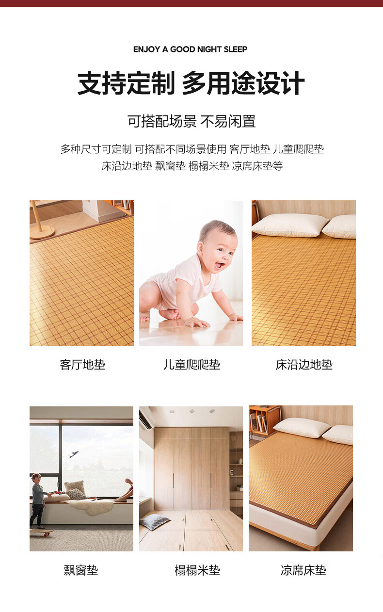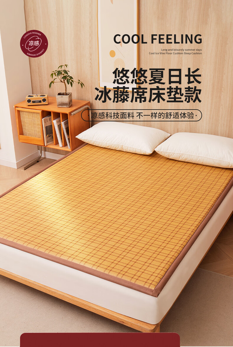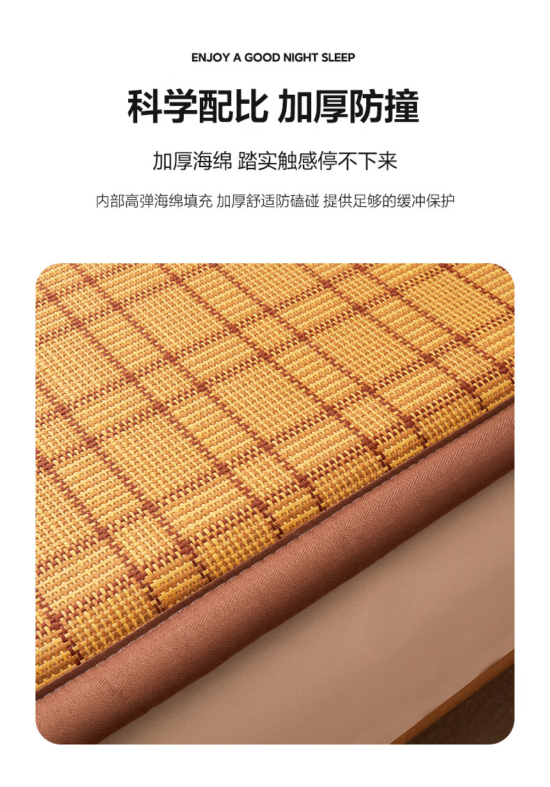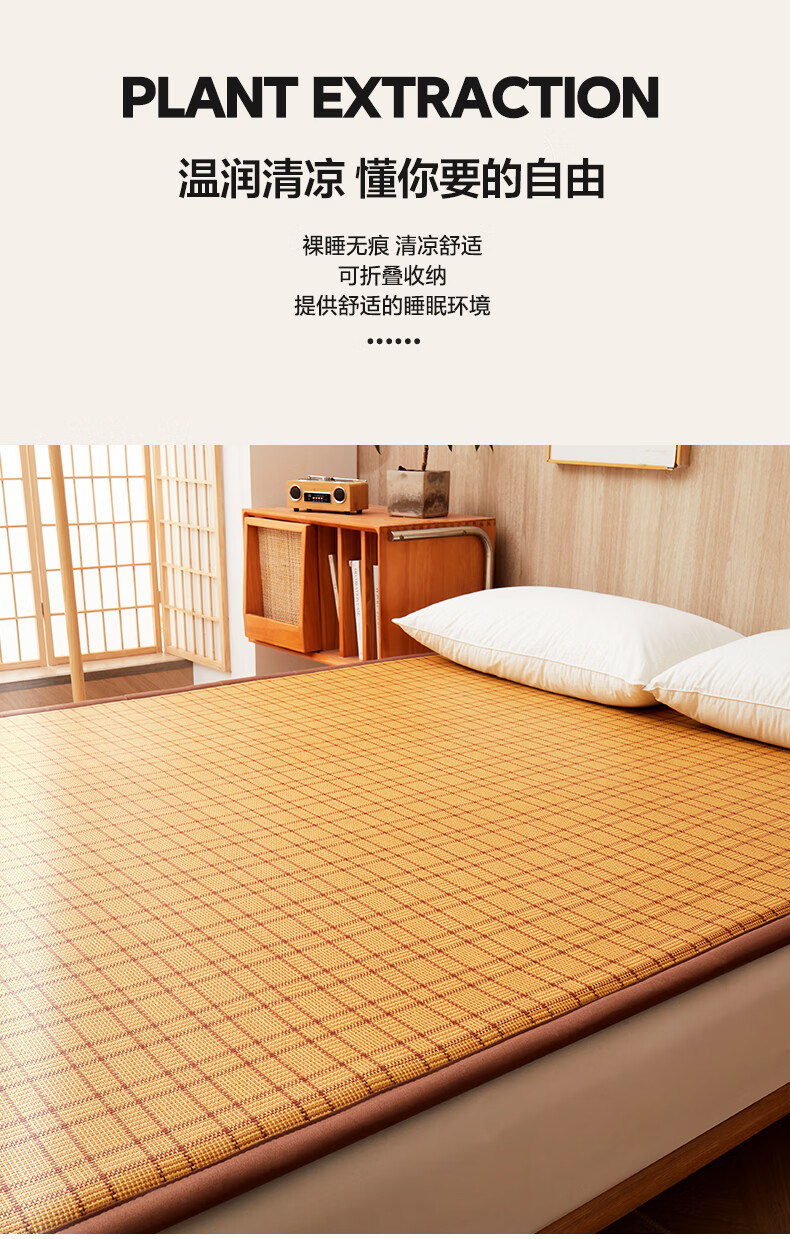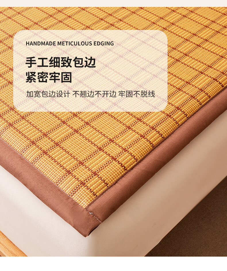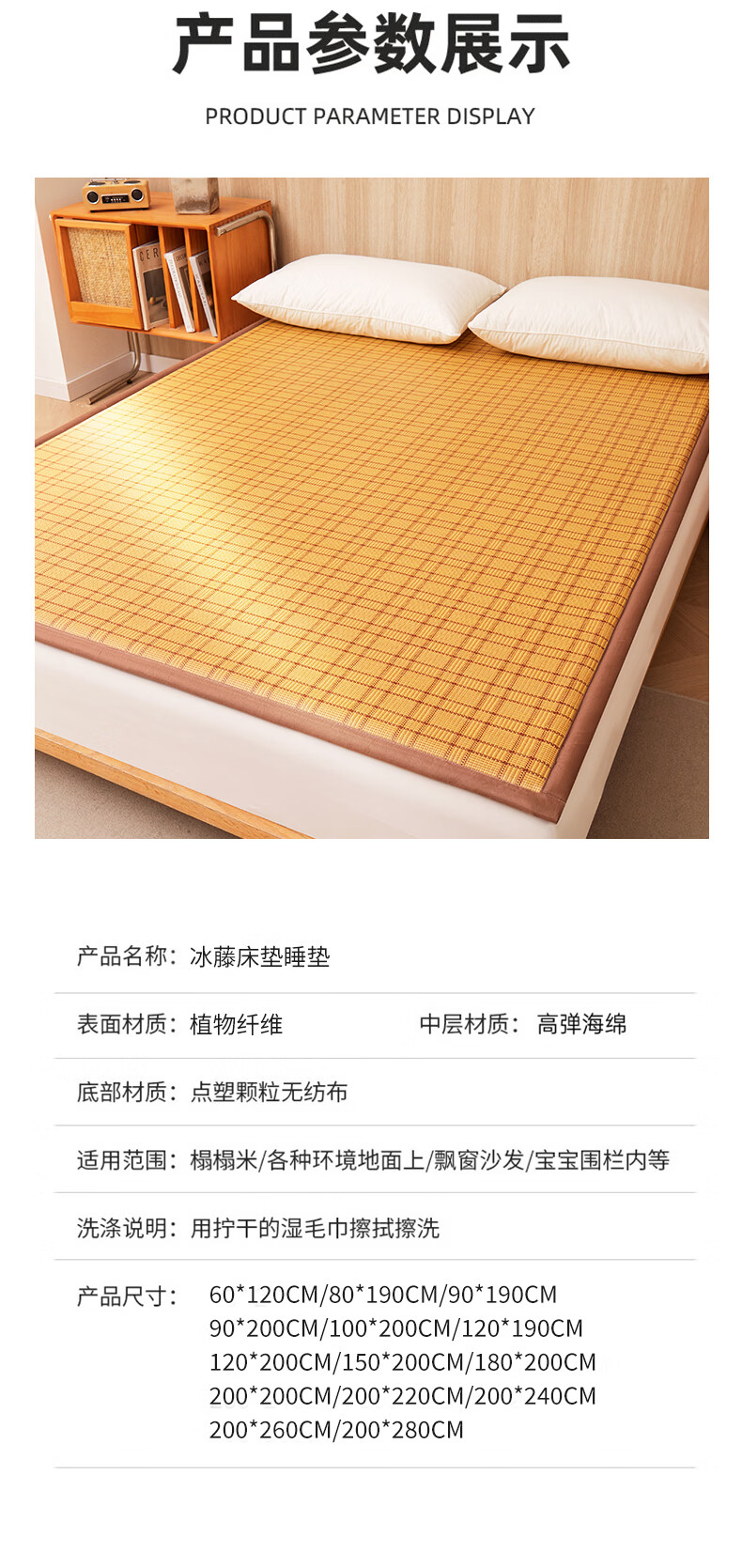 猫人(MiiOW)A类冰藤凉席床垫遮盖物打地铺睡垫1.5x2米榻榻米垫子地垫夏季铺底 罗马格【A类冰藤面料加厚加密】 80x190cm【高密编织无毛刺】