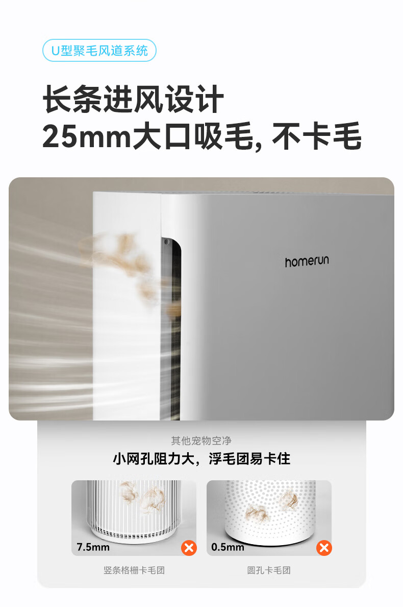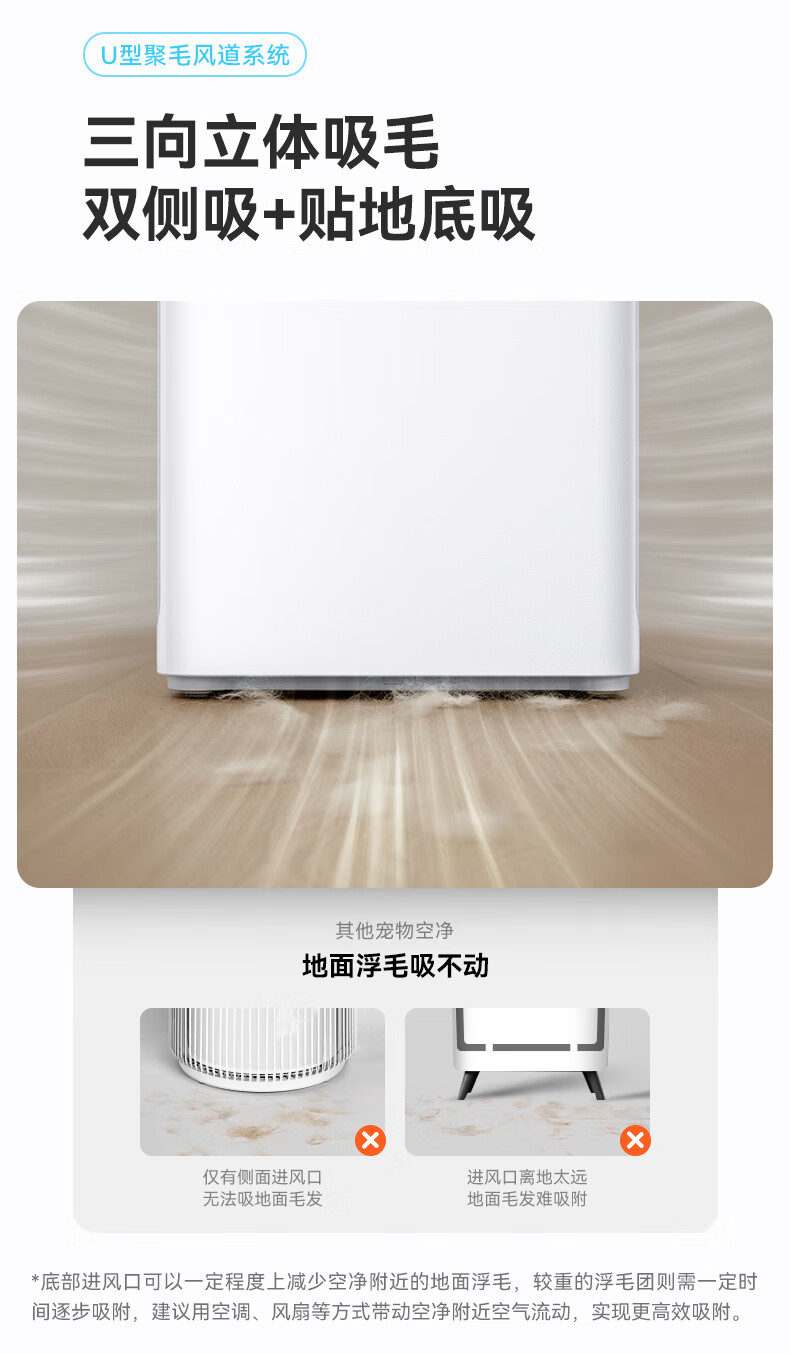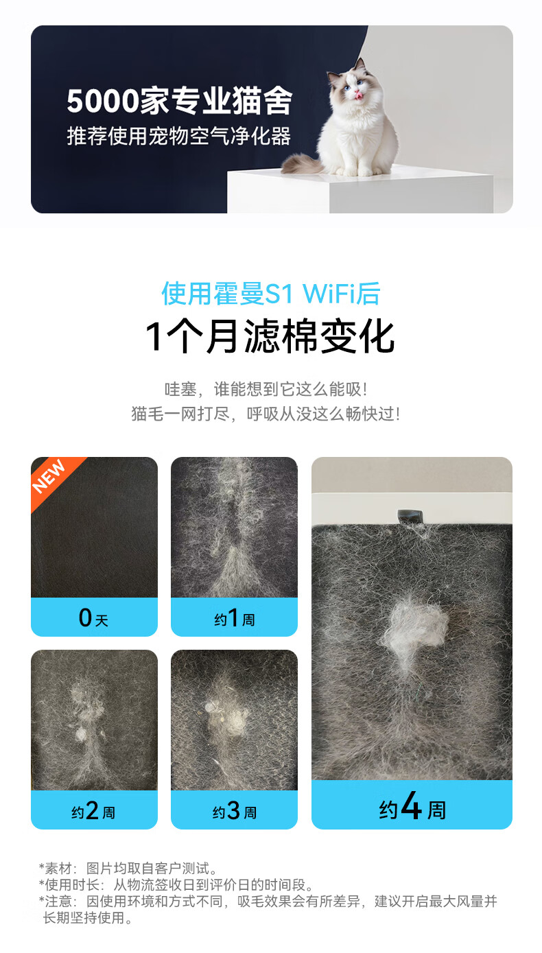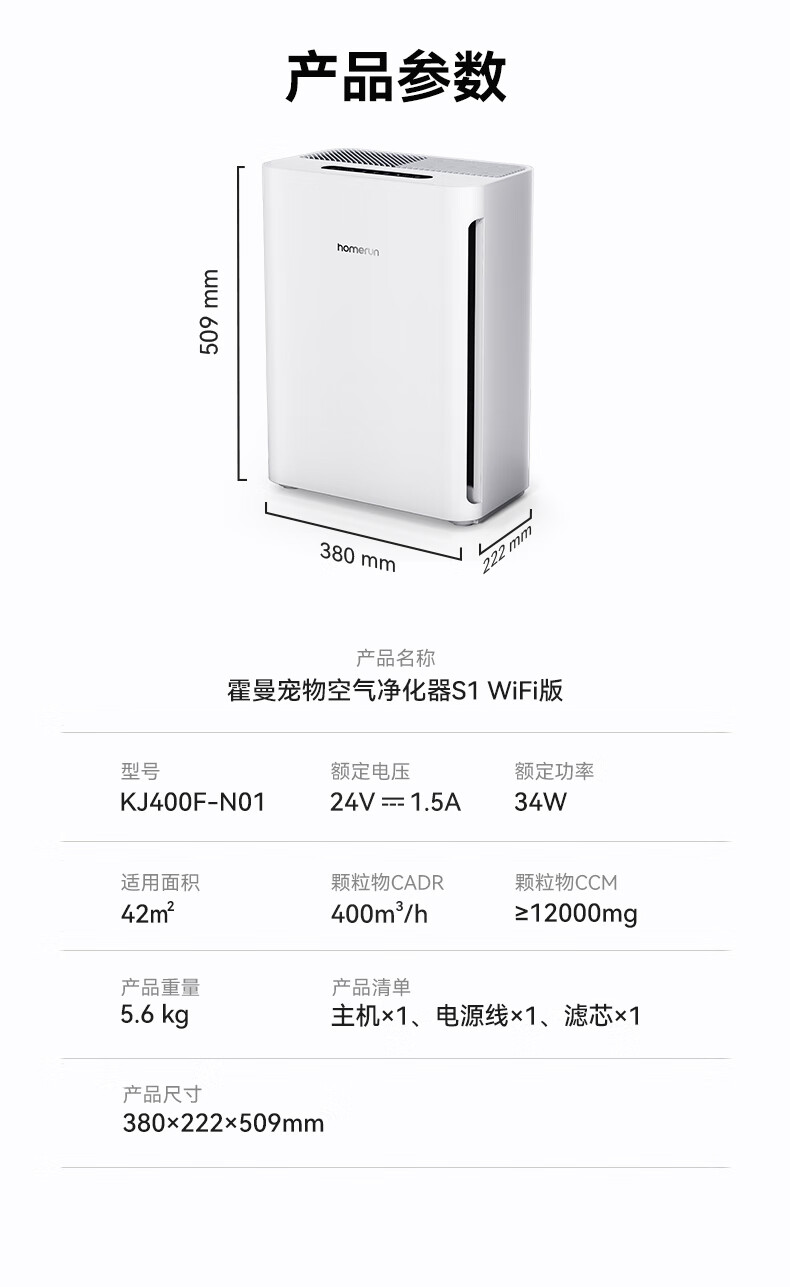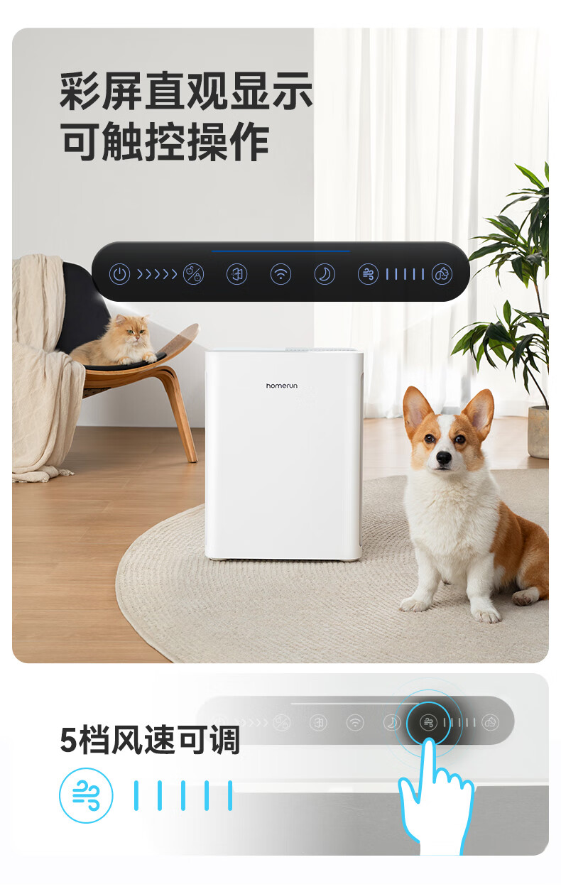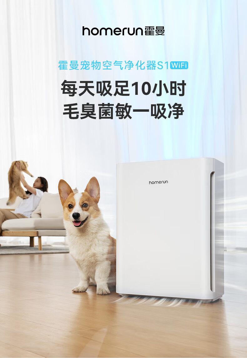 霍曼宠物空气净化器 吸猫毛除臭除菌防过敏源除异味净化机S1 WiFi版