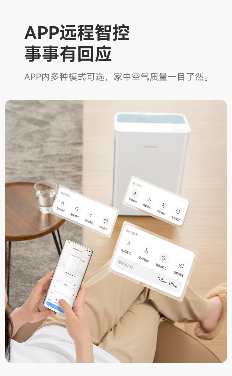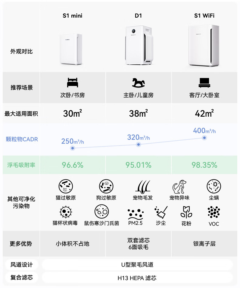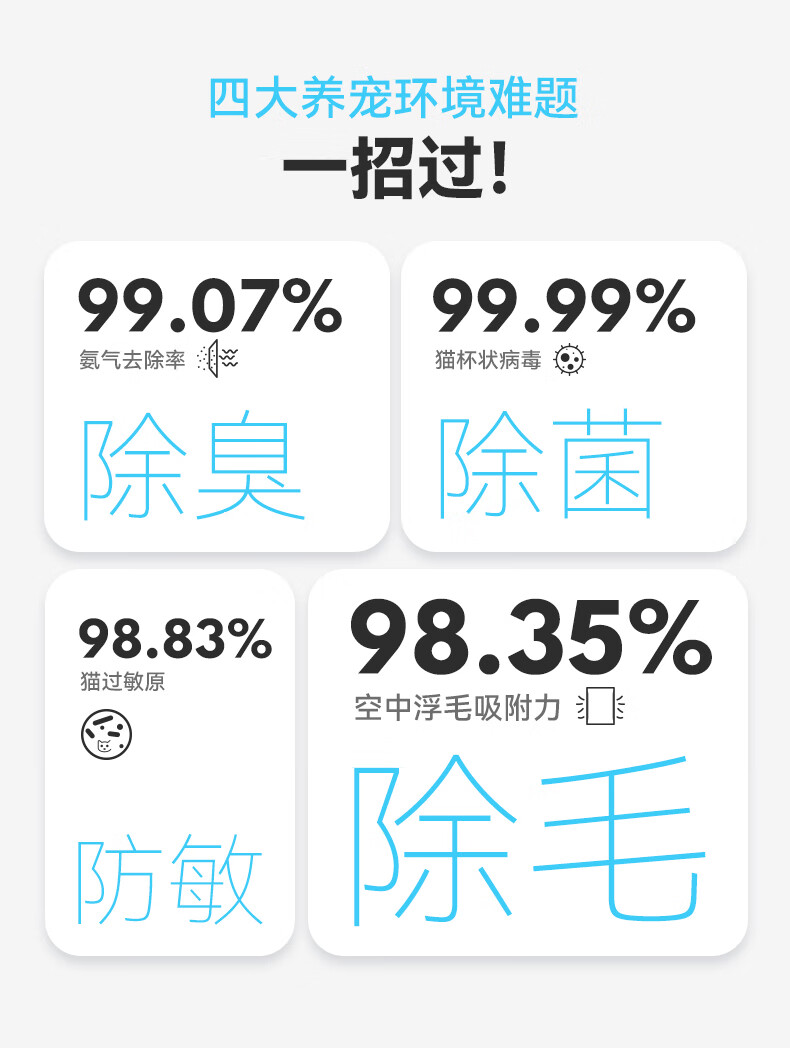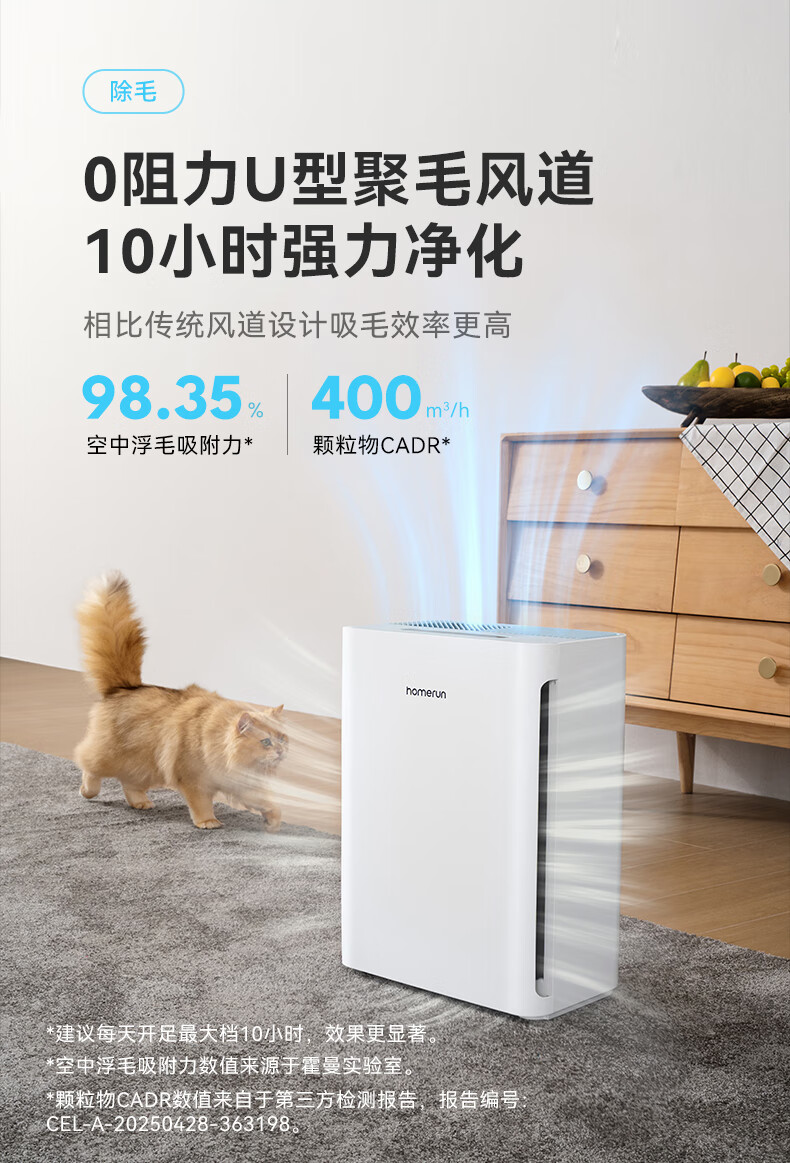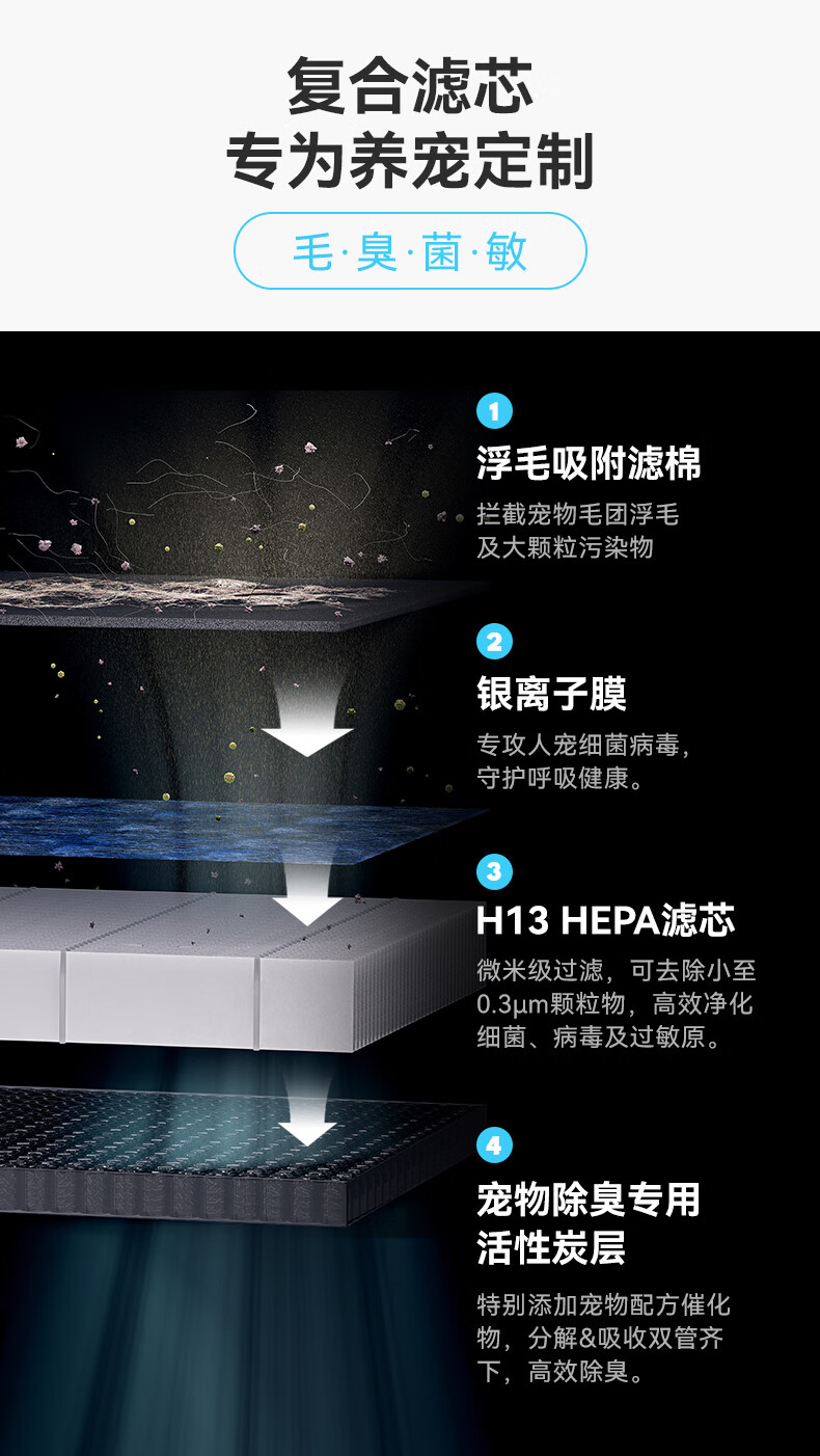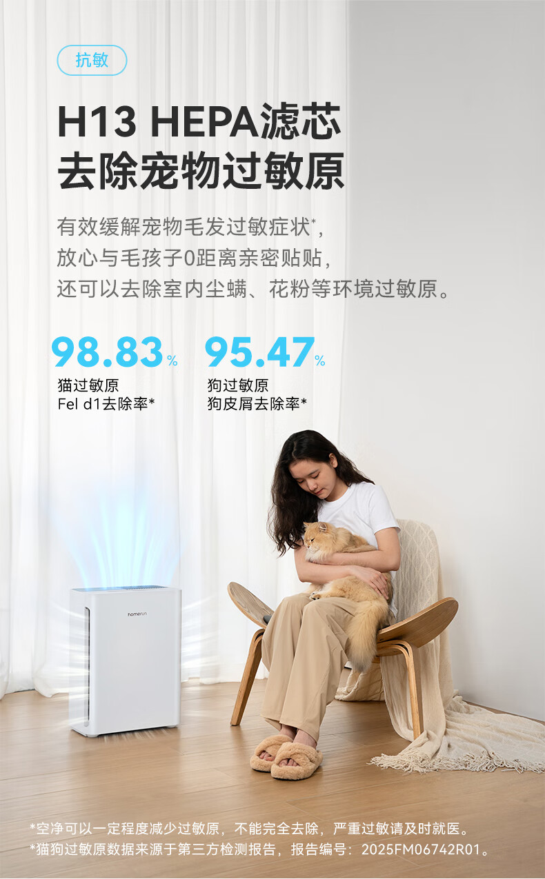 霍曼宠物空气净化器 吸猫毛除臭除菌防过敏源除异味净化机S1 WiFi版