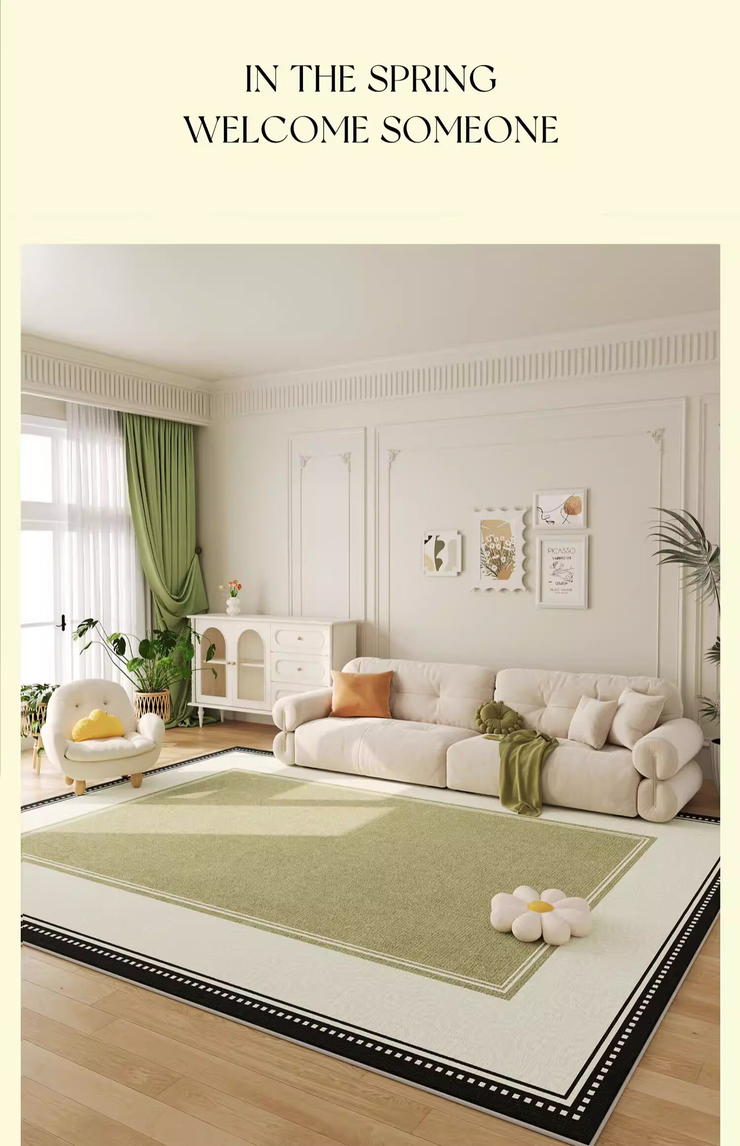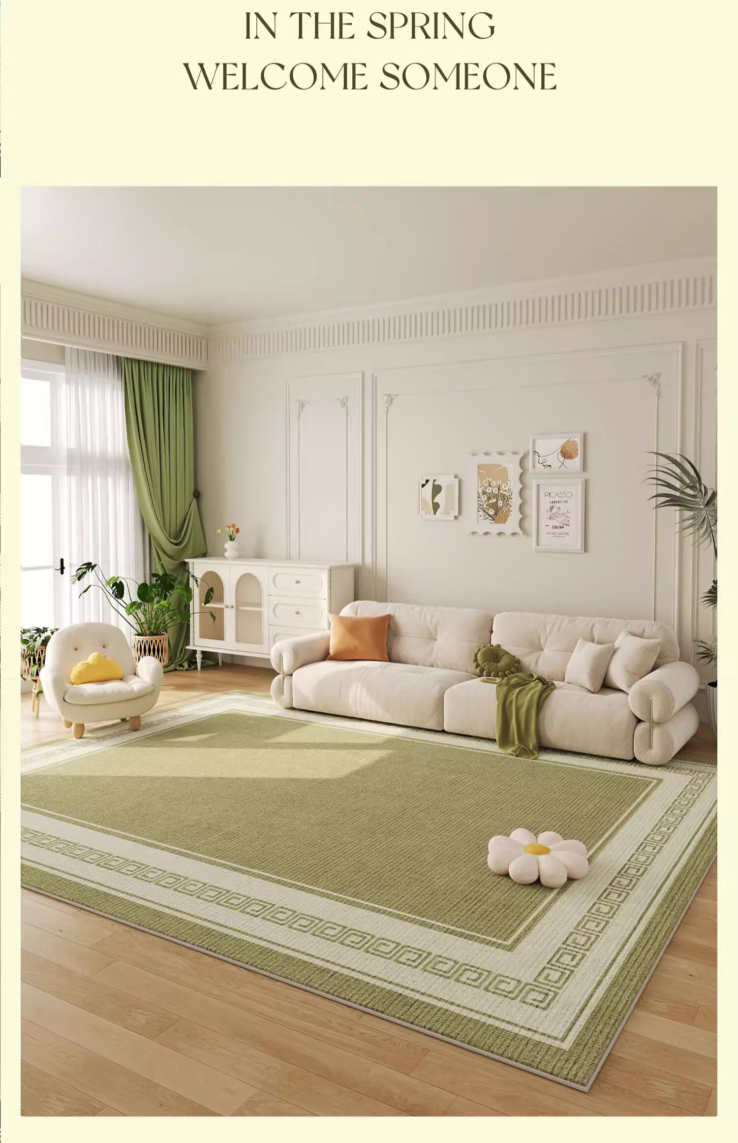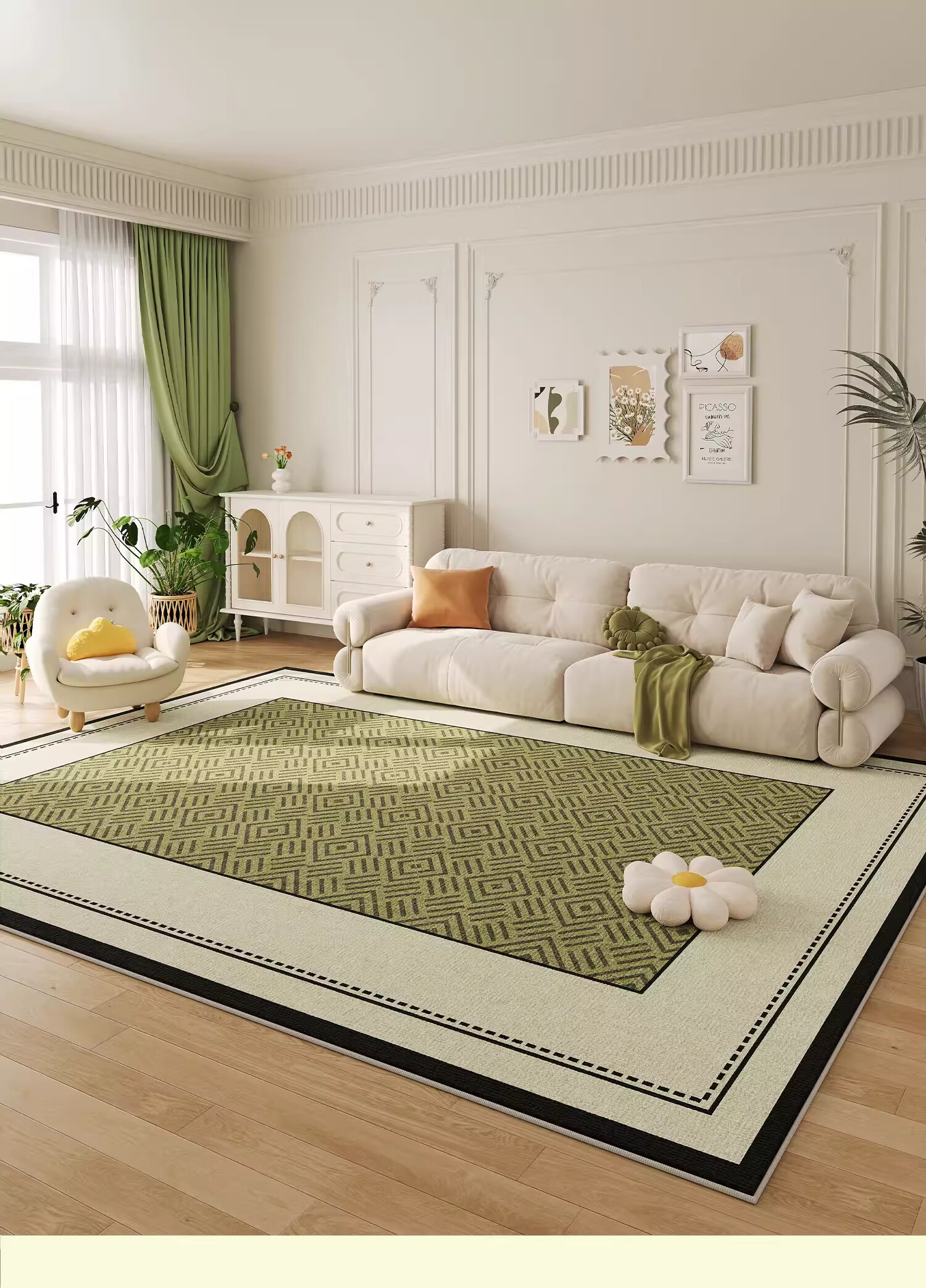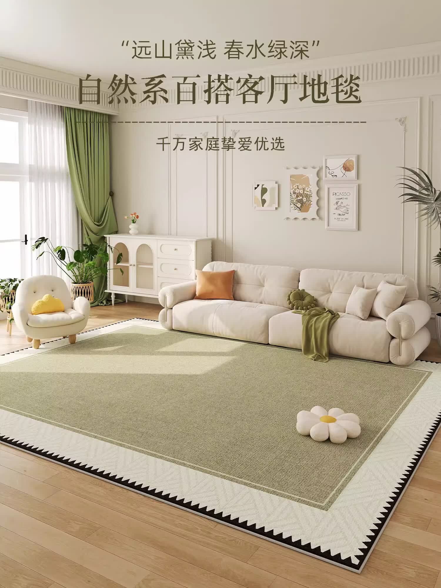 KAYE地毯客厅新款轻奢高级感免洗可擦家用地垫子卧室大面积沙发茶几毯 QR-Y半夏-01 120X160cm