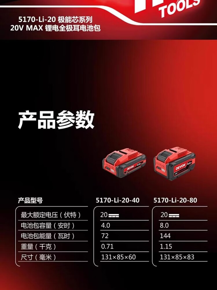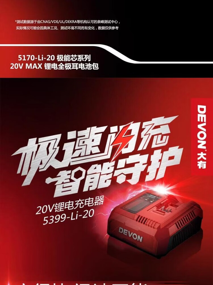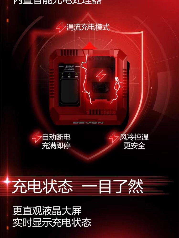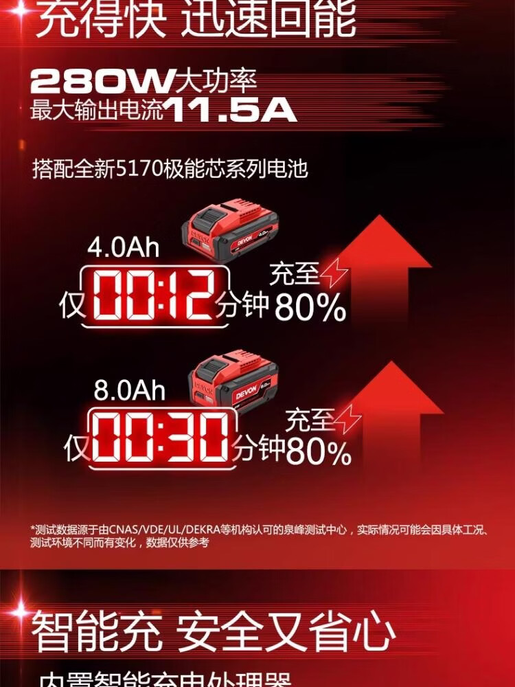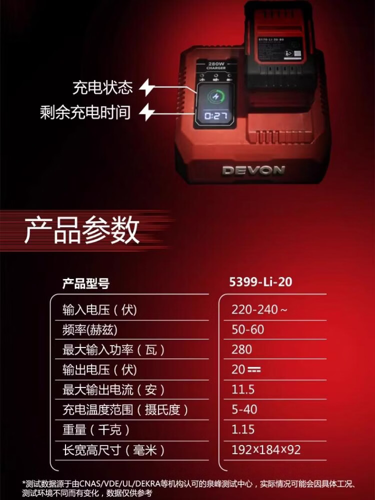 大有(Devon)20V8.0AH全极耳电池5170持久续航效率搭配5399极速智能充电器 280W极速智能充电器【5399】